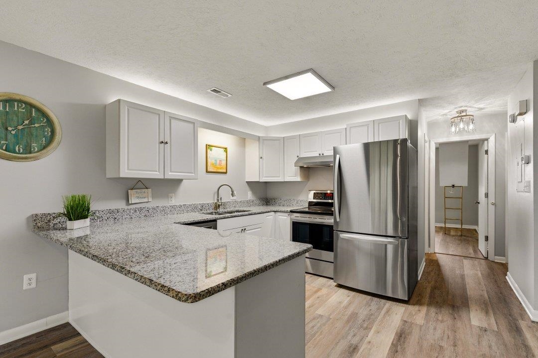 Modern Elegance at Island Green: Fully Renovated & Turnkey. Welcome to 500 Fairway Village Dr, Unit 8M?a meticulously renovated coastal sanctuary that feels like a brand-new home. Used exclusively as a private second home, this unit has been transformed with high-end finishes and unique structural upgrades that set it apart from anything else in the Fairway Village community. Step inside to a bright, modern aesthetic where every detail has been addressed: Brand-new LVP flooring flows throughout the space, complemented by a fresh, contemporary paint palette and all-new, stylish light fixtures. Completely reimagined with stunning new granite countertops and a full suite of new stainless-steel appliances. Forget the standard popcorn texture?every ceiling in the home has been professionally redone for a clean, modern look. A refreshed and updated bathroom offers a spa-like feel. Unit 8M offers features you won't find in standard Island Green layouts: The bedroom ceiling was intelligently converted to a drop-down design to accommodate new attic stairs, providing rare and valuable attic storage space. New, high-quality sliding glass doors lead out to the porch, improving insulation and ease of use. Enjoy the coastal breeze on your large screened-in porch. This expansive outdoor living area serves as a private oasis for morning coffee or evening cocktails, overlooking the tranquil, gated grounds of the Island Green community. With its rare attic storage, high-end renovations, and the pristine feel of a private second home, this turnkey gem is a must-see that won't stay on the market for long.