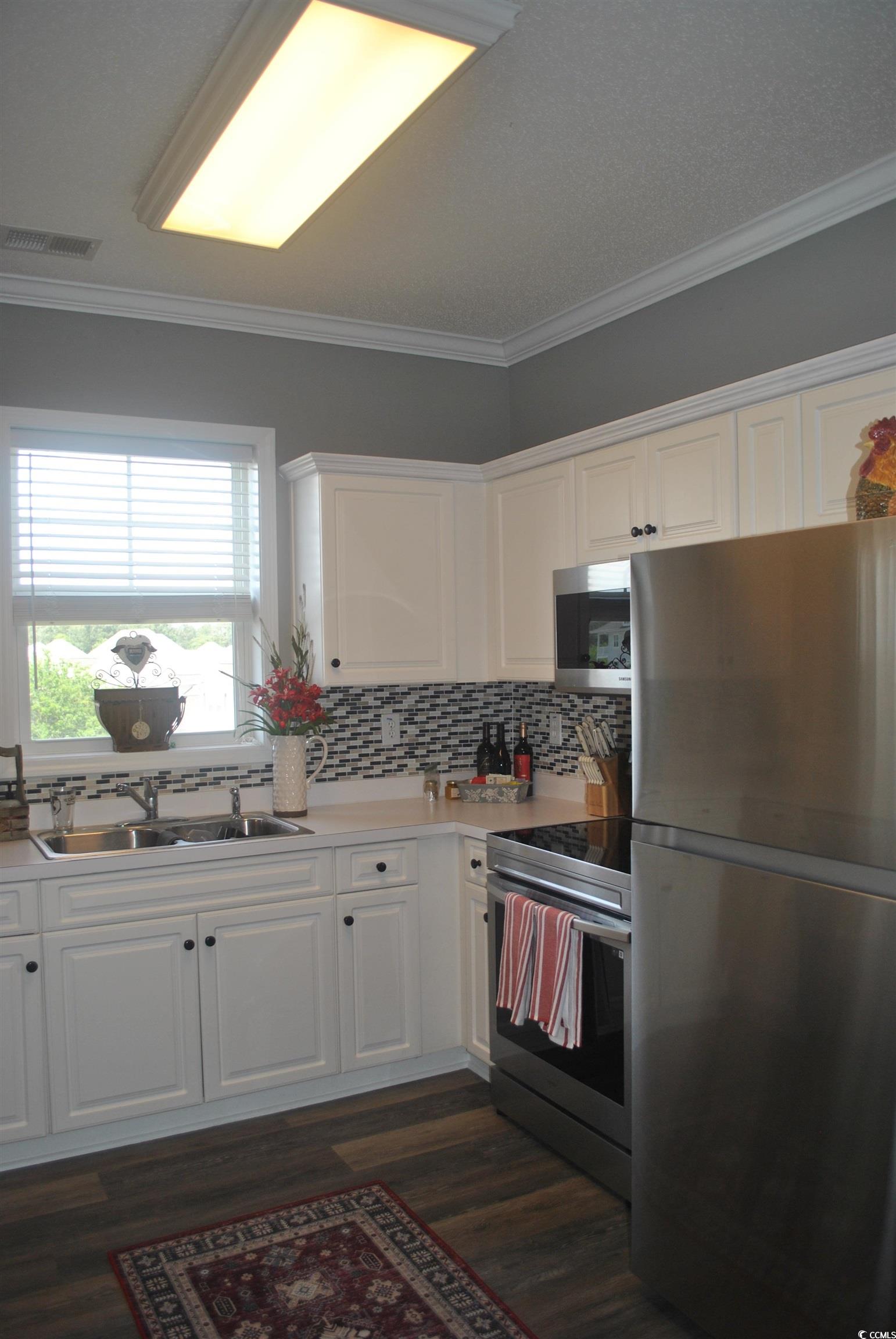 Bright, airy, and beautifully maintained—this 2BR/2BA condo in the highly sought-after Berkshire Forest community is the perfect blend of comfort and style! Located on the top floor, this end unit offers extra privacy, soaring vaulted ceilings, and an open-concept layout filled with natural light. Step out onto the balcony and soak in serene pool views—ideal for morning coffee or evening unwinding. The spacious primary suite features a tray ceiling, walk-in closet, and a private en-suite bath. The kitchen is equipped with brand-new stainless steel appliances, while the HVAC and conveying washer/dryer are just 4 years young. Window treatments also convey, so it’s move-in ready! Residents enjoy access to a sparkling community pool and are just minutes from the beach, top-rated schools, shopping, dining, and all the best of the Grand Strand. Square footage is approximate and not guaranteed. Buyer is responsible for verification.