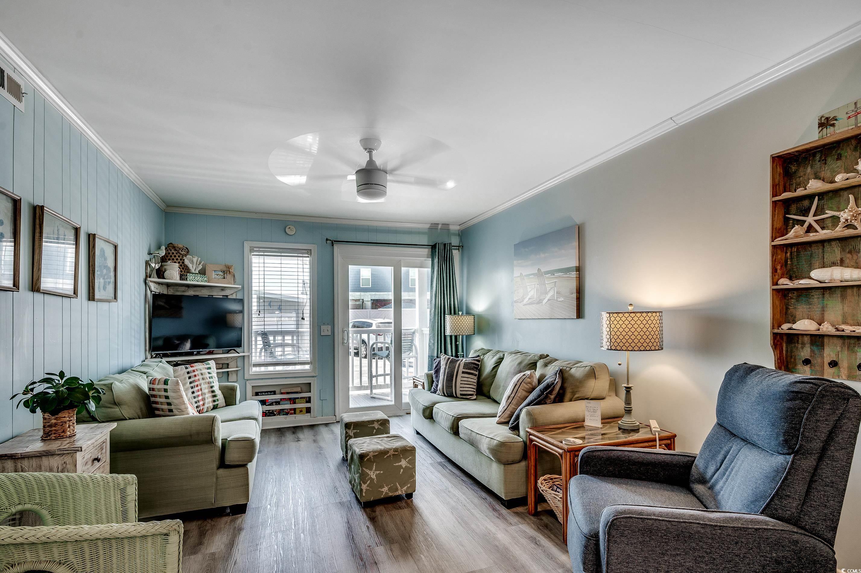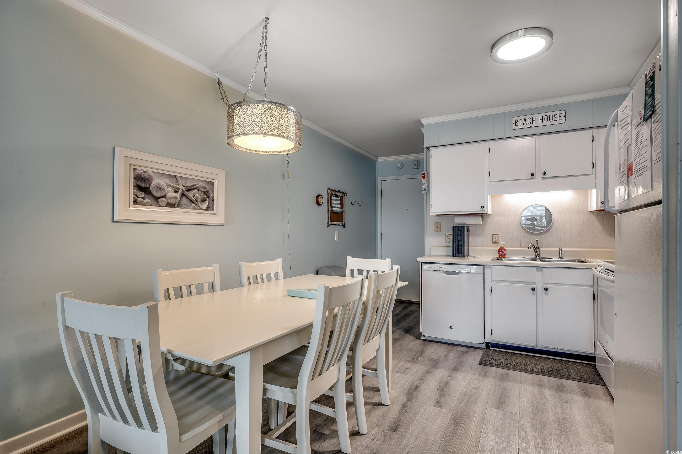 Incredible opportunity to purchase this renovated , 2 bedroom, 2 bathroom first floor condo just steps to the ocean in the highly sought after 24 unit oceanfront complex, Finestere at Cherry Grove! Unit B-1 comes fully furnished and features new upgraded LVP flooring throughout! The kitchen comes fully equipped with all white appliances, plenty of cabinet space, and an adjacent dining area. The living room includes a ceiling fan and a sliding glass door to your private balcony. Each bedroom includes a ceiling fan, plenty of closet space, and access to its own bathroom with updated vanities. Washer/Dryer included in the unit for even more added convenience. Finestere offers an outdoor pool, picnic tables, oceanfront sun deck, and direct beach access. Perfectly situated in the heart of North Myrtle Beach, close to all of the Grand Strand's finest dining, shopping, golf, and entertainment attractions. Whether you are looking for a second home on the beach or your next investment opportunity, you won't want to miss this. Call the listing agent today for a showing!