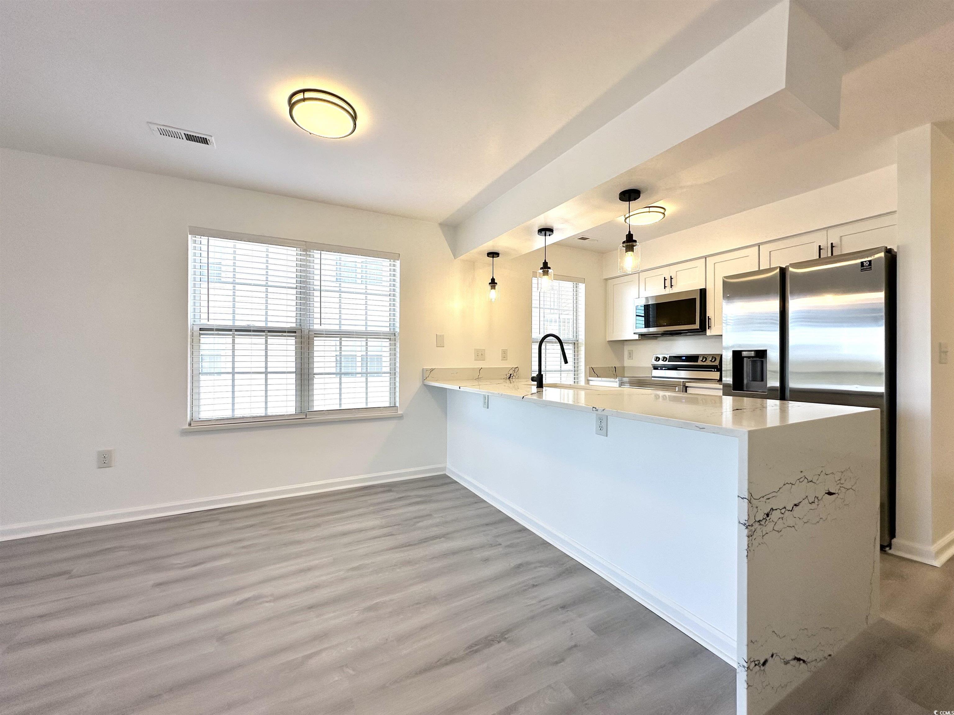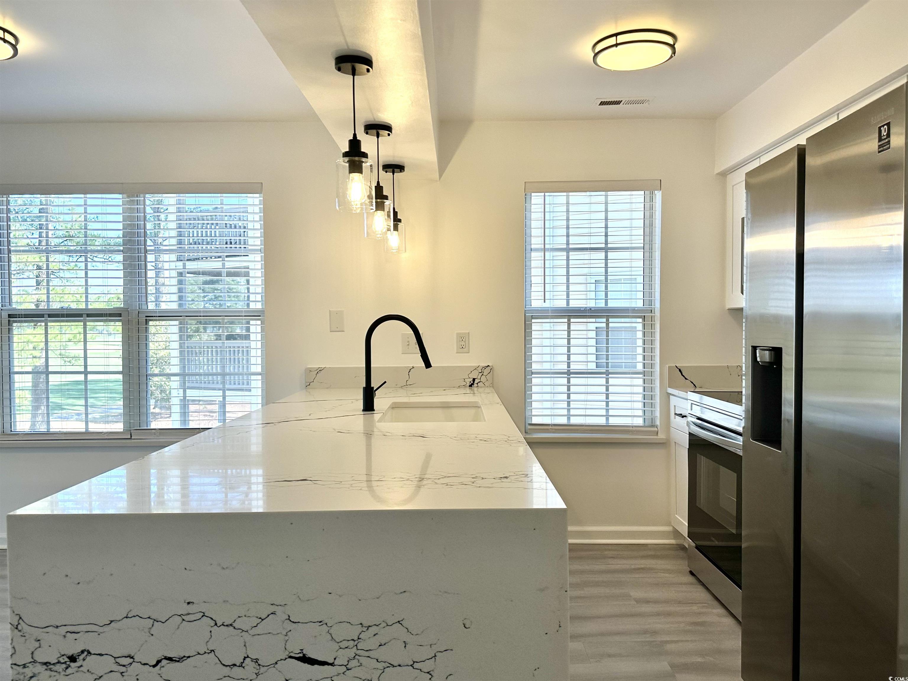 MOTIVATED SELLER!!! A MUST SEE!!! This fully remodeled two bedroom, two bathroom is move-in ready! Designed with neutral colors, new LVP flooring, black light fixtures and freshly painted. The kitchen is a chef’s dream, featuring brand new cabinets, Quartz countertops and stainless steel appliances, all that overlooking the famous Wizard Golf Course! Situated on the second floor, this end-unit condo offers lots of natural light, amazing views and an inviting open-concept layout with a generously sized screened-in rear porch that had porcelain tile installed. The HVAC was replaced in 2022, and the water heater was also upgraded in 2022. The spacious master suite boasts a walk-in closet and private access to the patio, a full bathroom with double sinks, LED mirrors and an oversized shower-tub combo. The community also features fantastic amenities, including swimming pool, clubhouse, playground and grilling stations, ensuring a perfect blend of relaxation and convenience. Whether you’re looking for an investment opportunity, a primary or second home, this condo is a perfect match, located a short drive to the beaches and all the attractions of Myrtle Beach, surrounded by several of the area's finest golf courses, great school district and easy access to 501 and 31. Call your Real Estate agent or the listing agent today for a showing!