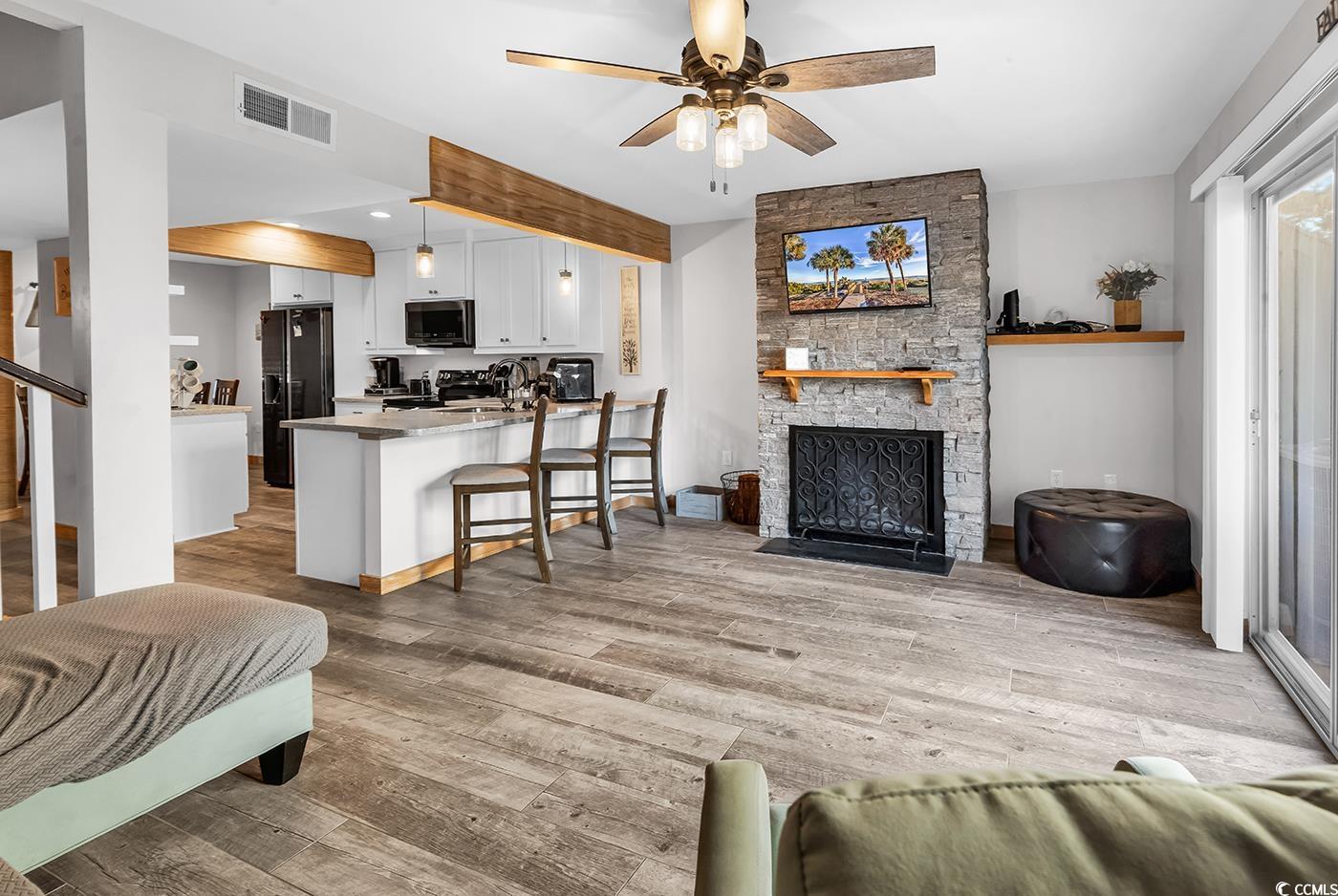 Updated 3-Bedroom Townhouse — Only .3 Miles to the Beach! You'll love this beautifully updated 3-bedroom, 2.5- bath townhouse in Colony Square, walking distance to the beach! This unit has a one-of-a-kind layout and tons of updates throughout. The first floor features brand-new flooring, new appliances, and new Corian countertops. The resurfaced wood burning fireplace makes the living space stand out. Upstairs, the primary bedroom has been freshly painted, and both the second and third floor bathrooms have new tile floors and new vanities. Even better — new heat pumps were installed in March 2025, so you can move in worry-free! This townhouse is move-in ready, close to shopping, dining, and just a quick .3-mile trip to the sand. Perfect for full-time living, or a beach getaway! Come check it out before it's gone!