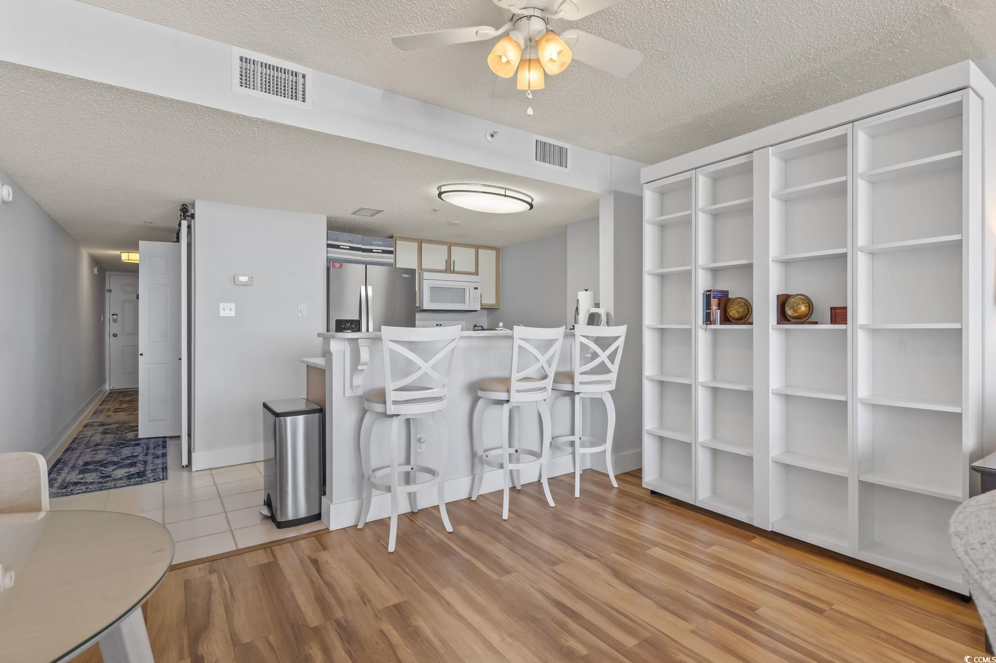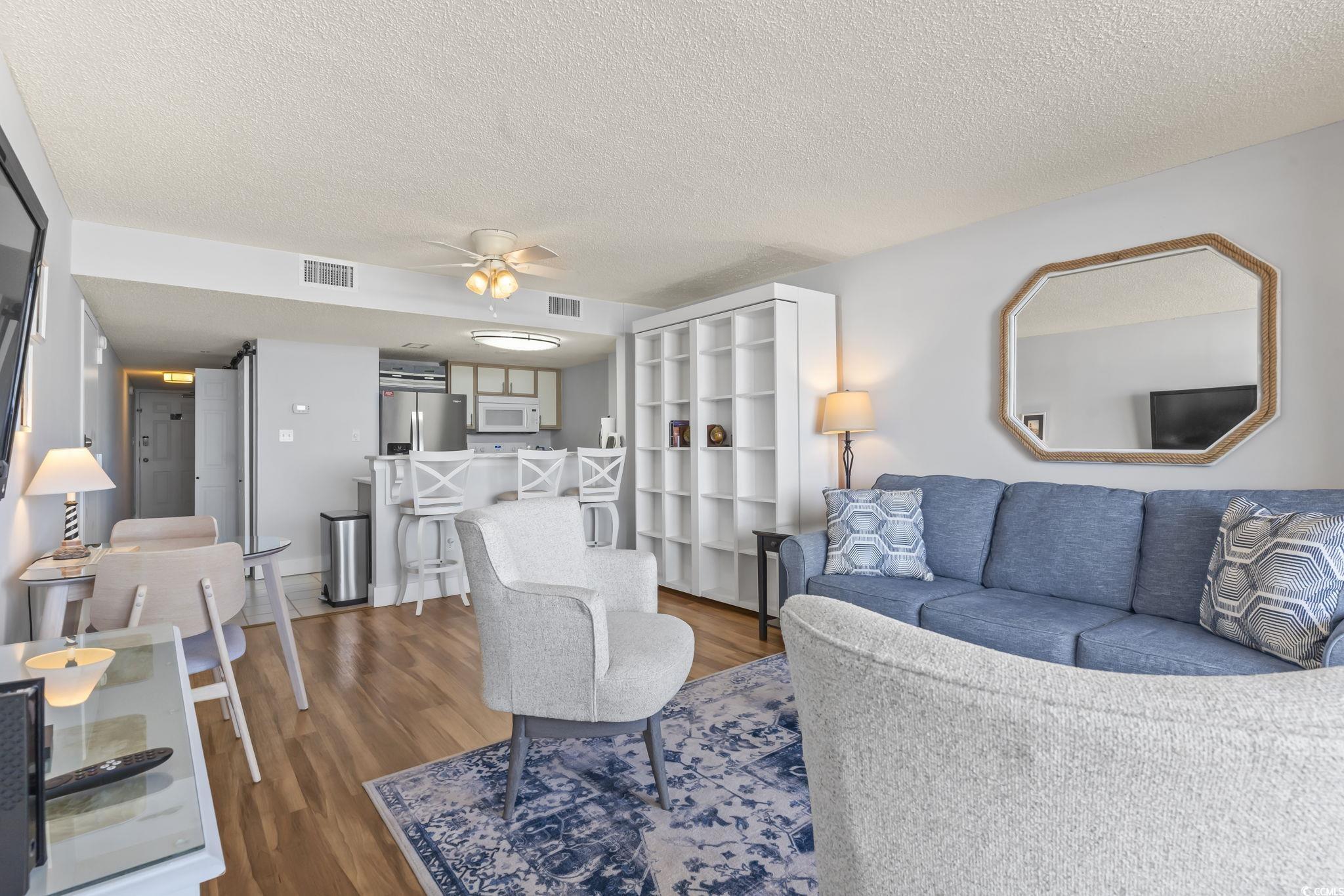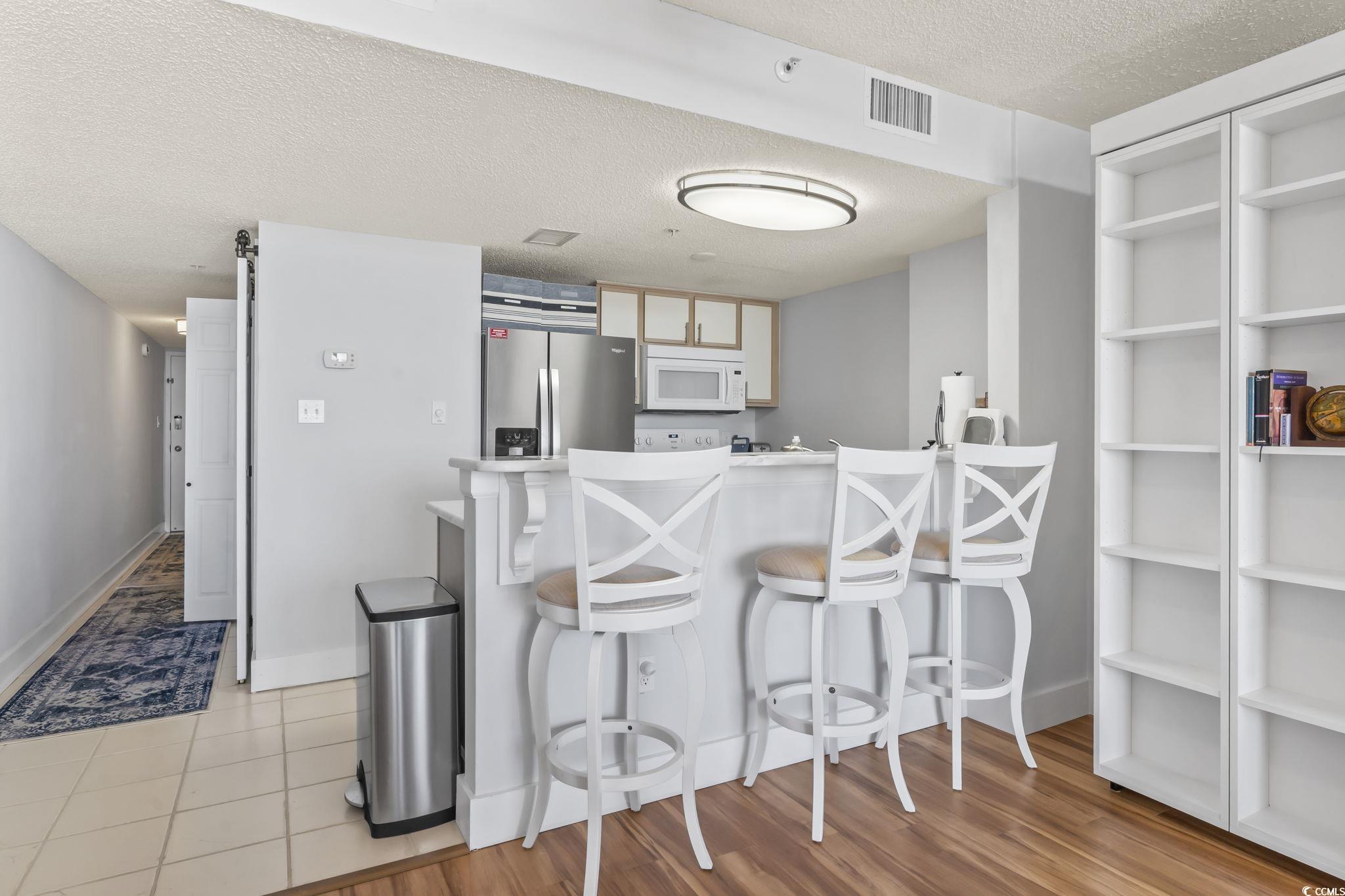 Welcome to your dream oceanfront condo at The Verandas in North Myrtle Beach! This stunning one bedroom, two full bath unit has been completely renovated, showcasing brand-new flooring, fresh paint, modern appliances, and beautiful quartz countertops in the kitchen. The bathrooms have also been fully renovated to offer a sleek, modern look, both with walk-in showers. The original half bathroom has been converted into a full bathroom for added convenience; a rare update that is unique to this unit! Stylish barn doors, a convenient Murphy bed, and a comfy pull-out sofa make it perfect for up to six guests. Fully furnished and move-in ready, this condo is ideal for both personal use and rental opportunities. Step outside onto the expansive balcony for breathtaking direct ocean views, and enjoy on-site amenities like a lazy river and a seasonally heated outdoor pool. Owners will also appreciate three stories of under-building parking for extra storage, and an in-unit washer and dryer for added convenience. Stylishly decorated with modern, beach-inspired, yet simple accessories, this condo truly is a coastal gem!