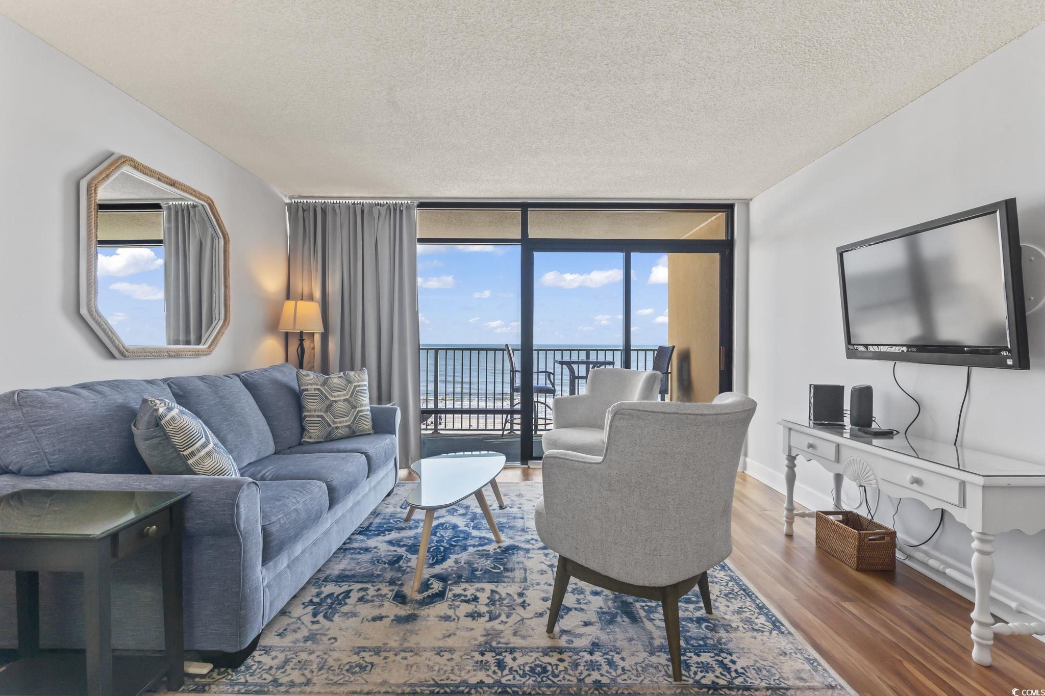 Just reduced and priced to sell! Welcome to your dream oceanfront condo at The Verandas in North Myrtle Beach! This stunning one bedroom, two full bath unit has been completely renovated, showcasing fresh paint, modern appliances, and beautiful quartz countertops in the kitchen. The bathrooms have also been fully renovated to offer a sleek, modern look, both with walk-in showers. The original half bathroom has been converted into a full bathroom for added convenience; a rare update that is unique to this unit! Stylish barn doors, a convenient Murphy bed, and a comfy pull-out sofa make it perfect for up to six guests. Fully furnished and move-in ready, this condo is ideal for both personal use and rental opportunities. Step outside onto the expansive balcony for breathtaking direct ocean views, and enjoy on-site amenities like a lazy river and a seasonally heated outdoor pool. Owners will also appreciate three stories of under-building parking for extra storage, and an in-unit washer and dryer for added convenience. Stylishly decorated with modern, beach-inspired, yet simple accessories, this condo truly is a coastal gem! Ready for a break from the beach? You are conveniently located just minutes to Main Street and all of the amenities that North Myrtle Beach has to offer including Golfing, Shopping, Fishing, Dining, and of course local favorites such as Barefoot Landing and the NMB Park & Sports Complex. Don't miss out on this rare opportunity!