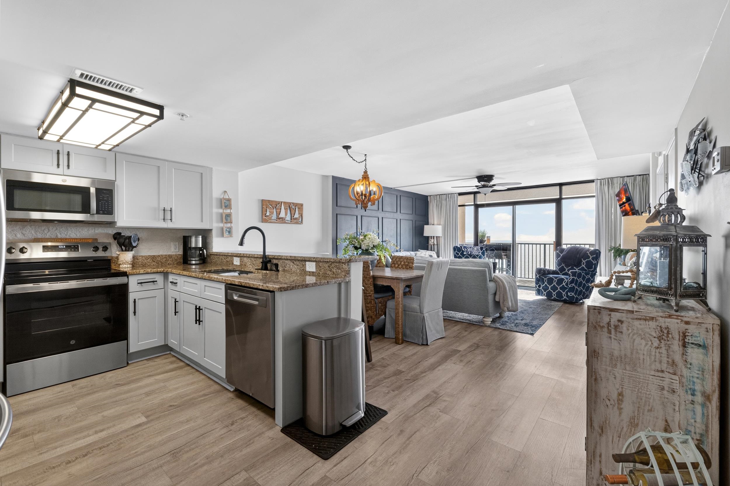 Stunning Ocean Front 3 bedrooms, 3 full baths condo at the beautiful Verandas Resort one of the highly sought after condos on the beach!! This unit will make a great investment property or a vacation getaway. Unit has been totally remolded with amaxing beach decor and furnishings. Features include stainless steel appliances, LVP flooring throughout, granite countertops, and updated cabinets. The bedrooms all have a beach therm with new bathrooms including new showers, Large washer and dryers and plenty of storage. This condo is meticulous and the ocean views will soothe your soul, The outside balcony is the perfect place for your morning coffee and balcony had a high boy table and comfortable furnisher to enjoy the views. The sunsets are breath taking, The outdoor amenities include an outdoor heated pool, lazy river and hot tub. Pafking is underneath building with plenty of space and yes, you can have a golf cart. You are within walking distance to Main Street where resturants, shopping, entertainment and so much more!!!! Call today to schedule a tour to see and enjoy this amazing condo!! We are also offering you a one year warranty on the entire unit!!! You will be happy you made the time to check it out!!