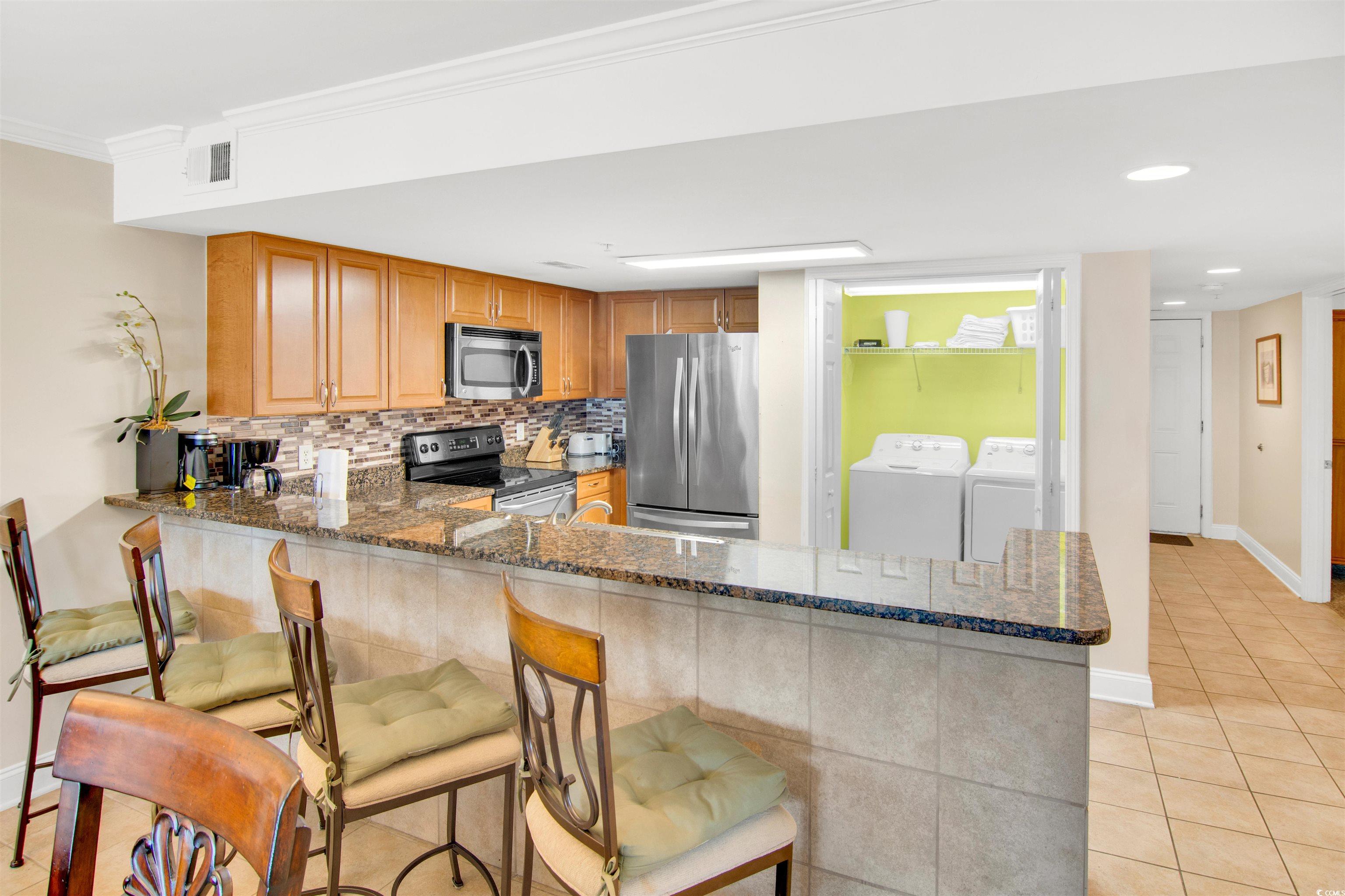 When you tell your friends you got this great deal in the Windy Hill section with an Ocean view, they will want one too, but this is the only one on the market and is an exceptional opportunity to acquire a distinguished property in North Myrtle Beach. This second-floor condo offers breathtaking views of the marshlands, wetlands, and the ocean from its balcony, perfect for enjoying both sunrises and sunsets. Its prime location, directly across from North Beach Resort, establishes it as one of the most desirable addresses in North Myrtle Beach, making it ideal as a primary residence, a second home, or a lucrative vacation rental. Ocean Marsh Villas is a quiet marsh-front property featuring only 36 units and two elevators, nestled amidst beautiful live oaks, and just a short walk from the beach. The meticulously maintained grounds and surprising amenities, including a marsh-front pool, hot tub, kiddie pool, picnic tables, and a grill, enhance the property's appeal. The marsh-front environment also provides opportunities for crabbing, fishing for flounder, and observing local wildlife. The interior of this unit has been thoughtfully updated and is truly turn-key. With three bedrooms with shelved closets and three full baths, the open floor plan creates a seamless flow, ideal for both entertaining and quiet enjoyment. The fully equipped kitchen will indulge the chef in everyone, exhibiting modern granite countertops, sleek stainless steel appliances, and ample cabinet space to keep your supplies stocked during your stay. Striking updates throughout the unit include a master bath walk-in shower with a barn door, upgraded tile flooring, updated lighting, a new washer and dryer, and a trundle bed giving extra room for guests. Golf carts and pets are permitted for owners, a rare find in the current market, and almost everything in this stunning unit conveys, allowing for an immediate enjoyment of the coastal lifestyle. This property in the Windy Hill section offers unparalleled accessibility to the oceanfront on the East and North Myrtle Beach's attractions. You can easily walk to dinner at Joe's Bar and Grill, Cracker Barrel, or 21 Main, and savor some of the finest steaks and seafood the coastline has to offer. Additionally, you'll be close to shops at Barefoot Landing, such as Tara Grinna and Ron Johns' surf shop, and can enjoy a show at the Alabama Theatre. I encourage you to schedule a showing at your earliest convenience to fully appreciate this incredible property, its expansive views, and its unbeatable access to shopping and dining.
