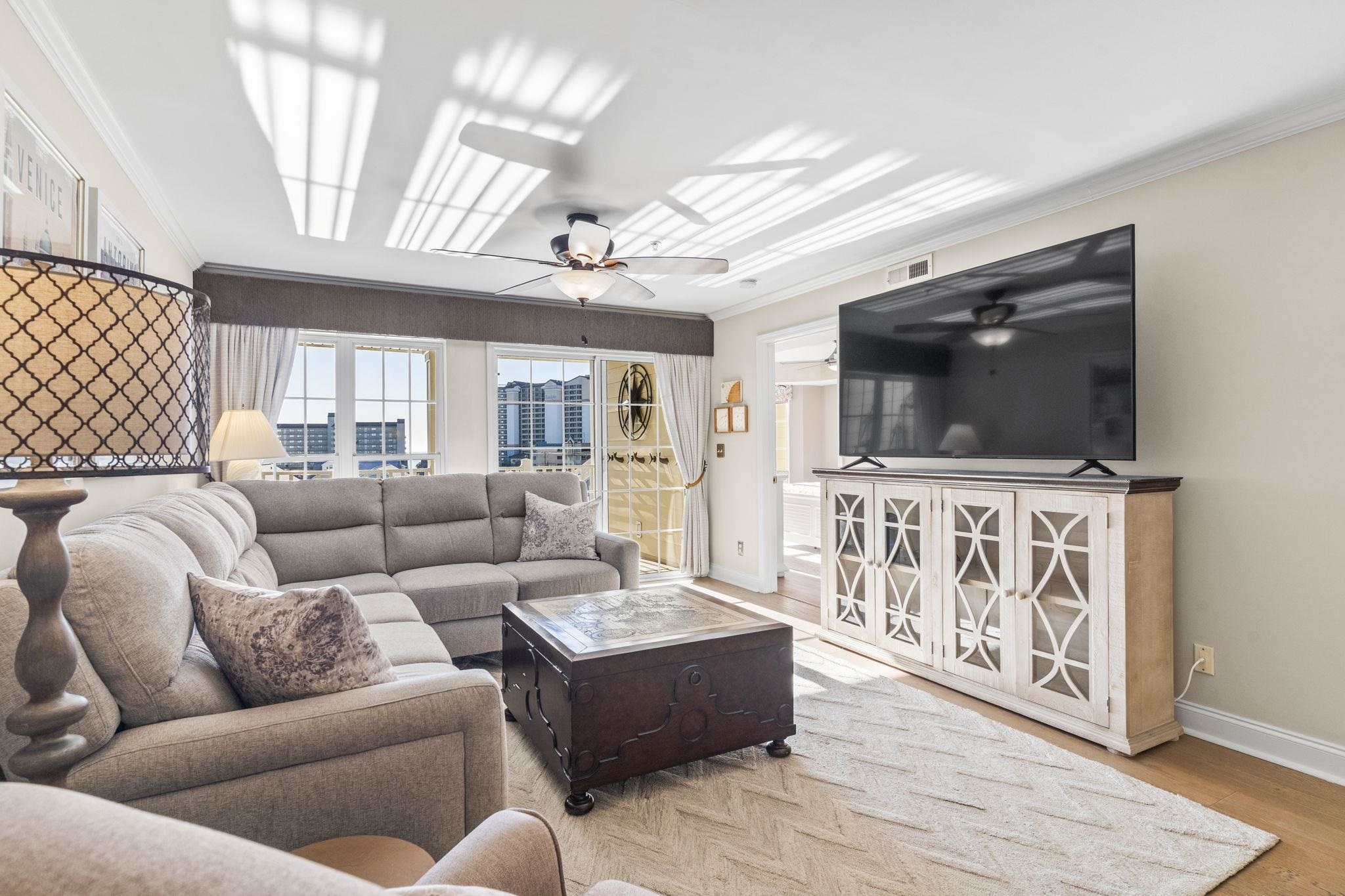 Penthouse with views of the ocean. This 2/2 is an exceptional opportunity to acquire a distinguished property in North Myrtle Beach, in the Barefoot Landing area, with an ocean view and a golf cart parking space. You can easily walk or ride a golf cart to the ocean! This 4th-floor condo offers breathtaking views of marshlands, wetlands, and the ocean from its balcony, perfect for sunrises and sunsets. Its prime location makes it one of the most desirable addresses in North Myrtle Beach, ideal as a primary residence, a second home, or a lucrative vacation rental. Ocean Marsh Villas is a quiet marsh-front property featuring only 36 units and two elevators, nestled amidst beautiful live oaks, and just a short walk from the beach. The meticulously maintained grounds and surprising amenities, including a marsh-front pool, hot tub, kiddie pool, picnic tables, and a grill, enhance the property's appeal. The marsh-front environment also provides opportunities for crabbing, fishing for flounder, and observing local wildlife. The interior of this unit has been professionally decorated by an interior designer. The meticulous details have to be seen to be appreciated. All large furnishings are included. Two bedrooms with shelved closets and two full baths, the open floor plan creates a seamless flow, ideal for both entertaining and quiet enjoyment. The kitchen was recently renovated with additional lighting, coastal white cabinets that provide ample storage, modern granite countertops, sleek stainless steel appliances, and even a convenient wine rack. Golf carts and pets are permitted for owners, a rare find in the current market, and almost everything in this stunning unit conveys, allowing for an immediate enjoyment of the coastal lifestyle. This property in the Windy Hill section offers unparalleled accessibility to the oceanfront on the East and North Myrtle Beach's attractions. You can easily walk to dinner at Joe's Bar and Grill, Cracker Barrel, or 21 Main, and savor some of the finest steaks and seafood the coastline has to offer. Additionally, you'll be close to shows like The South's Grandest Christmas Show at The Alabama Theater and shops and restaurants at Barefoot Landing, such as Tara Grinna and Flying Fish. Please schedule a showing at your earliest convenience to fully appreciate this incredible property, its expansive views, and its unbeatable access to shopping and dining, and of course, the beautiful ocean!