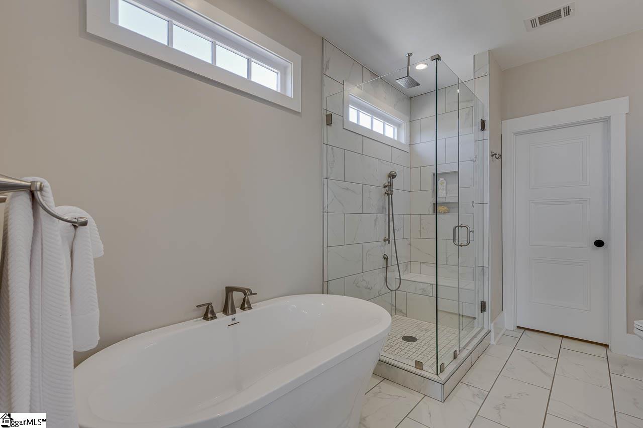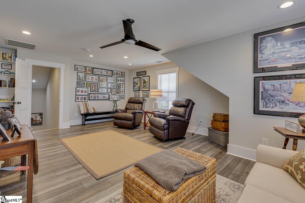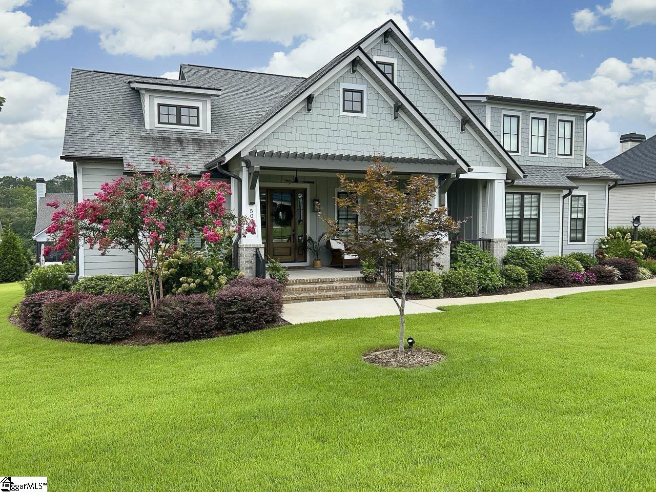 Set within the sought-after Braxton Ridge community, 502 Rustic Outland Drive features timeless design and modern convenience, just minutes from downtown Simpsonville, I-385, Fairview Road shopping and dining amenities, Fountain Inn, and Five Forks. When you drive up to the home, you will immediately want to stop and linger on the inviting front porch, which is perfectly sized for rocking chairs and your favorite outdoor decor. As you step inside, the foyer opens to beautifully finished floors and crisp Craftsman trim that frame each space with quiet elegance. A formal dining room sits just off the entry, designed for hosting, where light and scale feel exactly right. The home flows naturally toward the open concept living spaces. The great room is the heart of the home, featuring stunning coffered ceilings , a stacked-stone gas fireplace, and a sense of comfort that encourages you to settle in and stay awhile. The kitchen is open to the great room, making entertaining a breeze. Gorgeous quartz countertops, Bosch stainless steel appliances, subway tile backsplash, coffered ceilings, custom light fixtures, coffee bar, an oversized island, and a walk-in pantry come together in a way that feels thoughtful and substantial. The breakfast room doubles as a relaxing sunroom, with tranquil backyard views and access to the deck. Tucked away in a private corner away from the hustle and bustle of the living areas, the primary suite feels like a true sanctuary. The spa-inspired bath, with its dreamy soaker tub and walk-in shower, invites evenings of quiet retreat and slow mornings that begin without rush. More lovely quartz countertops continue in the primary bathroom, complimenting the stylish cabinets with plenty of room for your personal care items and soaps. Designed with intention, the split floor plan ensures rest and relaxation for all, with two additional bedrooms, a full bath, and a powder room on the other side of the main floor. A dedicated walk-in laundry room with a sink and extra cabinets, as well as a two-car garage with built-ins complete the first level, providing plenty of storage space. Upstairs, you will find a private suite with plenty of room for a bedroom suite, home office, or den, plus a full bath, walk-in closet, and attic storage. This level is ideal for extended stays, a peaceful home office, or a space that feels entirely your own. Additionally, this upstairs suite is plumbed and ready to include a kitchenette if you would like to convert the space into an apartment. Out back, the deck becomes a natural extension of the home, where you can enjoy grilling, relaxing, and watching the local wildlife. During the spring and summer months, you will enjoy the stunning landscaping which includes mature hydrangeas and other Southern blooms. Thoughtfully designed and lovingly maintained, this is a home that balances custom craftsmanship with everyday comfort; a place where luxury feels personal, and every detail invites you to stay. Don't miss out on your chance to turn this stunning house into your new home. Schedule your showing today!