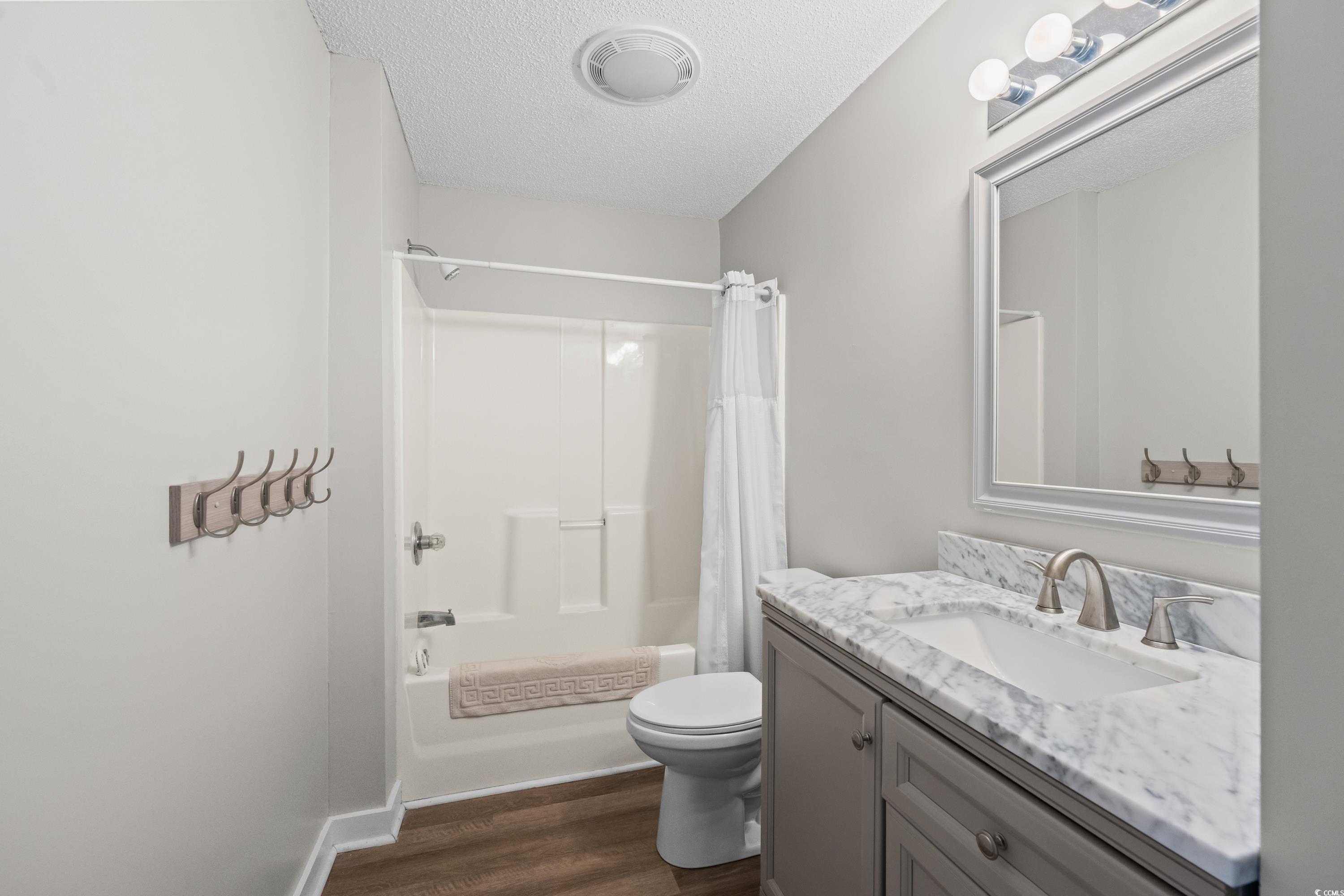 Welcome to Fairway Oaks, where coastal charm meets golf course living! This spacious 3-bedroom, 2-bath townhouse-style condo overlooks the prestigious Surf Golf & Beach Club, with peaceful lake views in the distance. The primary bedroom is conveniently located on the first floor, along with updated LVT flooring that runs throughout the main living areas. Enjoy the elegance of plantation shutters in the living room and relax on the back patio, perfect for taking in the scenic golf course and tranquil surroundings. The Fairway Oaks community offers fantastic amenities including a sparkling pool, playground, and golf cart-friendly access—owners are welcome to bring their golf carts! Ideally located in the heart of the Cherry Grove section of North Myrtle Beach, just minutes from the beach, dining, and shopping, this home is perfect as a primary residence or vacation getaway.