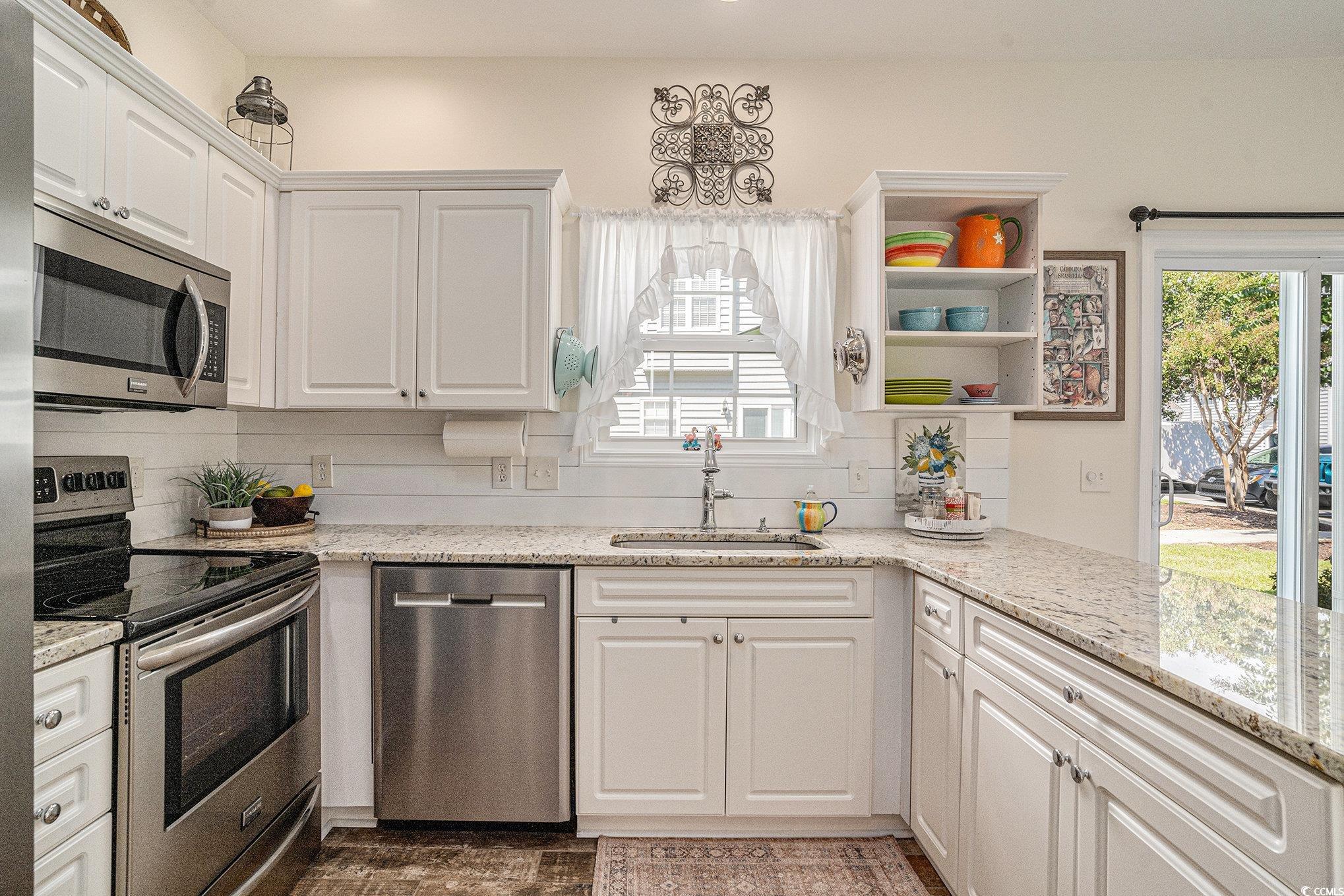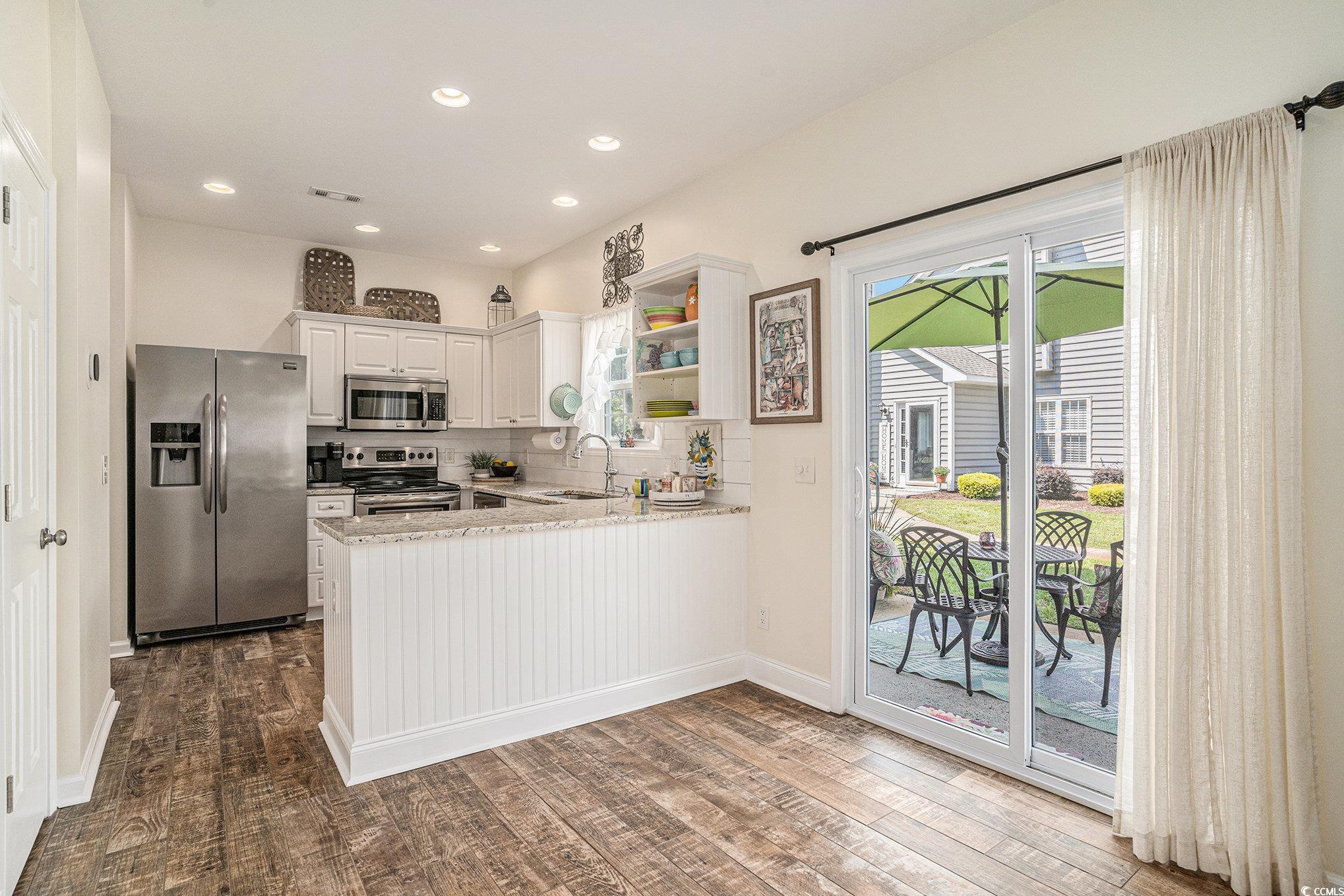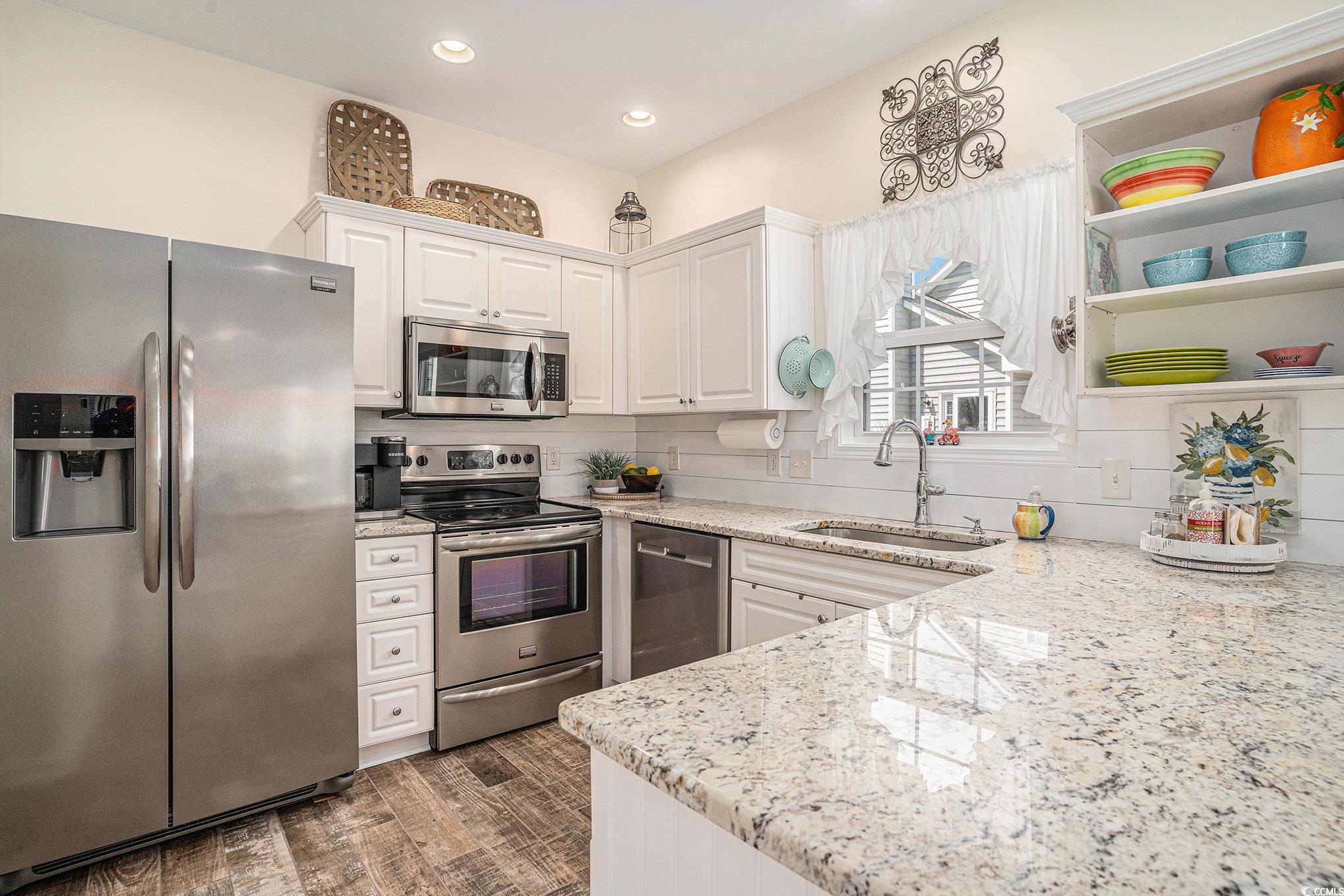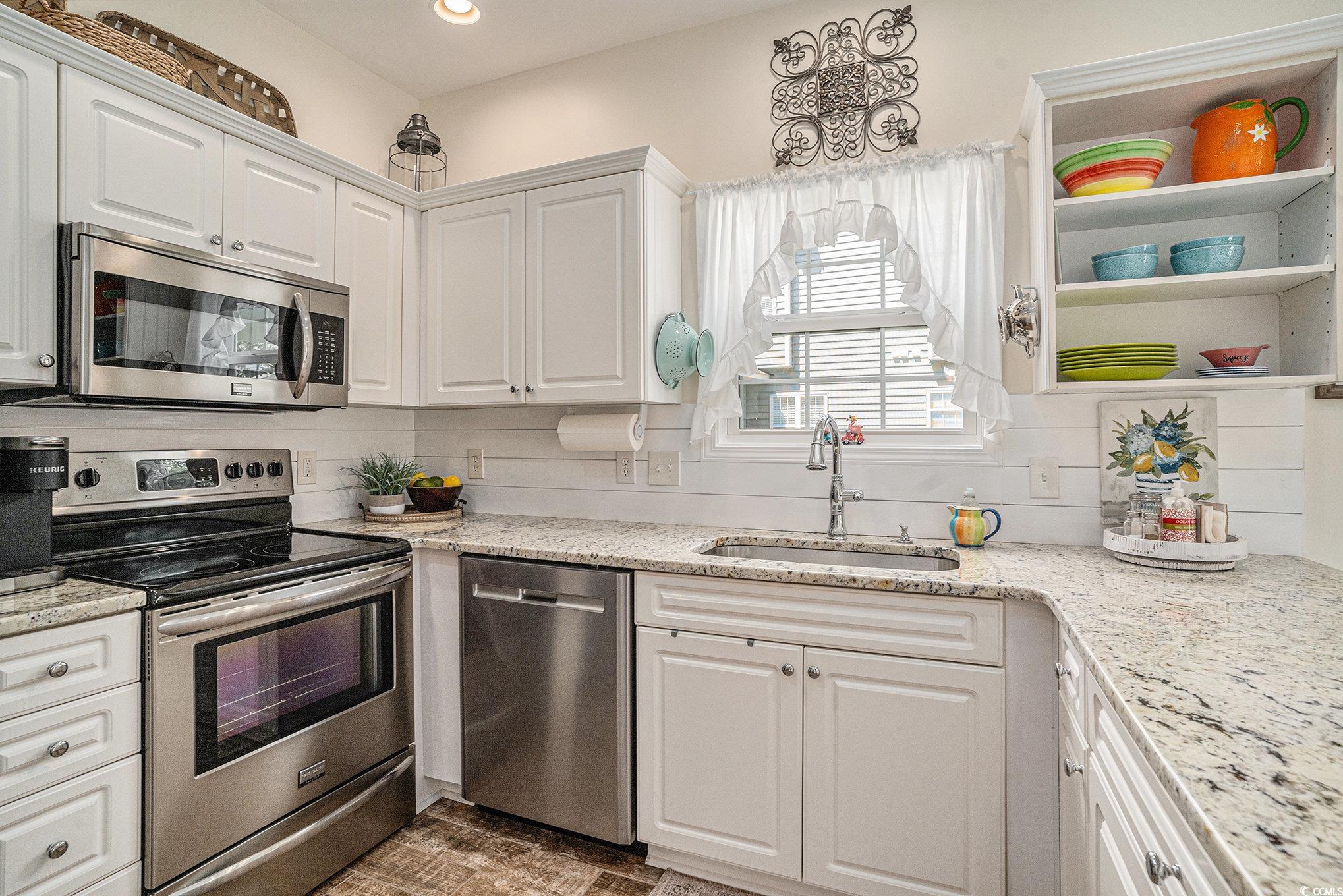 This METICULOUSLY MAINTAINED 3BD, 2BA TOWNHOUSE-STYLE CONDO is located in the well sought-after community of Fairway Oaks, offering a lifestyle tailored for the beach lover. This unique complex borders the prestigious Surf Golf & Beach Club located in the Cherry Grove section of North Myrtle Beach and offers a large community pool, on-site playground, walking or golf cart distance to the beach and close to local restaurants, entertainment and beach shopping. This unit boasts many wonderful features and updates including an open-concept floor plan, elevated and smoothed ceilings, gas log fireplace, stainless steel kitchen appliances, granite kitchen countertops, shiplap backsplash, separate laundry space, walk-in pantry, first-floor primary suite with walk-in closet and beautifully renovated tiled walk-in shower, just to name a few. Adding a touch of warmth, a solid oak staircase leads to the second floor with two guest bedrooms and full guest bath. Flooring in the unit includes porcelain tile, carpet in bedrooms and oak tread stairs. The outdoor patio is a perfect spot to relax and unwind while enjoying stunning views of the Surf Club's pristine 10th green. The patio is large enough for a grill, outdoor furniture and storage container to hold beach chairs and sand buckets. Fairway Oaks is only a short golf cart ride to entertainment in Cherry Grove and Ocean Drive with restaurants, beach clubs, live bands, arcades, ice cream shops, parks and seasonal festivals, fun for the entire family! Gas or electric golf carts are allowed and it is a pet friendly community. Great unit, great location, come see it before it is gone!