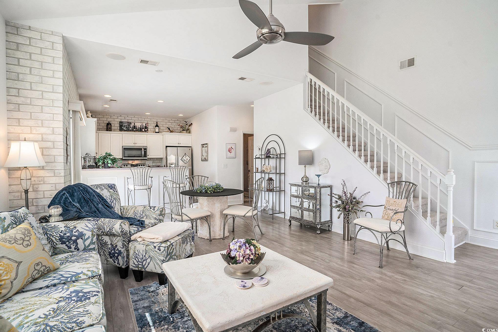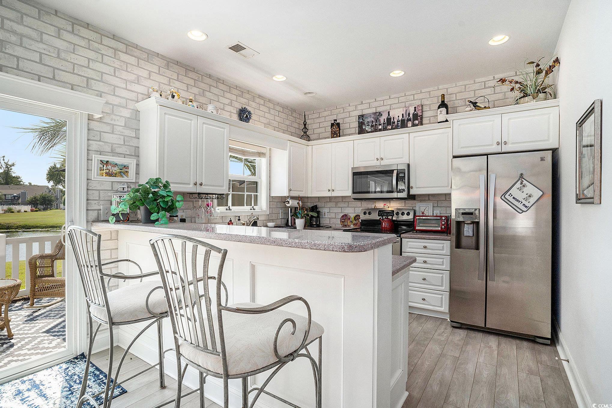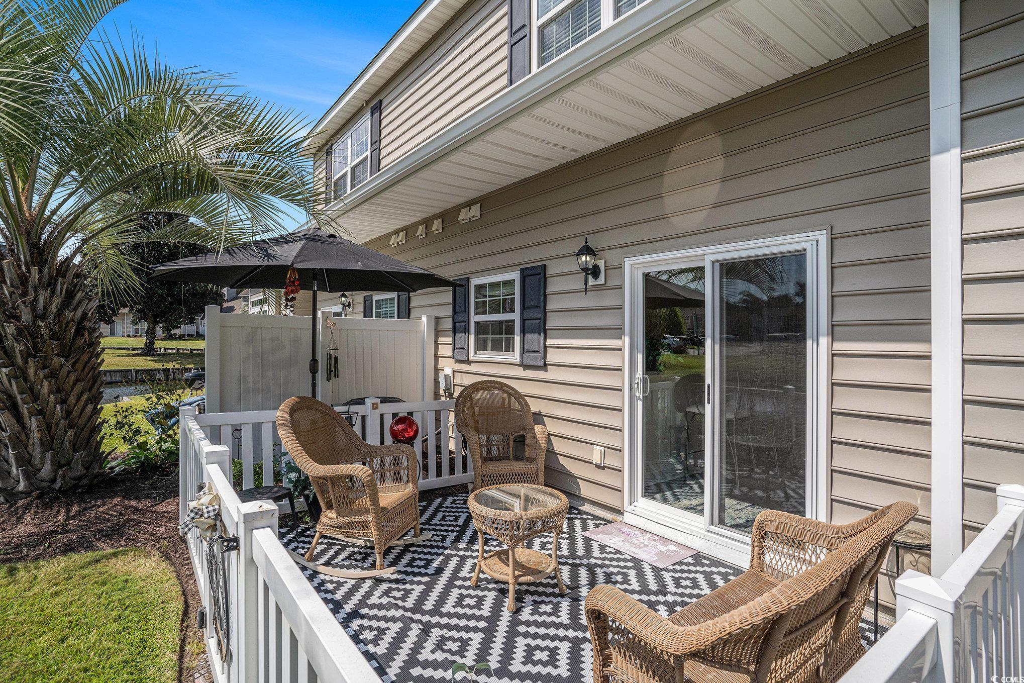 LARGE FAIRWAY OAKS UNIT ON THE POND! This townhouse-style condo is in the popular community of Fairway Oaks located in the Cherry Grove section of North Myrtle Beach. This unit overlooks one of the beautiful community ponds, and is only steps away from the community pool. Enjoy the open-concept floor plan featuring high ceilings, stainless steel kitchen appliances and granite countertops, eat-in breakfast bar, separate laundry space, walk-in pantry, and first-floor primary suite with walk-in closet and half bath. Two spacious guest bedrooms and full guest bath located on the second level. Flooring in the unit includes LVP, carpet and tile. The outdoor fenced-in patio is a perfect space to relax with morning coffee while enjoying views of the community pond and soothing sounds of the pond fountain. The patio is large enough for a grill, outdoor furniture and storage chest to store all your beach essentials. Fairway Oaks is a hidden gem bordering the Surf Golf & Beach Club offering an oversized community pool, hot tub and on-site playground. Become an owner in this quiet neighborhood with beautiful Magnolia trees, ponds and fountains making it a natural habitat to spot turtles and coastal bird life along the property. Just a short golf cart ride to entertainment, restaurants and beach shopping in Cherry Grove and Ocean Drive, fun for the entire family. Golf cart and pet friendly community. Make beach life your best life with this beautiful beach condo!