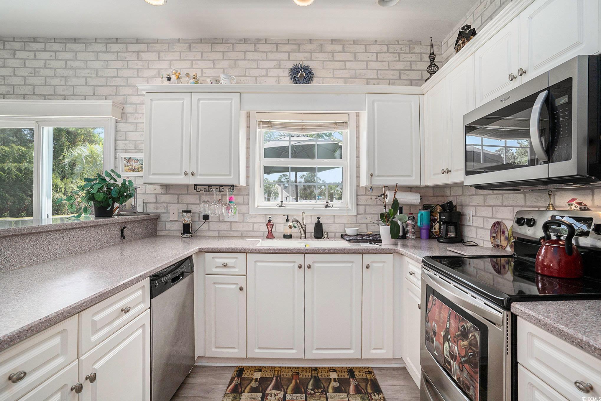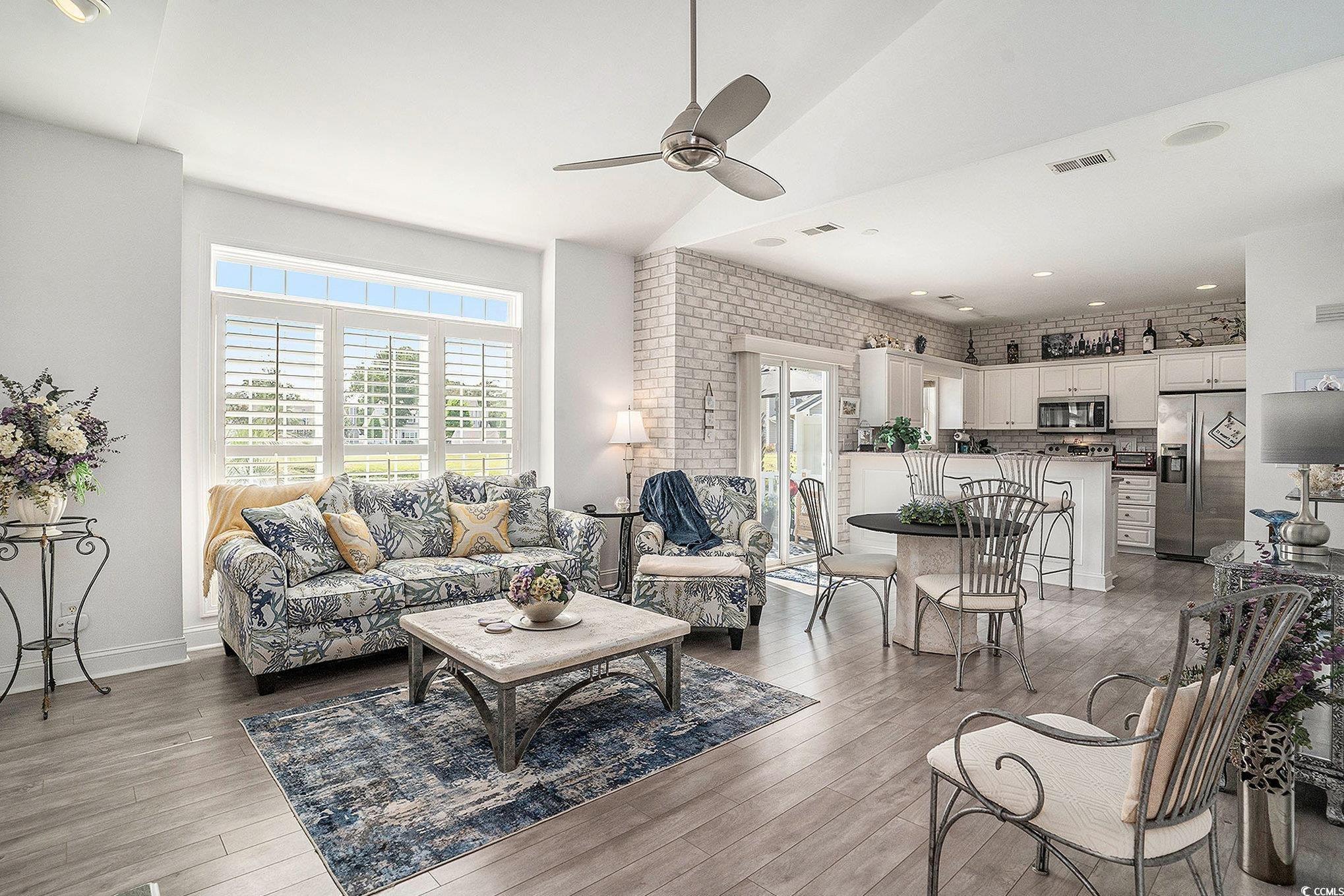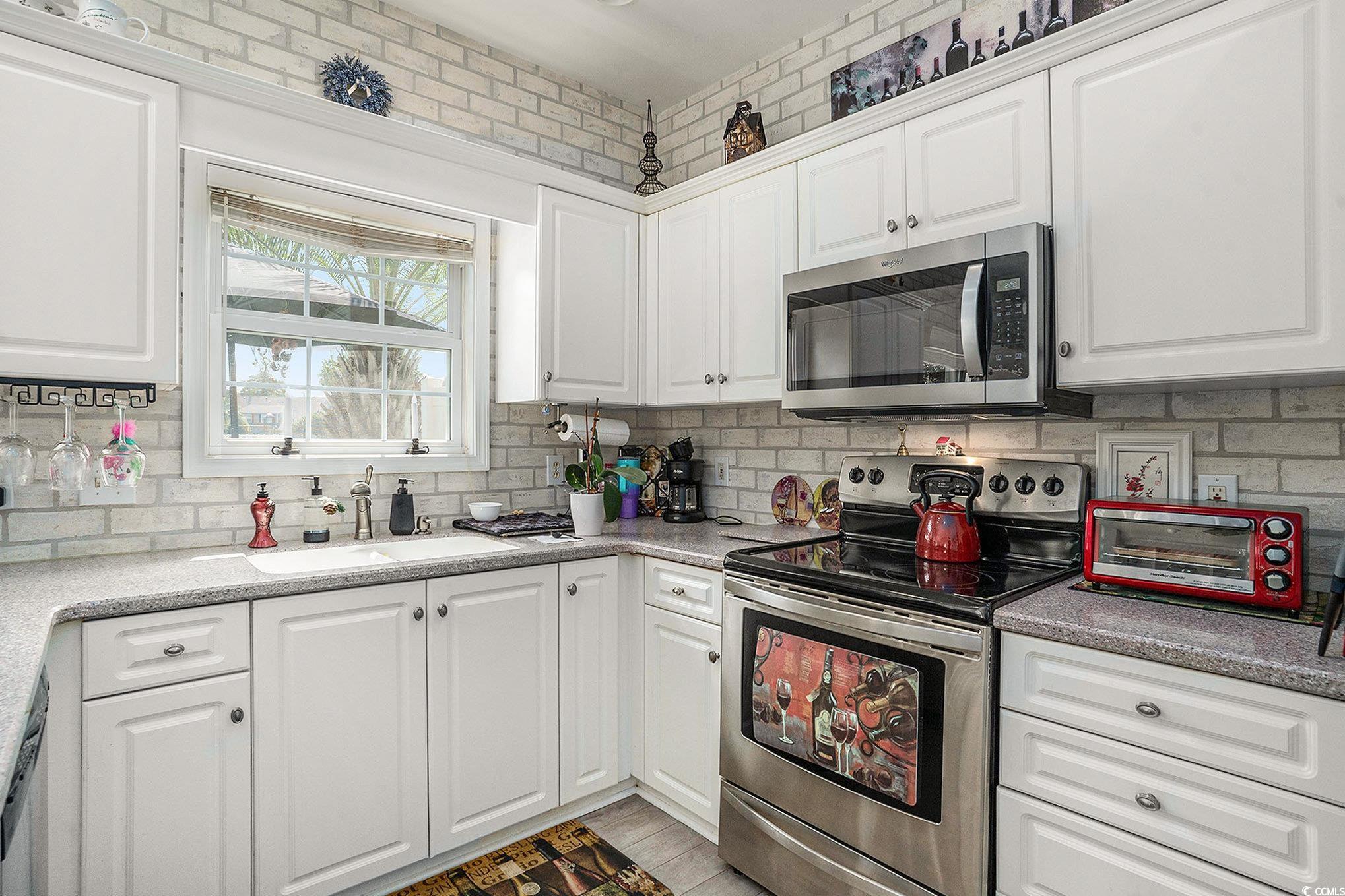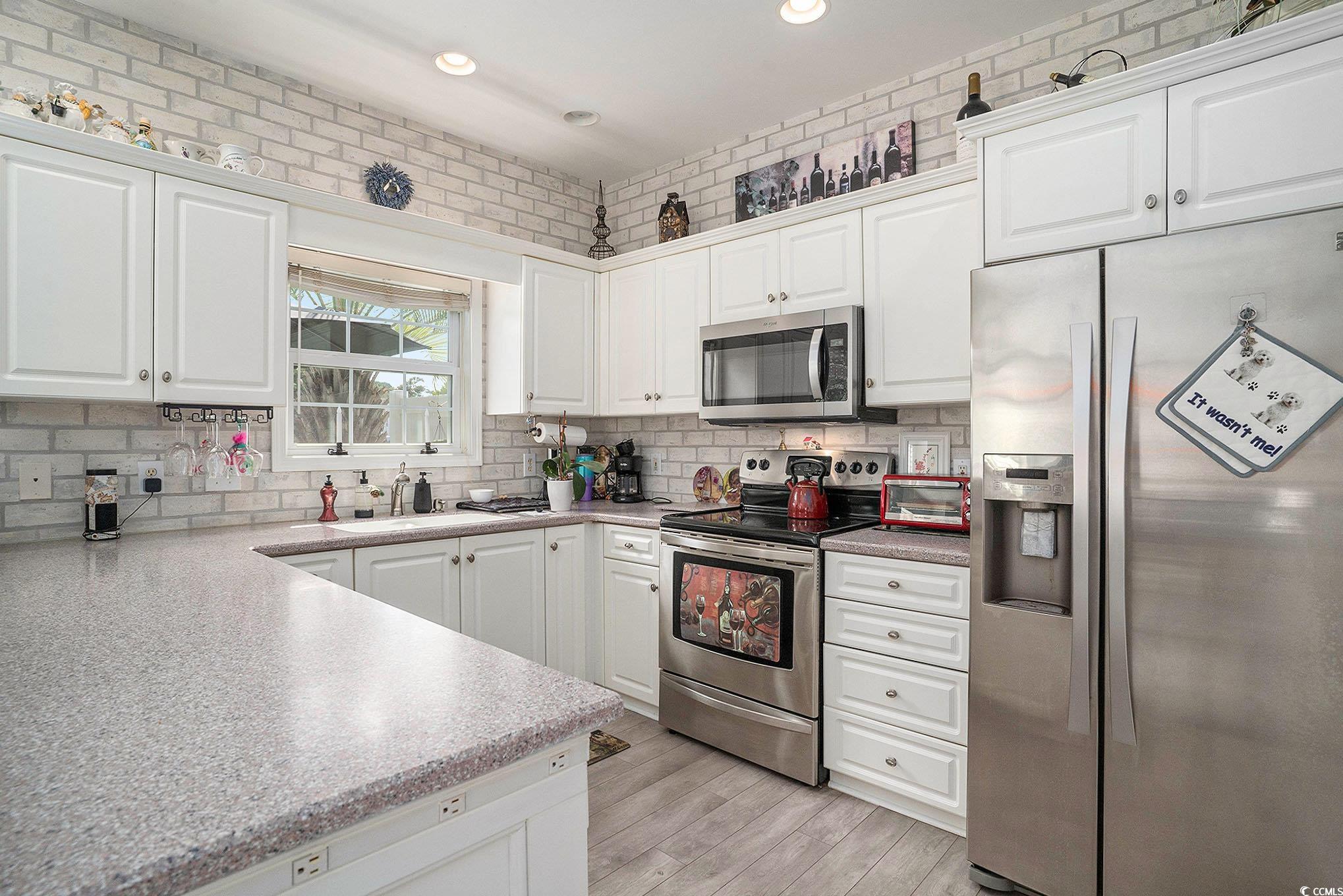 LARGE FAIRWAY OAKS UNIT ON THE POND! This townhouse-style condo is in the popular community of Fairway Oaks located in the Cherry Grove section of North Myrtle Beach. This unit overlooks one of the beautiful community ponds, and is only steps away from the community pool. Enjoy the open-concept floor plan featuring high ceilings, stainless steel kitchen appliances and granite countertops, eat-in breakfast bar, separate laundry space, walk-in pantry, and first-floor primary suite with walk-in closet and half bath. Two spacious guest bedrooms and full guest bath located on the second level. Flooring in the unit includes LVP, carpet and tile. The outdoor fenced-in patio is a perfect space to relax with morning coffee while enjoying views of the community pond and soothing sounds of the pond fountain. The patio is large enough for a grill, outdoor furniture and storage chest to store all your beach essentials. Fairway Oaks is a hidden gem bordering the Surf Golf & Beach Club offering an oversized community pool, hot tub and on-site playground. Become an owner in this quiet neighborhood with beautiful Magnolia trees, ponds and fountains making it a natural habitat to spot turtles and coastal bird life along the property. Just a short golf cart ride to entertainment, restaurants and beach shopping in Cherry Grove and Ocean Drive, fun for the entire family. Golf cart and pet friendly community. Make beach life your best life with this beautiful beach condo!