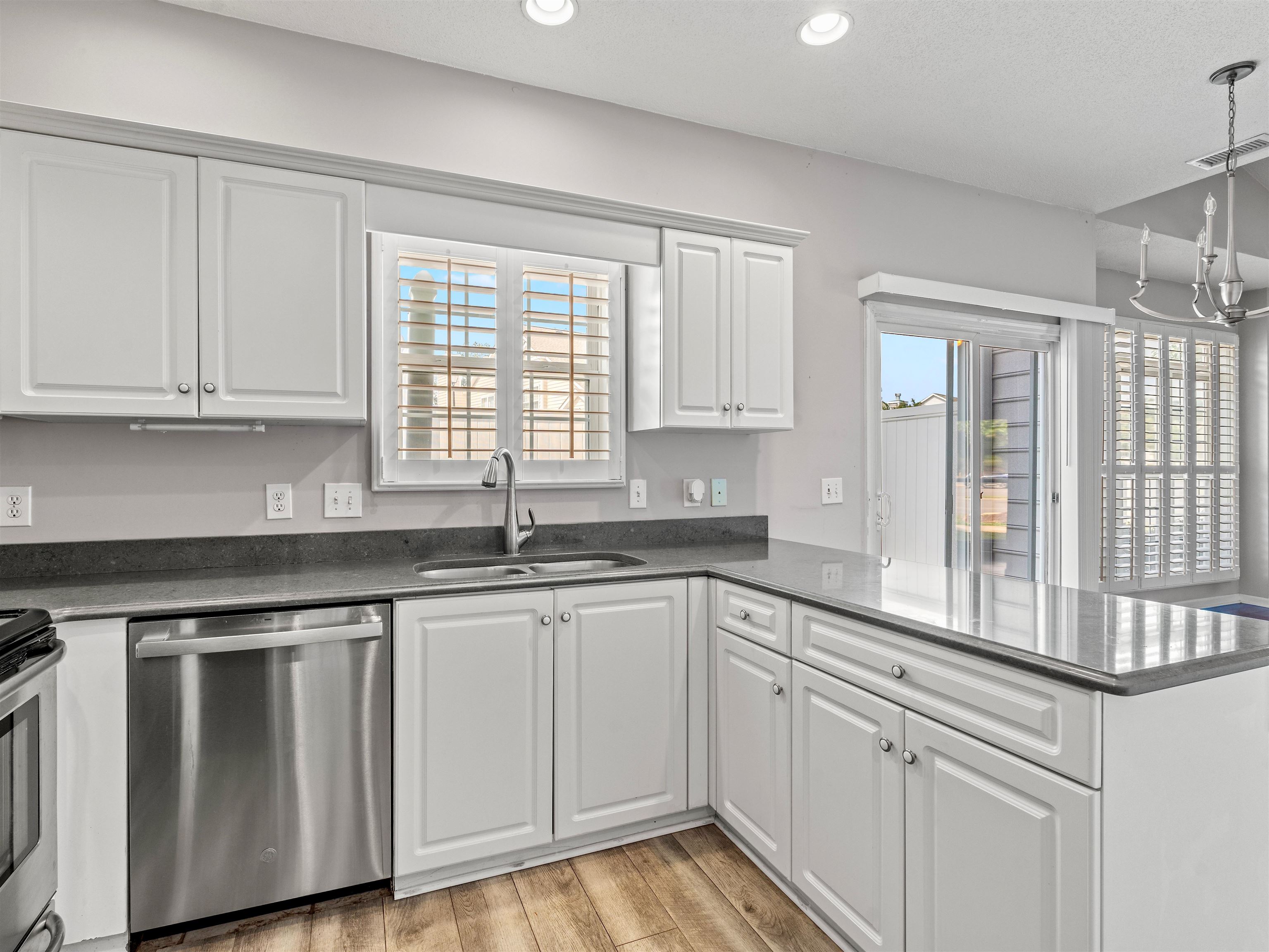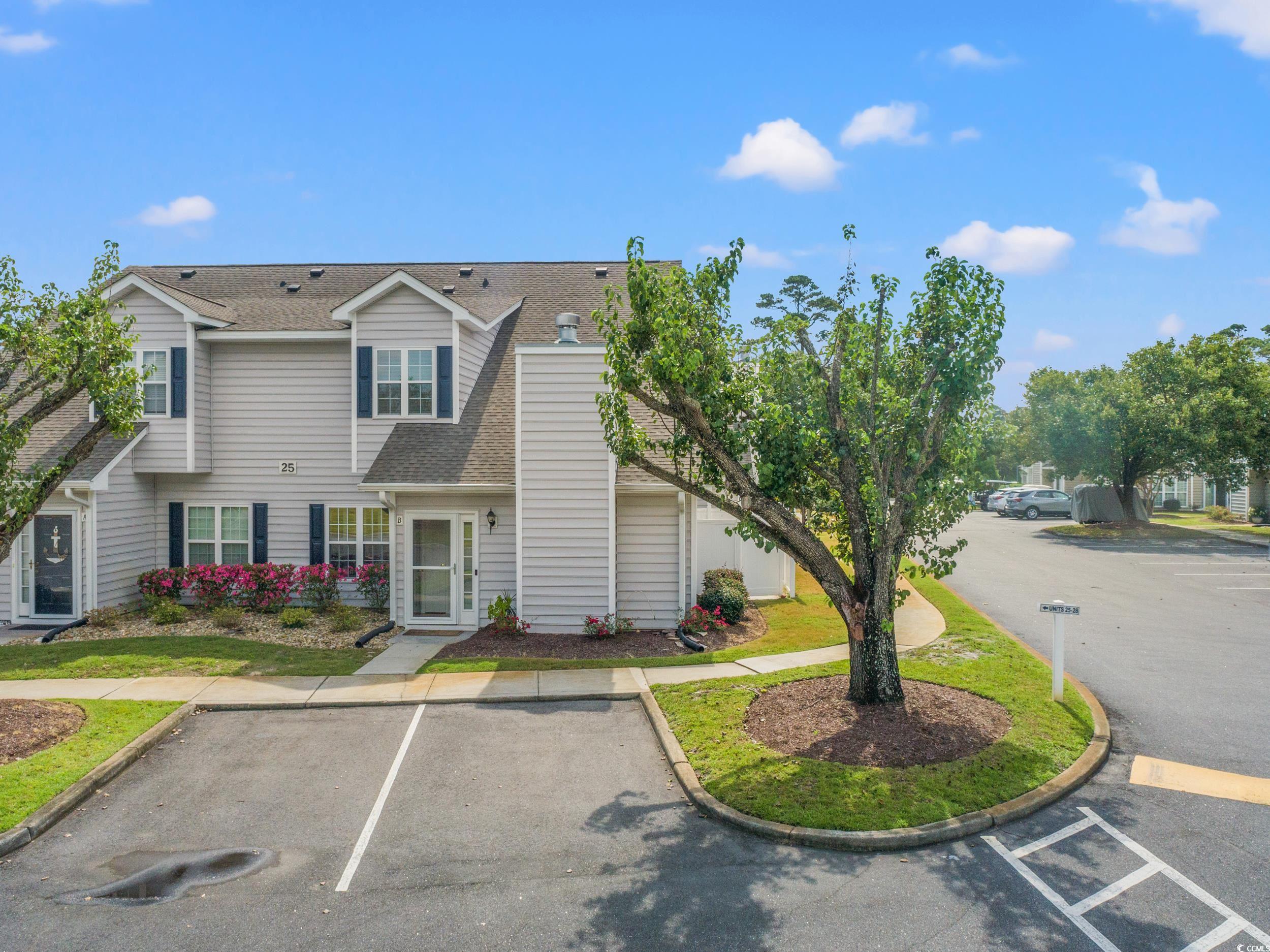 This 3 Large Bedroom 2 Bath townhouse style condo features an amazing centralized location! Enjoy this home in comfort and style with numerous local amenities just minutes away. Condo features a comfortable living room with gas fireplace, private fenced patio off dining/living room, large primary bedroom on first floor and more. Second floor offers two large bedrooms, one on each side of the stairway and a full bathroom. The Fairway Oaks community enjoys a very spacious pool, clubhouse, playground, and is golf cart friendly. Nestled just a few short blocks from the beach this property is great as a permanent residence, beach retreat, or rental investment. Plantation blinds are featured throughout the home, the kitchen refrigerator, washer and dryer, as well as all upstairs furniture shown is included! This home location is nicely positioned near to the community pool for easy in and out access and sits just minutes from loads of shopping, dining, and seaside fun; again all easily accessible by golf cart.