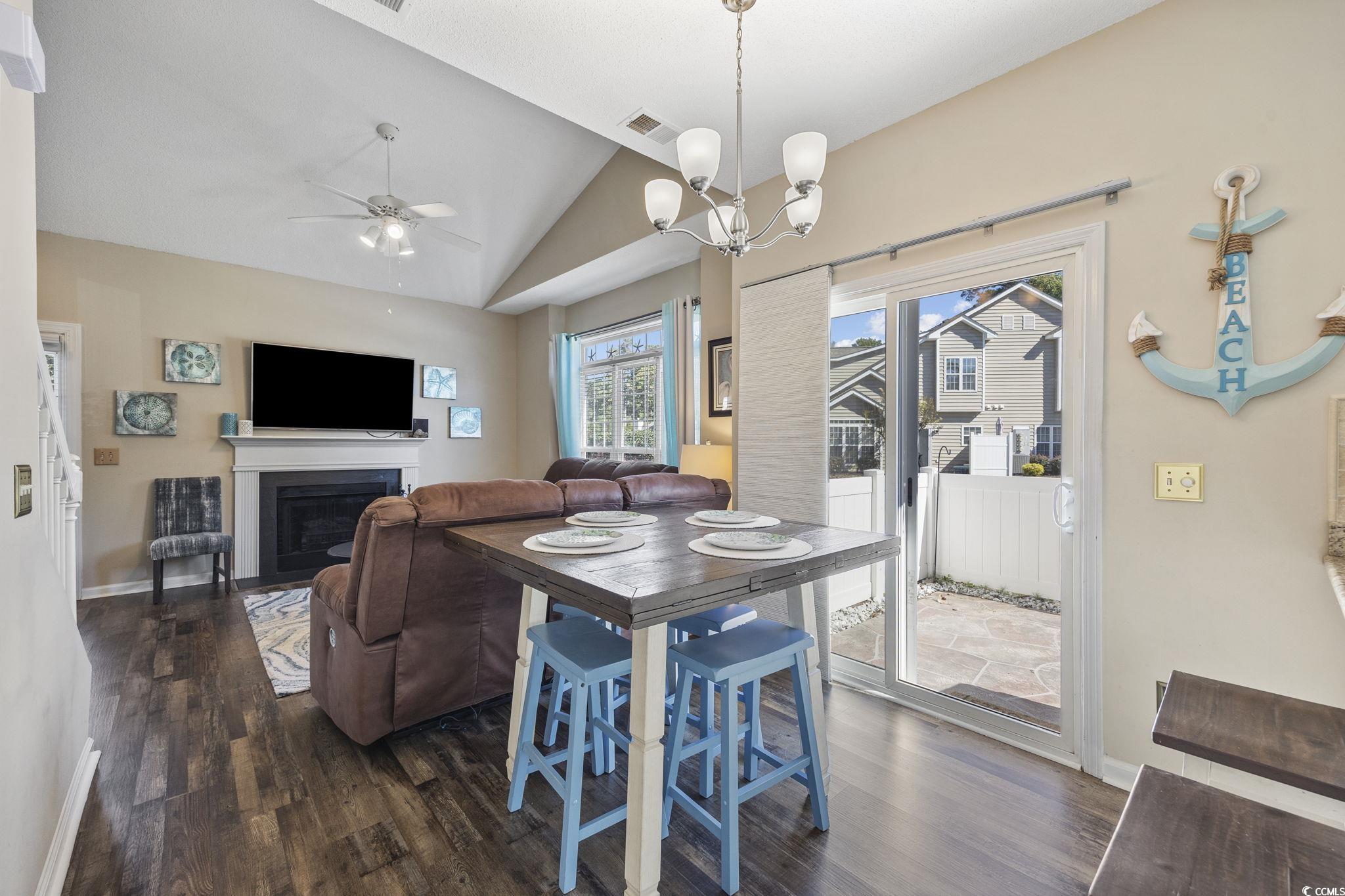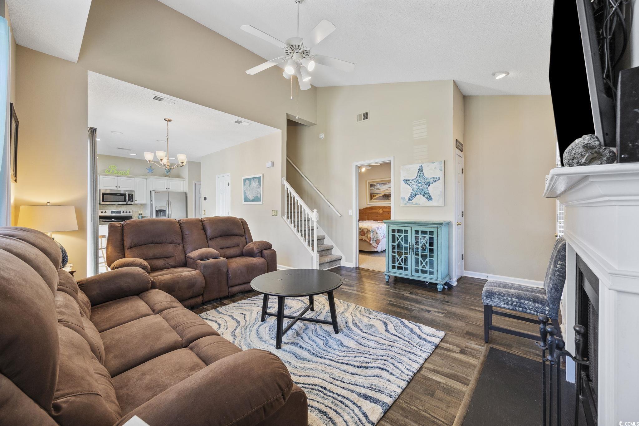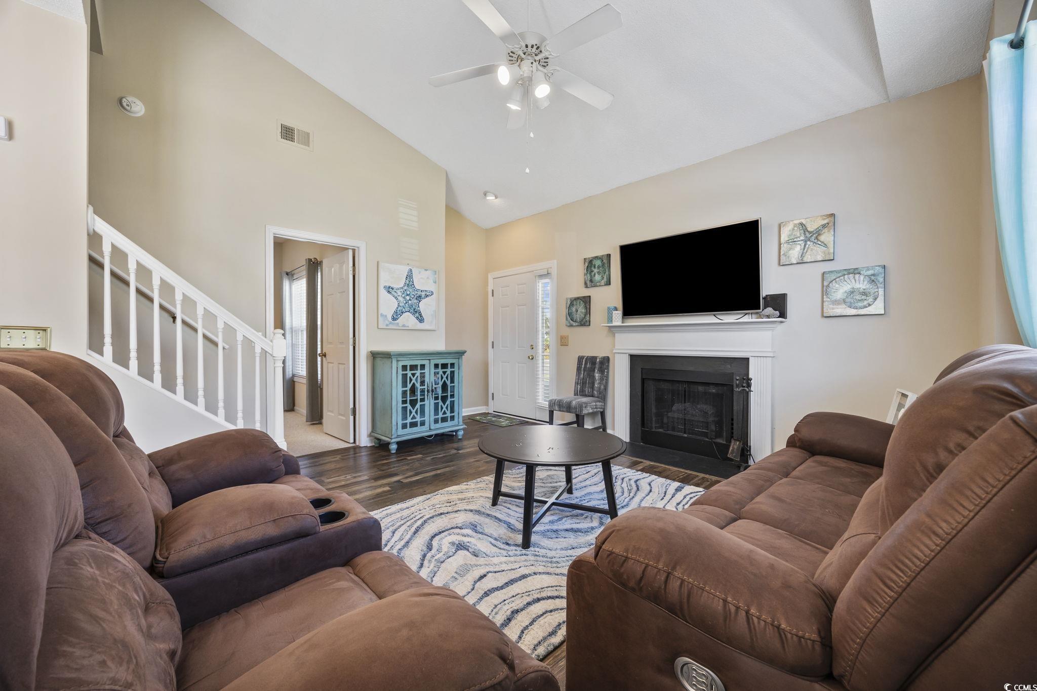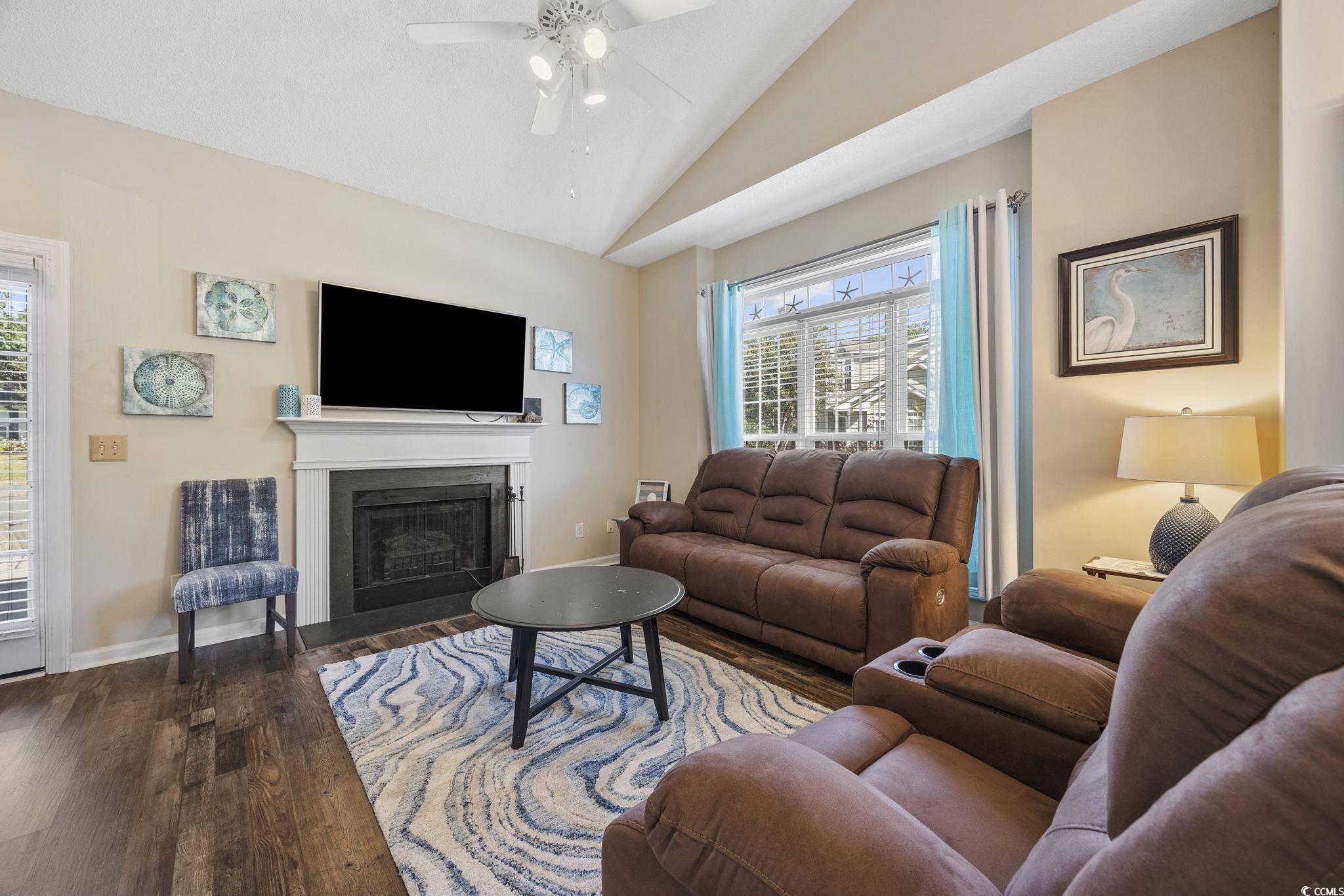 Welcome to this beautifully maintained and fully furnished 3-bedroom, 2-bath townhome in the heart of Cherry Grove! Located in the private and highly sought-after community of Fairway Oaks, this home offers stunning golf course views and a peaceful retreat just 3.5 blocks from the sparkling ocean waves. The interior showcases upgrades throughout and an open concept floor plan that is filled with natural light. The spacious living room boasts vaulted ceilings and a cozy fireplace. Then flows seamlessly into the dining area and kitchen, which features granite countertops, tile backsplash, and stainless-steel sink and appliances. The first-floor master suite includes a walk-in closet and an updated en-suite bath with a walk-in shower. Upstairs, you'll find two more beautifully updated guest bedrooms and a second full bathroom, also featuring a walk-in shower. In addition to all that the interior has to offer, the exterior is just as impressive! The end unit offers additional privacy and has a large side yard and a private patio perfect for grilling or enjoying the sunshine! You also have easy access to the pool and clubhouse and can take advantage of the quick golf-cart distance ride to the beach, Main Street, or Cherry Grove Pointe. Fairway Oaks offers a low HOA, with desirable amenities, is pet and golf cart friendly, and allows short-term rentals making this home ideal for full-time living, a vacation getaway, or a strong income-producing investment!