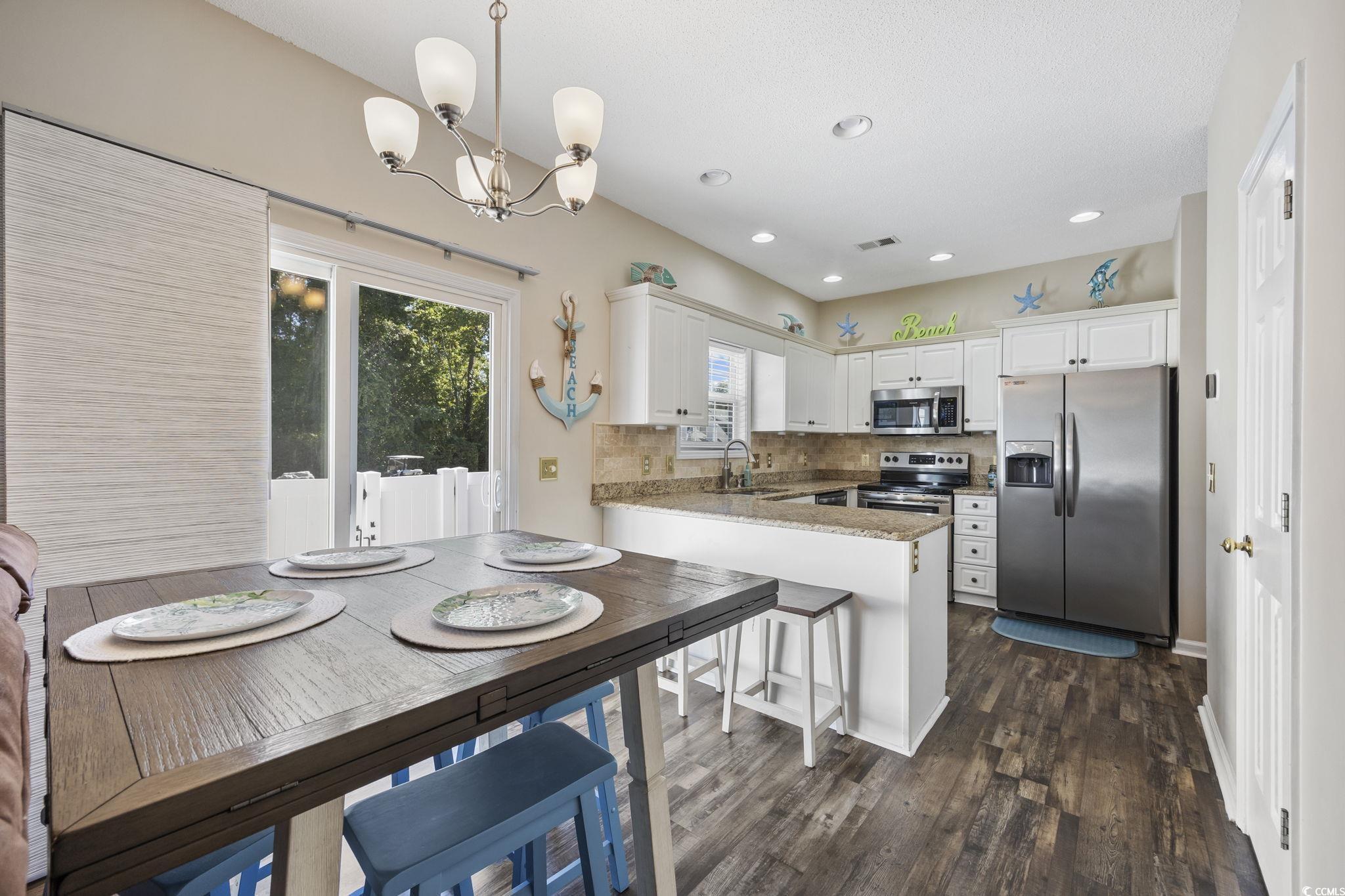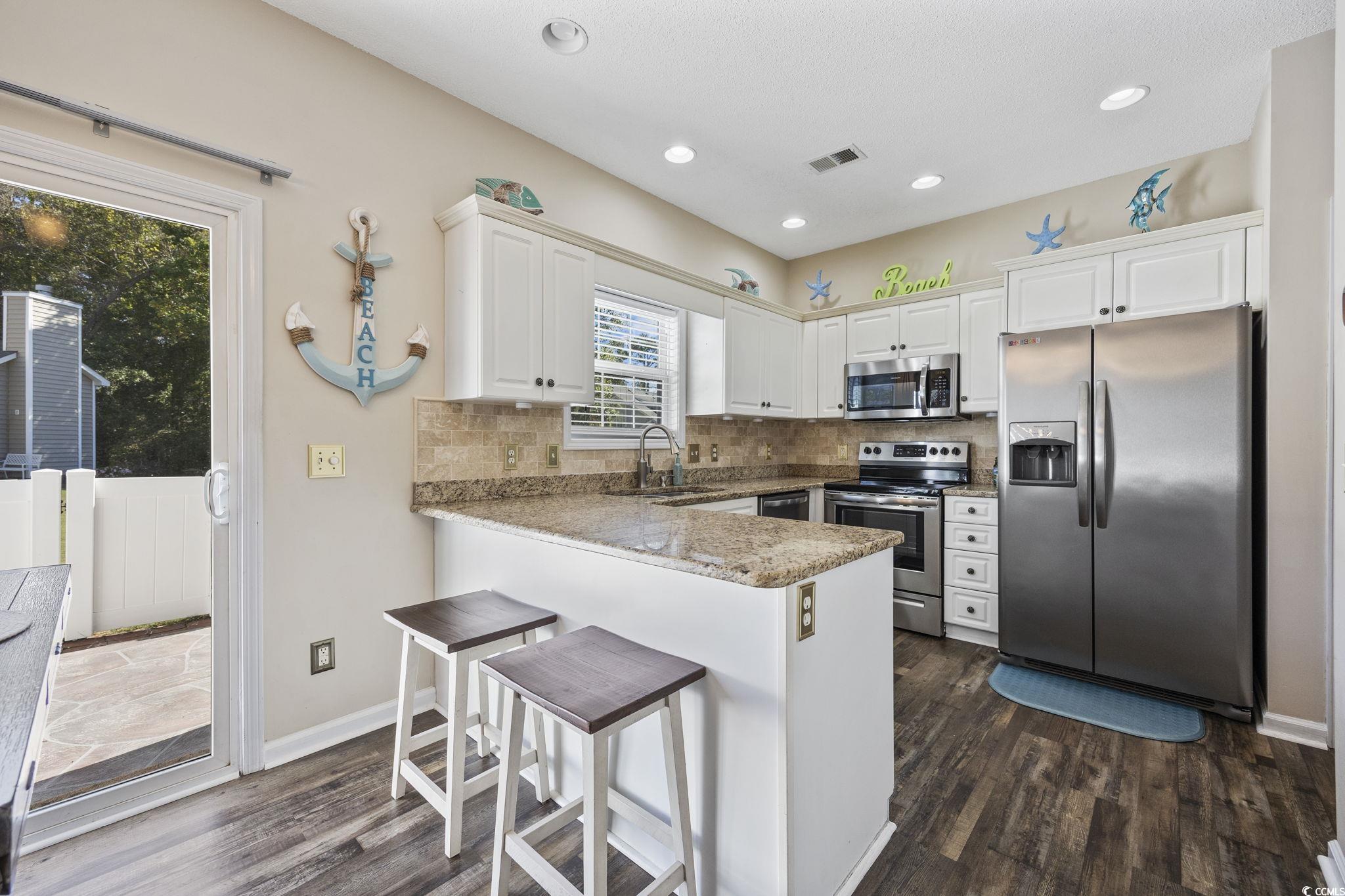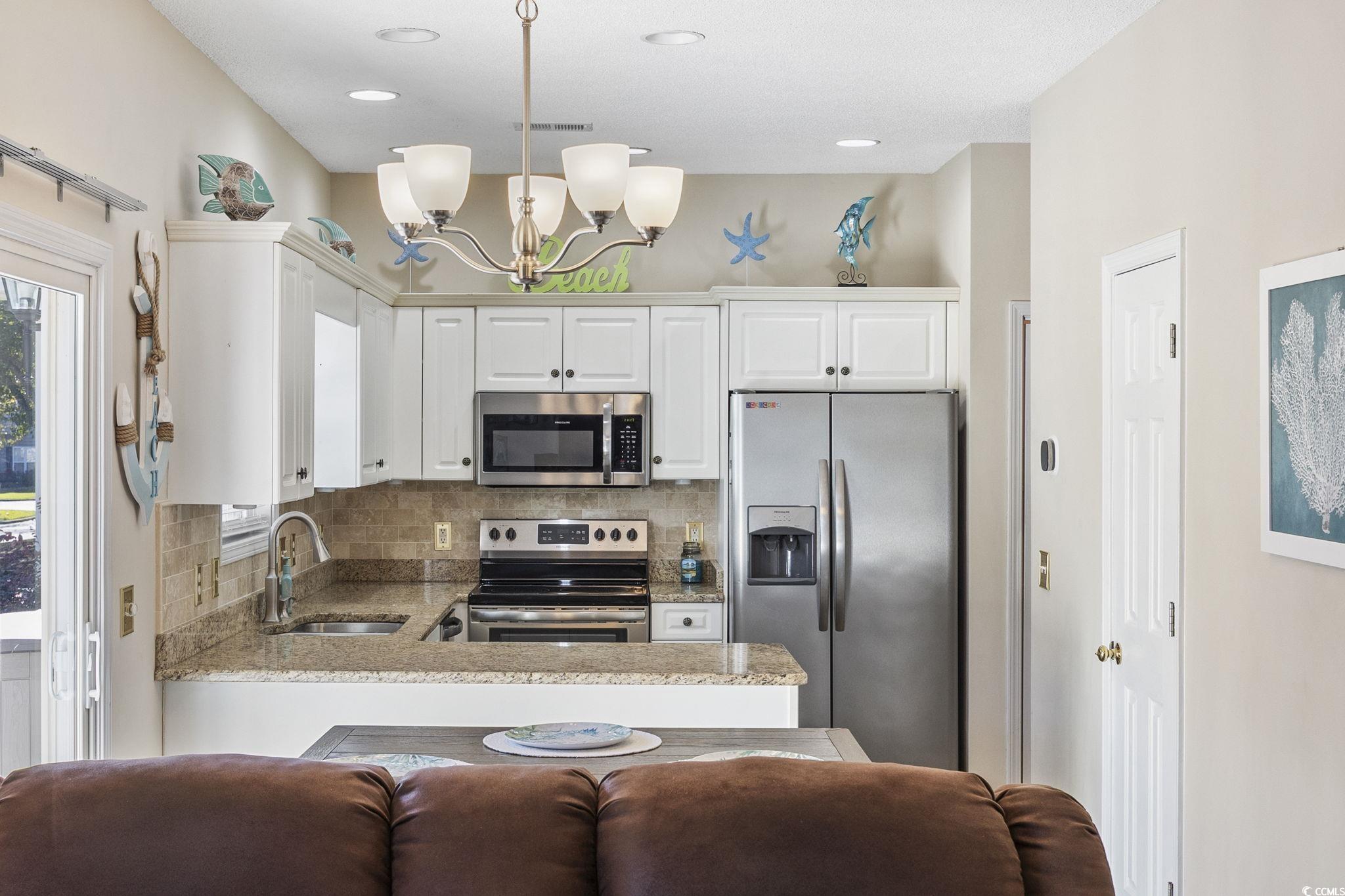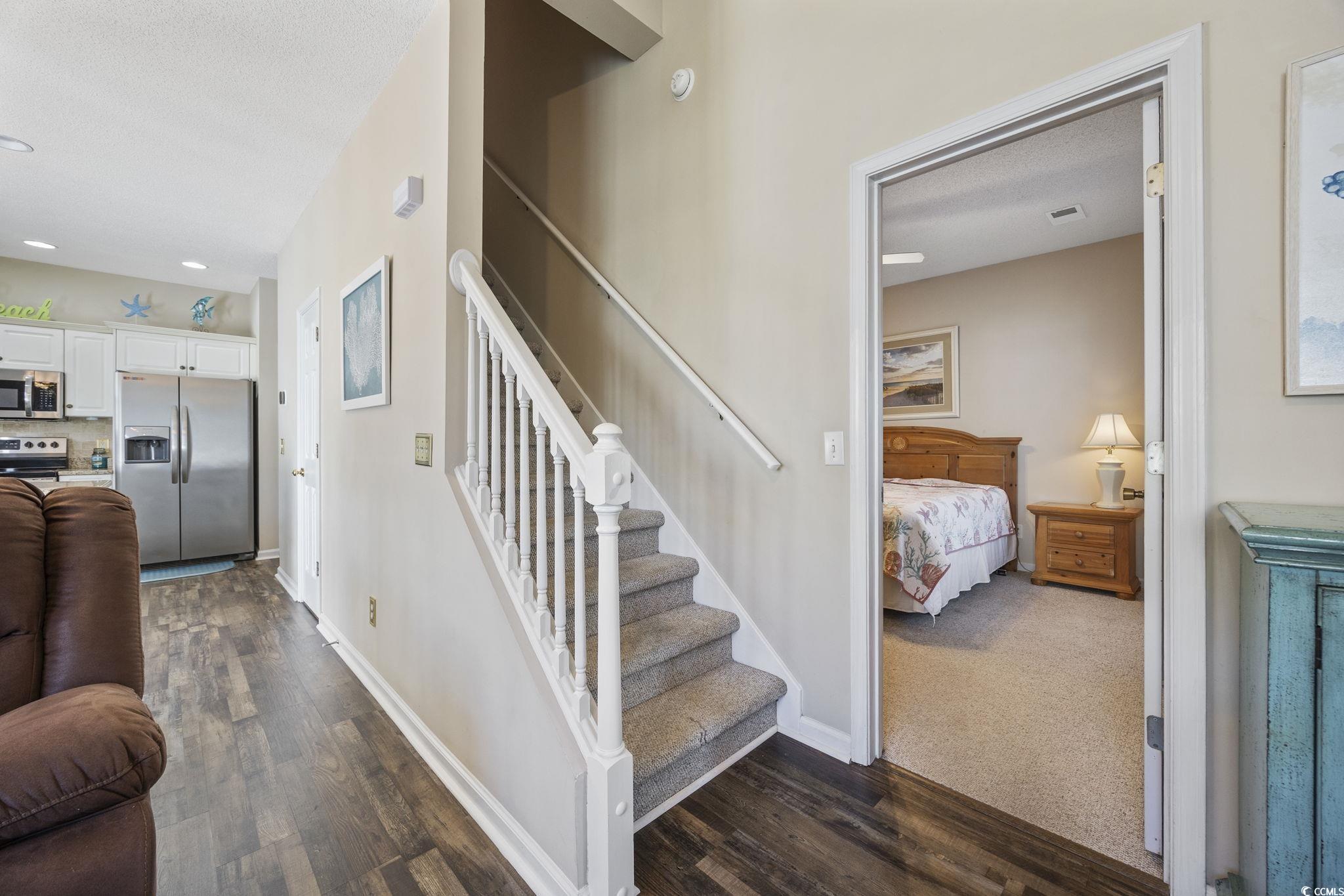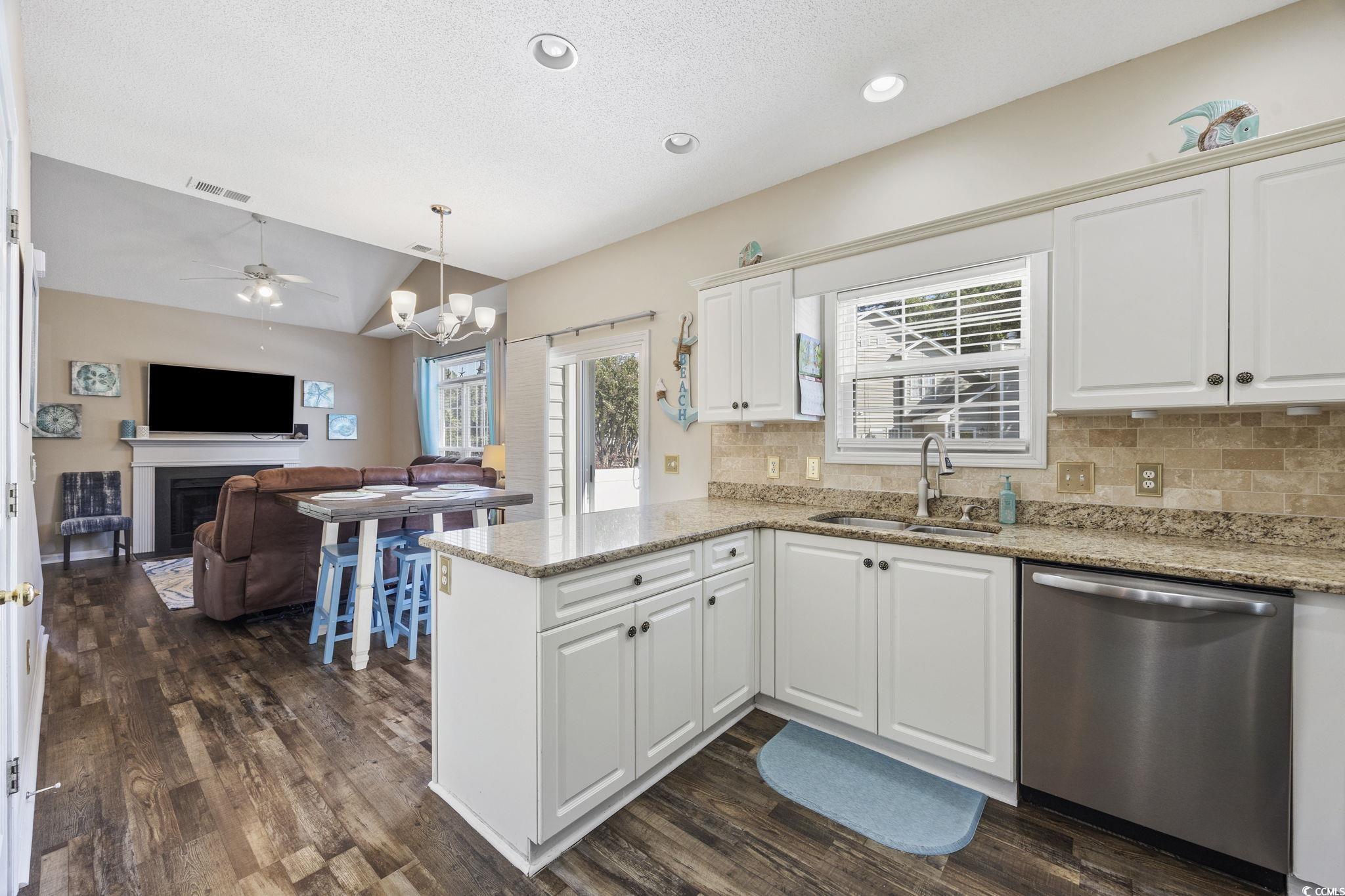Welcome to this beautifully maintained and fully furnished 3-bedroom, 2-bath townhome in the heart of Cherry Grove! Located in the private and highly sought-after community of Fairway Oaks, this home offers stunning golf course views and a peaceful retreat just 3.5 blocks from the sparkling ocean waves. The interior showcases upgrades throughout and an open concept floor plan that is filled with natural light. The spacious living room boasts vaulted ceilings and a cozy fireplace. Then flows seamlessly into the dining area and kitchen, which features granite countertops, tile backsplash, and stainless-steel sink and appliances. The first-floor master suite includes a walk-in closet and an updated en-suite bath with a walk-in shower. Upstairs, you'll find two more beautifully updated guest bedrooms and a second full bathroom, also featuring a walk-in shower. In addition to all that the interior has to offer, the exterior is just as impressive! The end unit offers additional privacy and has a large side yard and a private patio perfect for grilling or enjoying the sunshine! You also have easy access to the pool and clubhouse and can take advantage of the quick golf-cart distance ride to the beach, Main Street, or Cherry Grove Pointe. Fairway Oaks offers a low HOA, with desirable amenities, is pet and golf cart friendly, and allows short-term rentals making this home ideal for full-time living, a vacation getaway, or a strong income-producing investment!