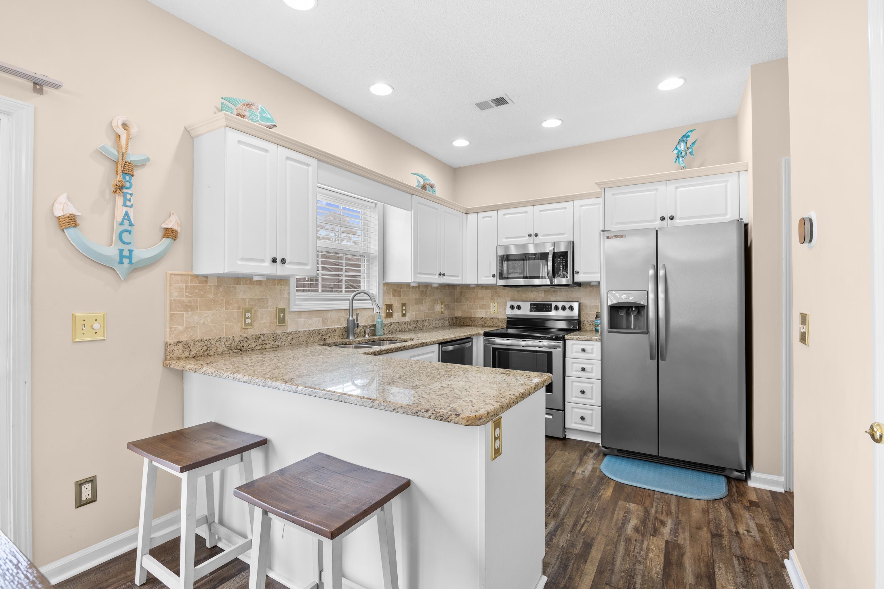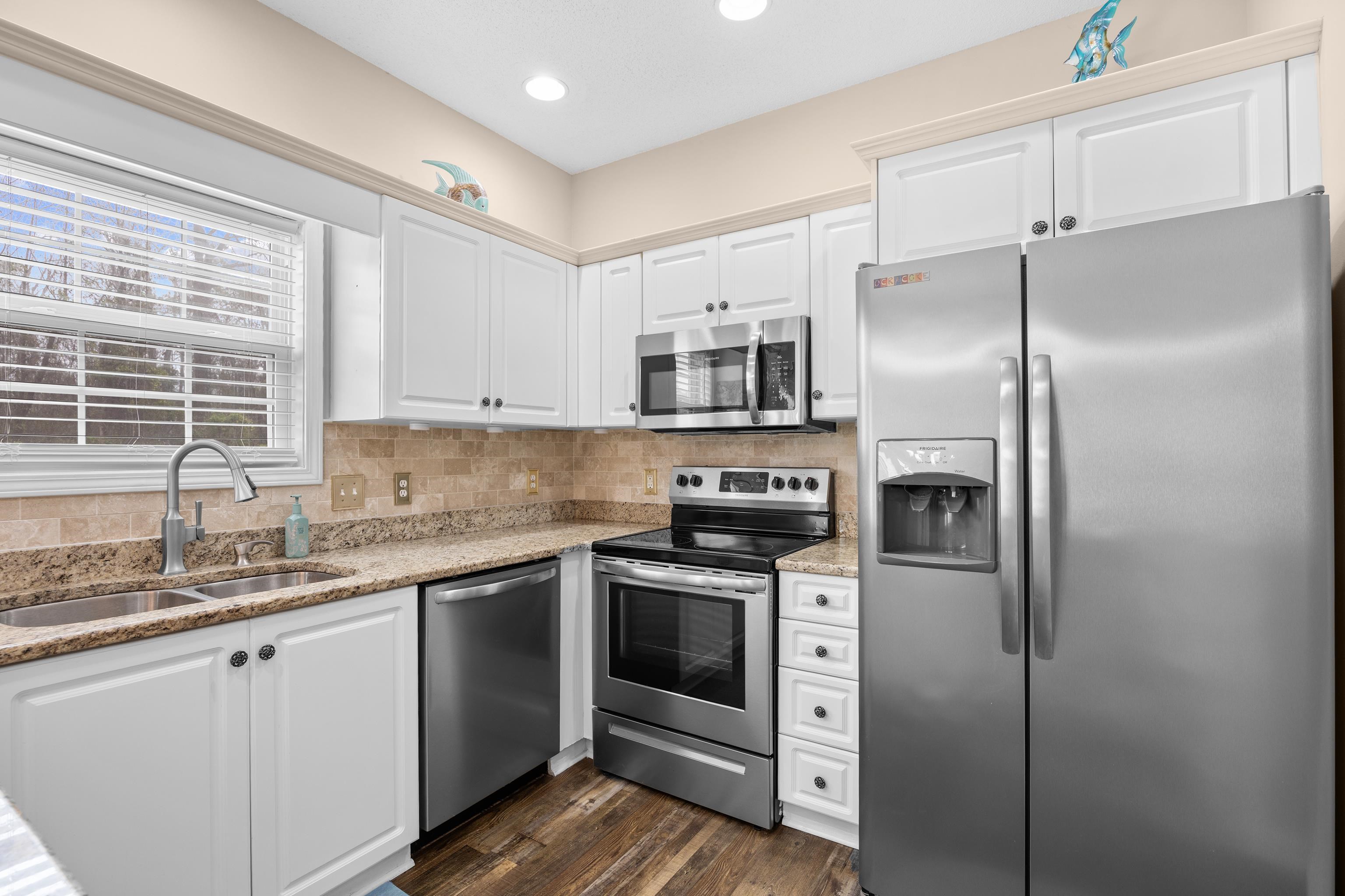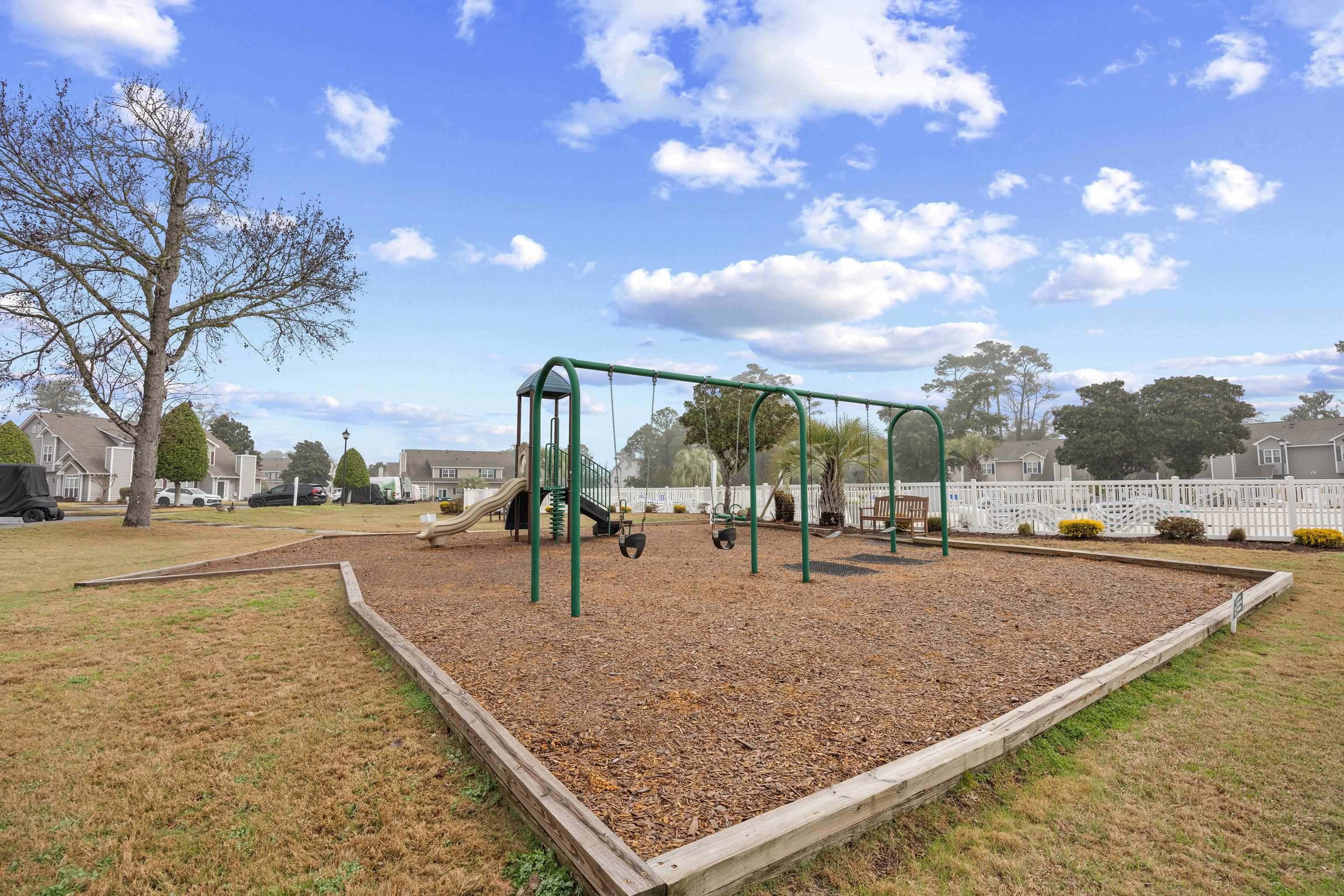 Welcome to this beautifully maintained 3-bedroom, 2-bath townhome-style condo located in the desirable Fairway Oaks community in the Cherry Grove section of North Myrtle Beach. Just a short golf cart ride to the beach, this spacious home offers the perfect blend of coastal living and comfort. The open-concept floor plan features a bright living area with vaulted ceilings and a cozy fireplace that flows seamlessly into the dining space and kitchen, complete with granite countertops, tile backsplash, and stainless-steel appliances. The first-floor suite includes a walk-in closet and updated bath with a walk-in shower, while two additional guest bedrooms and a full bath are located upstairs, providing privacy for family and guests. Enjoy relaxing outdoors on the private patio overlooking peaceful golf course views. Fairway Oaks offers great amenities including a community pool, clubhouse, and golf-cart-friendly access to nearby beaches, shopping, dining, and entertainment. Whether you're looking for a primary residence, vacation getaway, or investment opportunity, this property offers excellent versatility in a sought-after coastal location.