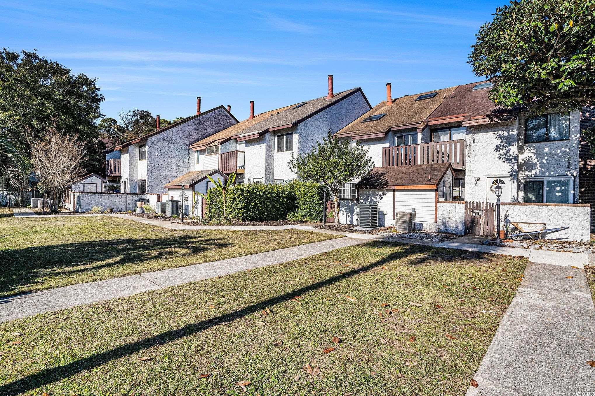 2BR/1.5BA townhome in the desirable Brandywine North community, located in the Pine Lakes area of Myrtle Beach. The main floor features a spacious living area with tile flooring and a kitchen offering ample cabinet and counter space, plus a stove, refrigerator, and dishwasher. The second-floor primary bedroom includes a Murphy bed, private balcony, and brand-new black-and-white checkered flooring. The third-floor bedroom features a skylight for natural light. Recent updates include two new refrigerators, two new microwaves, new carpeting on the staircase (April), fresh paint throughout, and porch updates with new trim and paint. Tile flooring in baths, carpet upstairs. Community amenities include a pool and low HOA fees. Conveniently located near Myrtle Beach's beaches, restaurants, shopping, and attractions, ideal as a primary home, vacation getaway, or investment property.