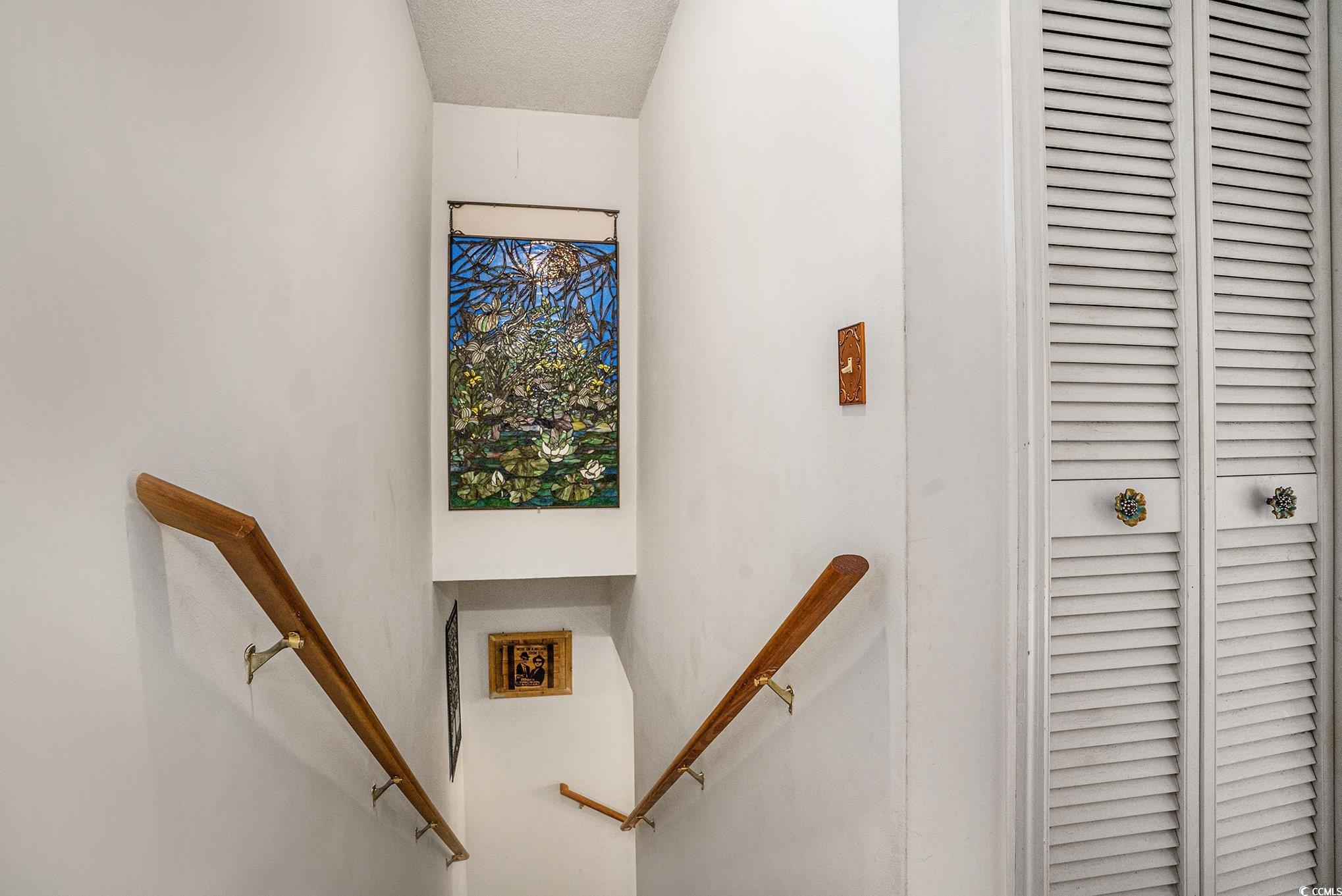 This well-maintained 2 bedroom, 1.5 bath townhome is located in the desirable Brandywine North community in the Pine Lakes area of Myrtle Beach. The main level offers a spacious living area with tile flooring and a kitchen with generous cabinet and counter space, complete with a stove, refrigerator, and dishwasher. The second-floor primary bedroom features a Murphy bed, a private balcony, and newly installed black-and-white checkered flooring. The third-floor bedroom includes a skylight that fills the space with natural light. Bathrooms feature tile flooring, while carpet is found upstairs. Recent updates include two new refrigerators, two new microwaves, new carpeting on the staircase (April), fresh interior paint, and porch improvements with new trim and paint. The community offers a swimming pool and low HOA fees. Conveniently located near Myrtle Beach’s beaches, dining, shopping, and attractions, this townhome is ideal as a primary residence, vacation retreat, or investment property.