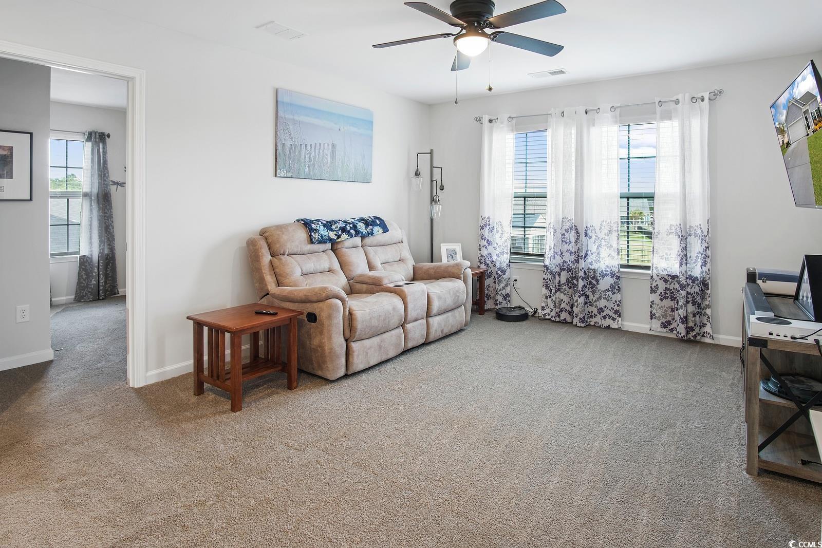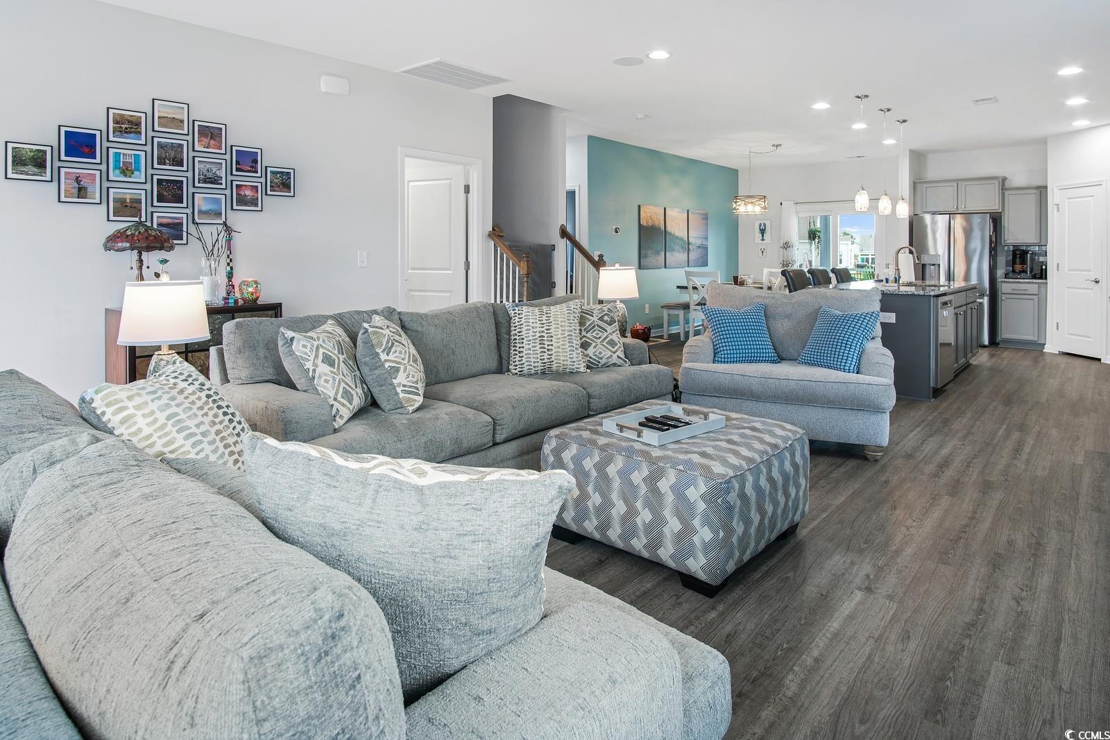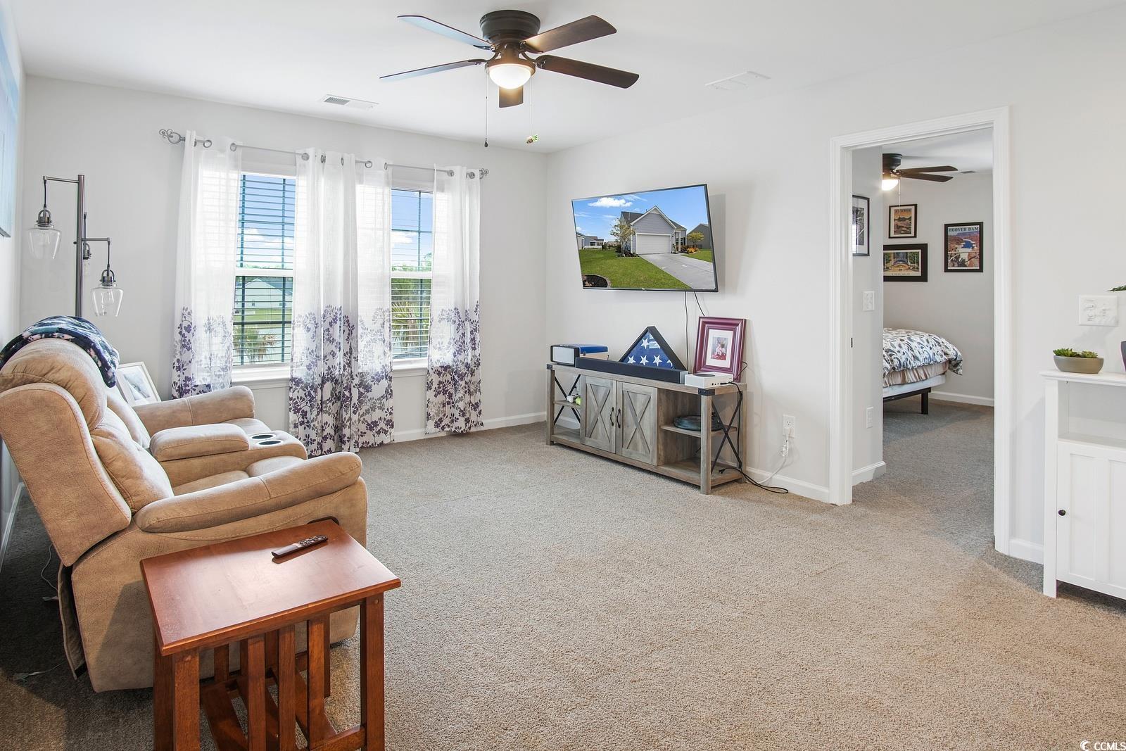 This young home built in 2021 features an open-concept layout with ceiling fans and upgraded fixtures. There are many upgrades to enjoy such as the Smart Home features, living room wired with Dolby 5.1 Surround sound, Hvac system has a UV light and anti-allergen filter that only needs to be changed out yearly, and much more. The stylish laundry room is conveniently located to the primary bedroom on the first floor.. The kitchen is equipped with stainless steel appliances, an island, solid-surface counters, a breakfast bar, and a pantry. A versatile loft can serve as an office, studio, or media room. The property features a screened porch with a view of a peaceful pond, extended patio, and palm trees! The home is just minutes away from Historic Downtown Conway, which offers a riverwalk, boutique shopping, and dining. *HOA just lowered the dues!!** Measurements are approximate and to be verified by buyer.