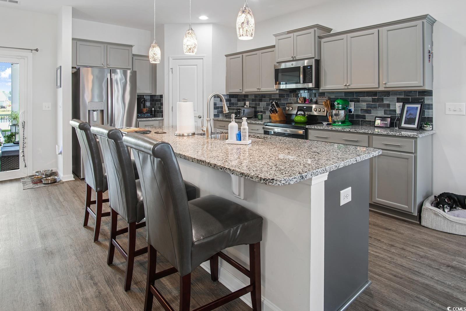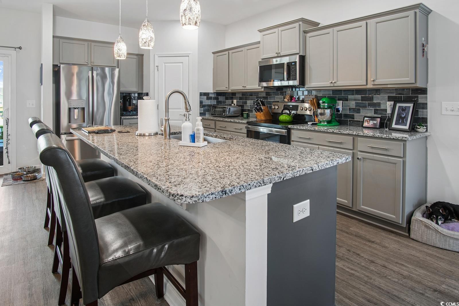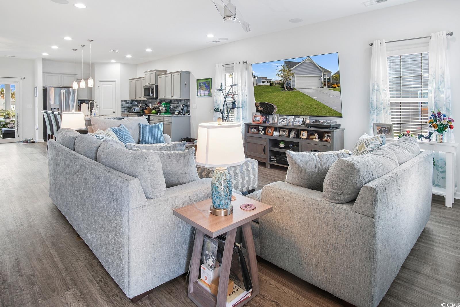 This young home built in 2021 features an open-concept layout with ceiling fans and upgraded fixtures. There are many upgrades to enjoy such as the Smart Home features, living room wired with Dolby 5.1 Surround sound, Hvac system has a UV light and anti-allergen filter that only needs to be changed out yearly, and much more. The stylish laundry room is conveniently located to the primary bedroom on the first floor.. The kitchen is equipped with stainless steel appliances, an island, solid-surface counters, a breakfast bar, and a pantry. A versatile loft can serve as an office, studio, or media room. The property features a screened porch with a view of a peaceful pond, extended patio, and palm trees! The home is just minutes away from Historic Downtown Conway, which offers a riverwalk, boutique shopping, and dining. *HOA just lowered the dues!!** Measurements are approximate and to be verified by buyer.
