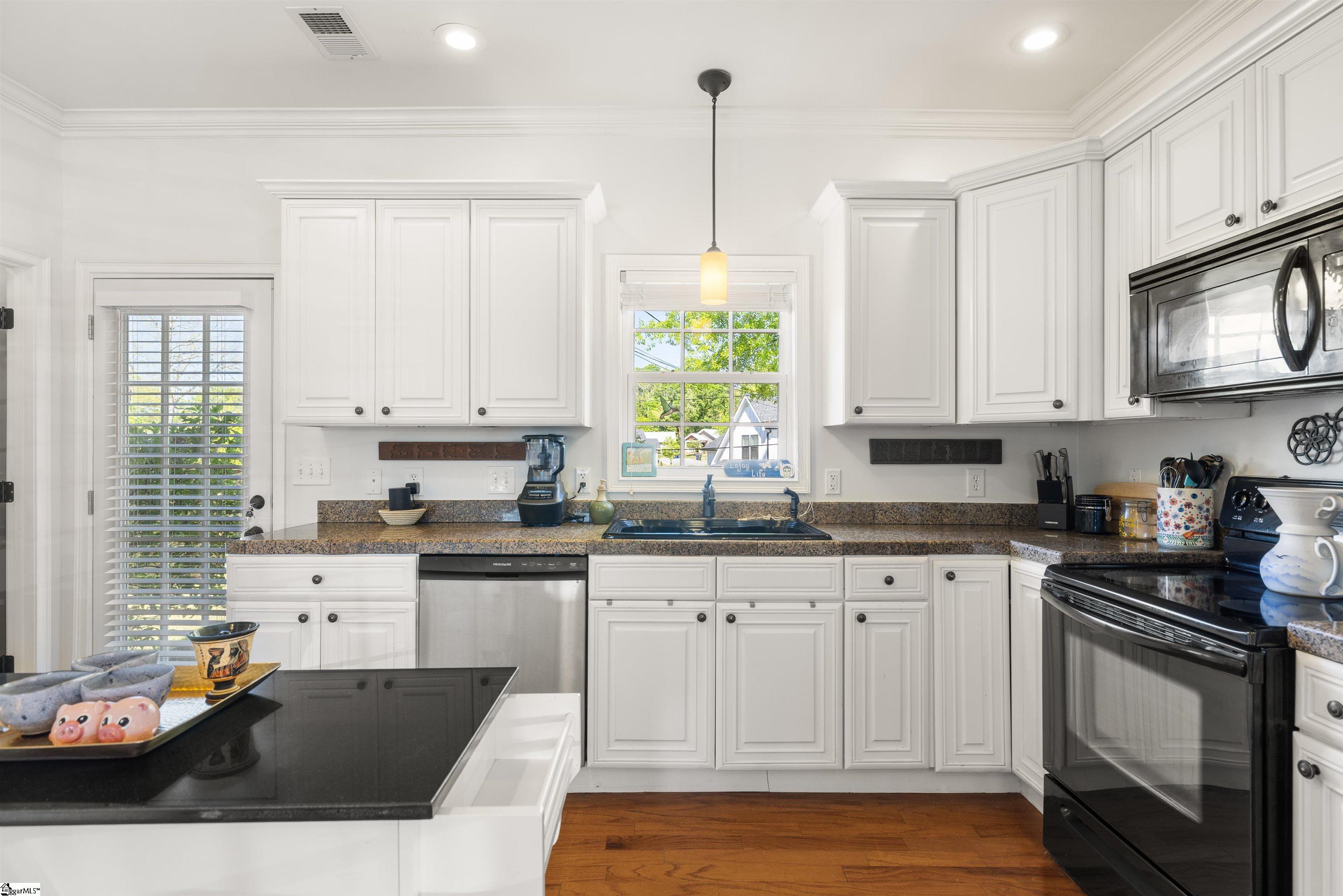 Welcome home to 504 Anderson St! Located in Downtown Greenville, this home is within walking distance to all of the highlights of downtown including Falls Park, Fluor Field, Demarcos Italian, Gather GVL, and more. The back deck overlooks a fully fenced yard, a great space for pets or outdoor gatherings. A storage building at the rear of the property provides space for lawn equipment. The main floor featuring hardwood floors has an open layout with the living area, kitchen, dining space, laundry, and a half bath. The kitchen includes granite countertops, a functional island, and all appliances are included. Upstairs there are three bedrooms and two full bathrooms. The primary bedroom has a walk-in closet, en-suite bathroom with double sinks, and access to a front balcony—an ideal spot for morning coffee. This home combines convenience, function, and proximity to everything in Downtown Greenville. Schedule your showing today and see why 504 Anderson St could be the perfect place to call home.