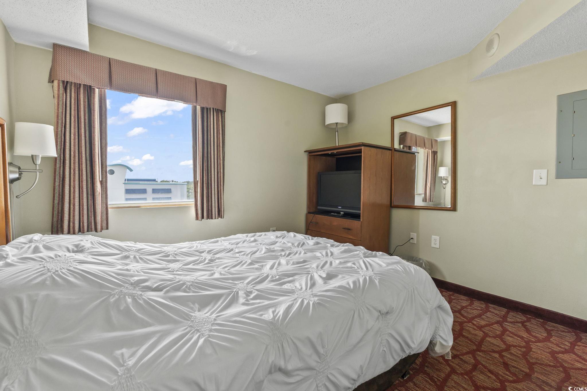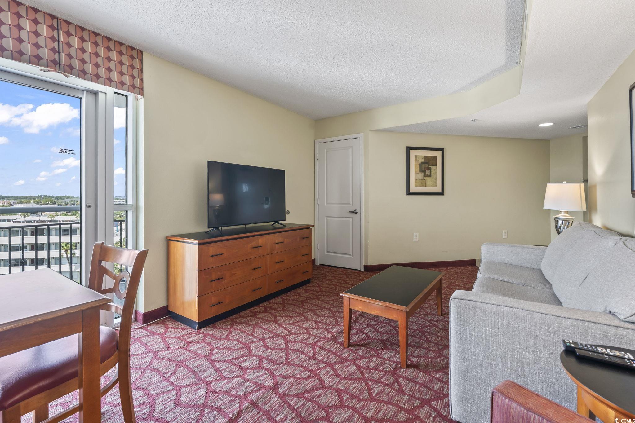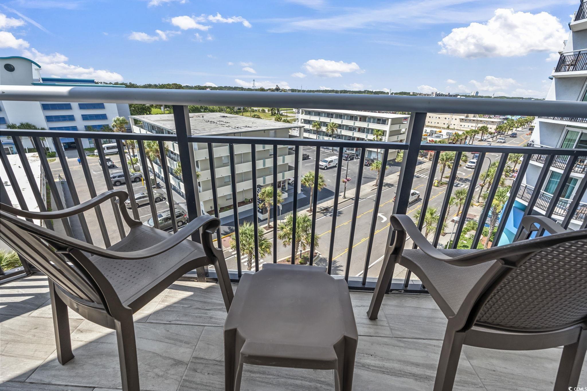 This fully furnished 1-bedroom condo on the 6th floor offers stunning views and a rare true one-bedroom layout, providing a private sleeping space separate from the living area. Stylish updates include flooring, Kitchen appliances, solid surface countertops, and modern appliances. The spacious living room opens to a private balcony with panoramic city and ocean views, perfect for enjoying evening sunsets. Whether you're seeking a personal beach getaway or a high-performing short-term rental, this turnkey unit is ready to go. Bay View Resort is located directly on the famous Myrtle Beach Boardwalk and features premium amenities such as an indoor pool, lazy river, hot tubs, fitness center, and an on-site Starbucks. Walk to attractions like the 2nd Avenue Pier, restaurants, shops, and summer festivals. Excellent rental income potential! Don't miss your chance to own in one of Myrtle Beach's most vibrant and walkable oceanfront locations!