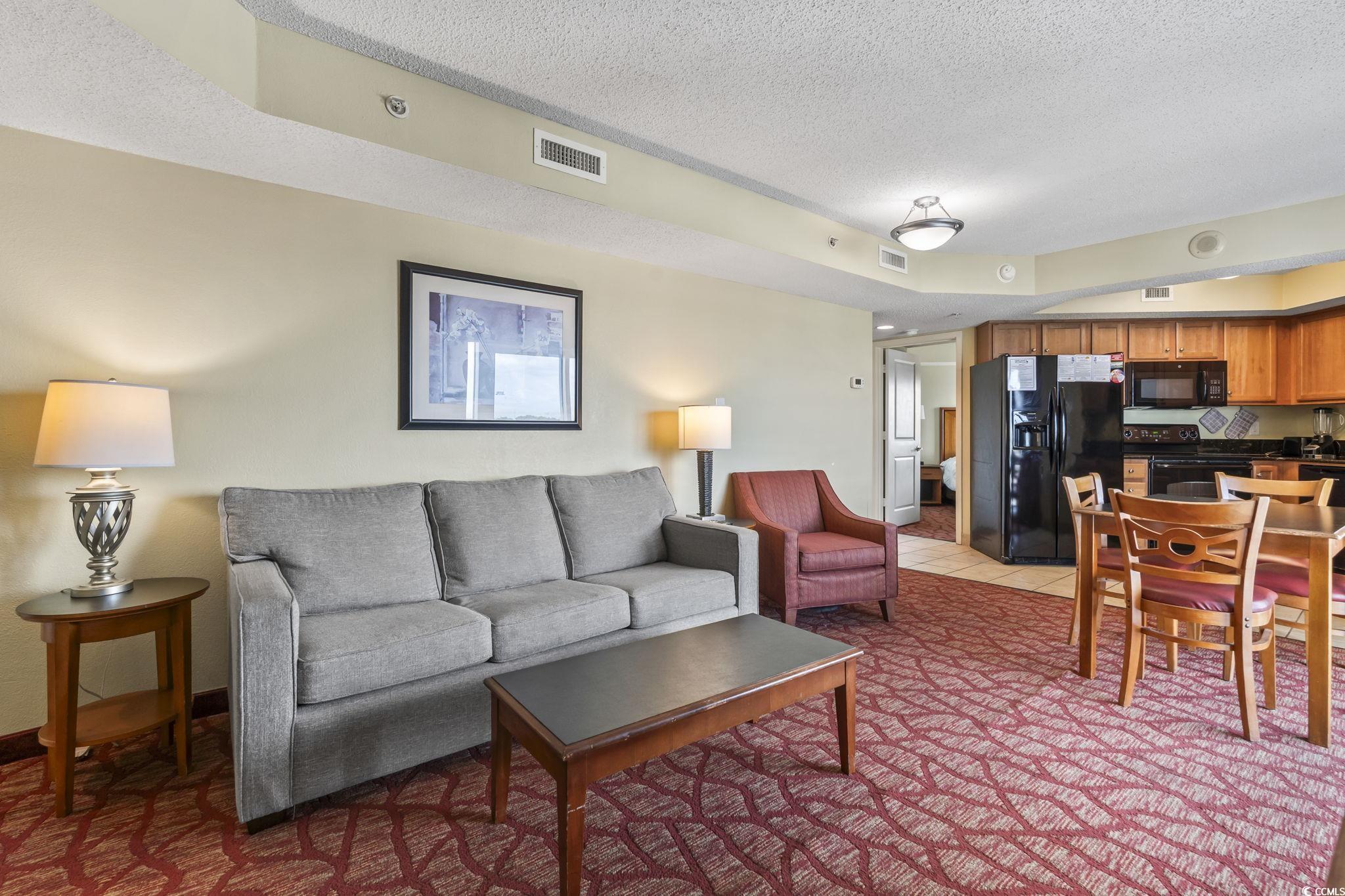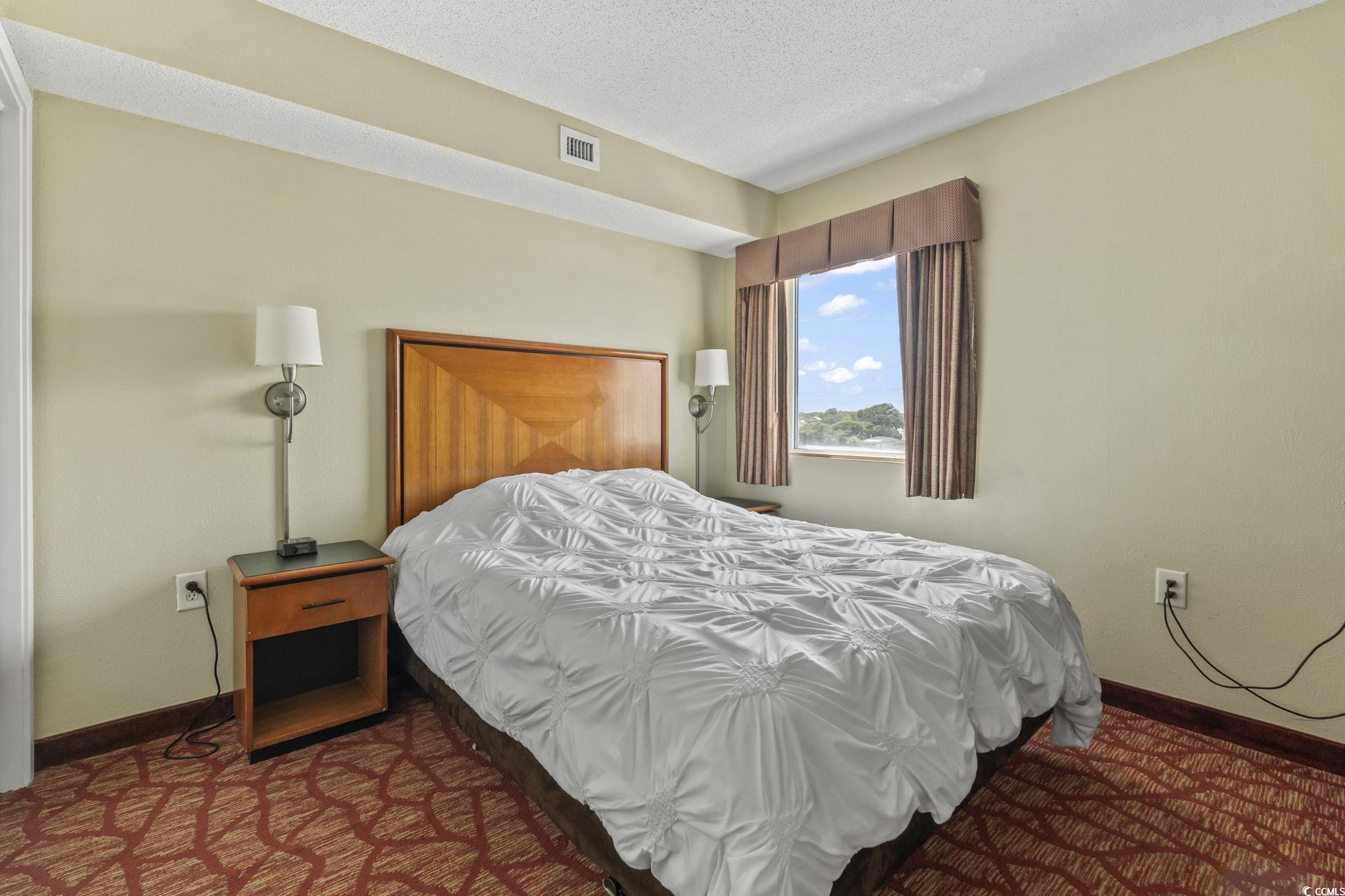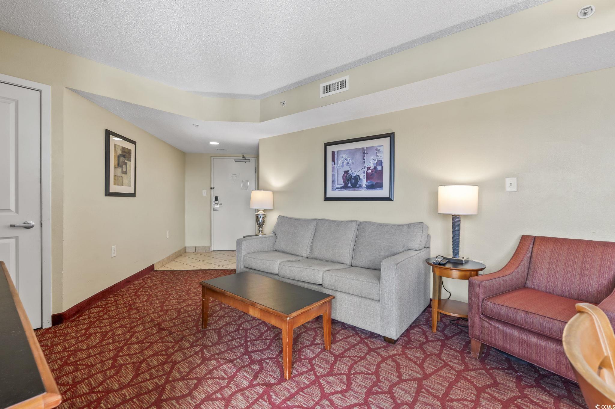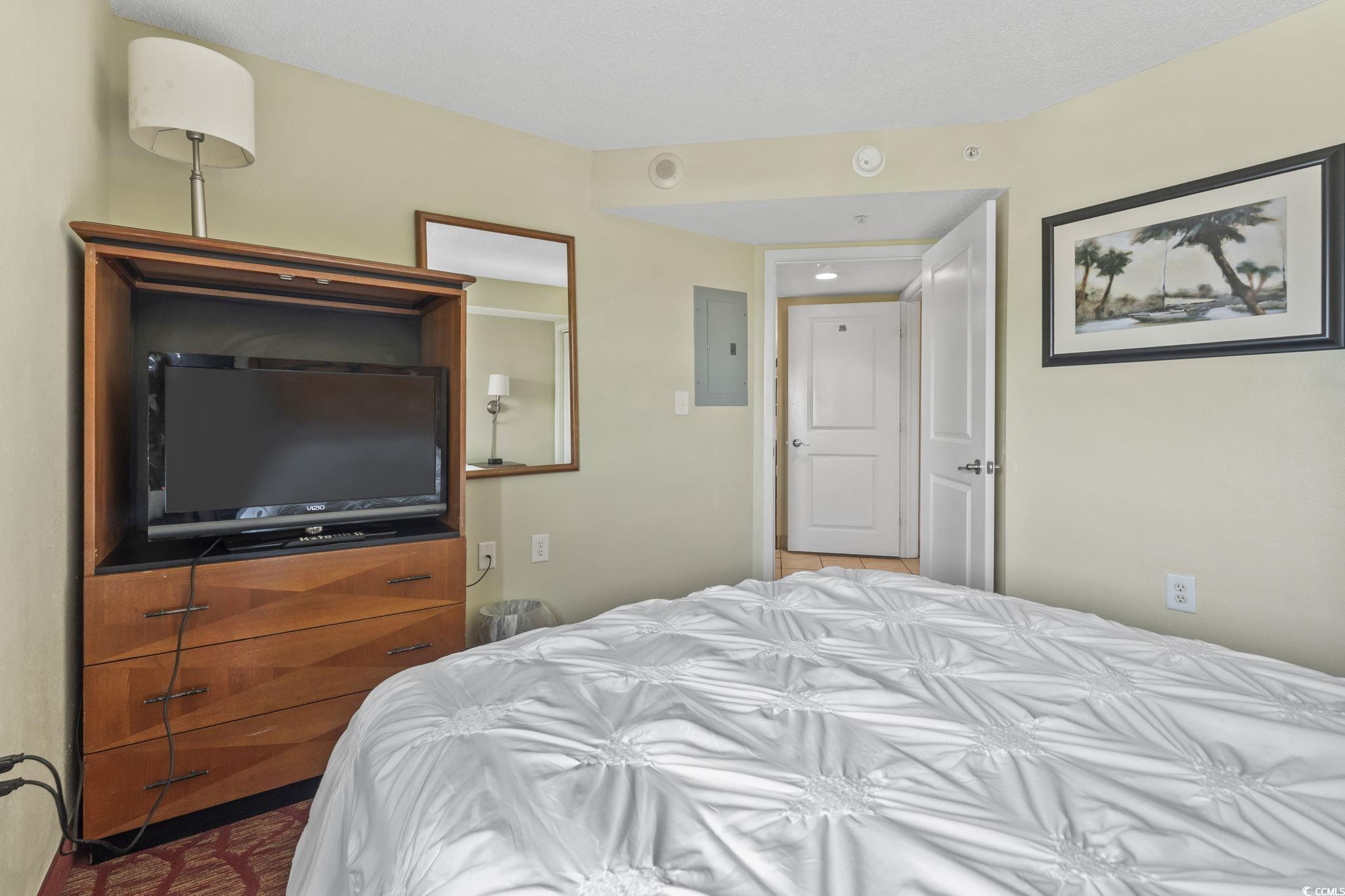 This fully furnished 1-bedroom condo on the 6th floor offers stunning views and a rare true one-bedroom layout, providing a private sleeping space separate from the living area. Stylish updates include flooring, Kitchen appliances, solid surface countertops, and modern appliances. The spacious living room opens to a private balcony with panoramic city and ocean views, perfect for enjoying evening sunsets. Whether you're seeking a personal beach getaway or a high-performing short-term rental, this turnkey unit is ready to go. Bay View Resort is located directly on the famous Myrtle Beach Boardwalk and features premium amenities such as an indoor pool, lazy river, hot tubs, fitness center, and an on-site Starbucks. Walk to attractions like the 2nd Avenue Pier, restaurants, shops, and summer festivals. Excellent rental income potential! Don't miss your chance to own in one of Myrtle Beach's most vibrant and walkable oceanfront locations!