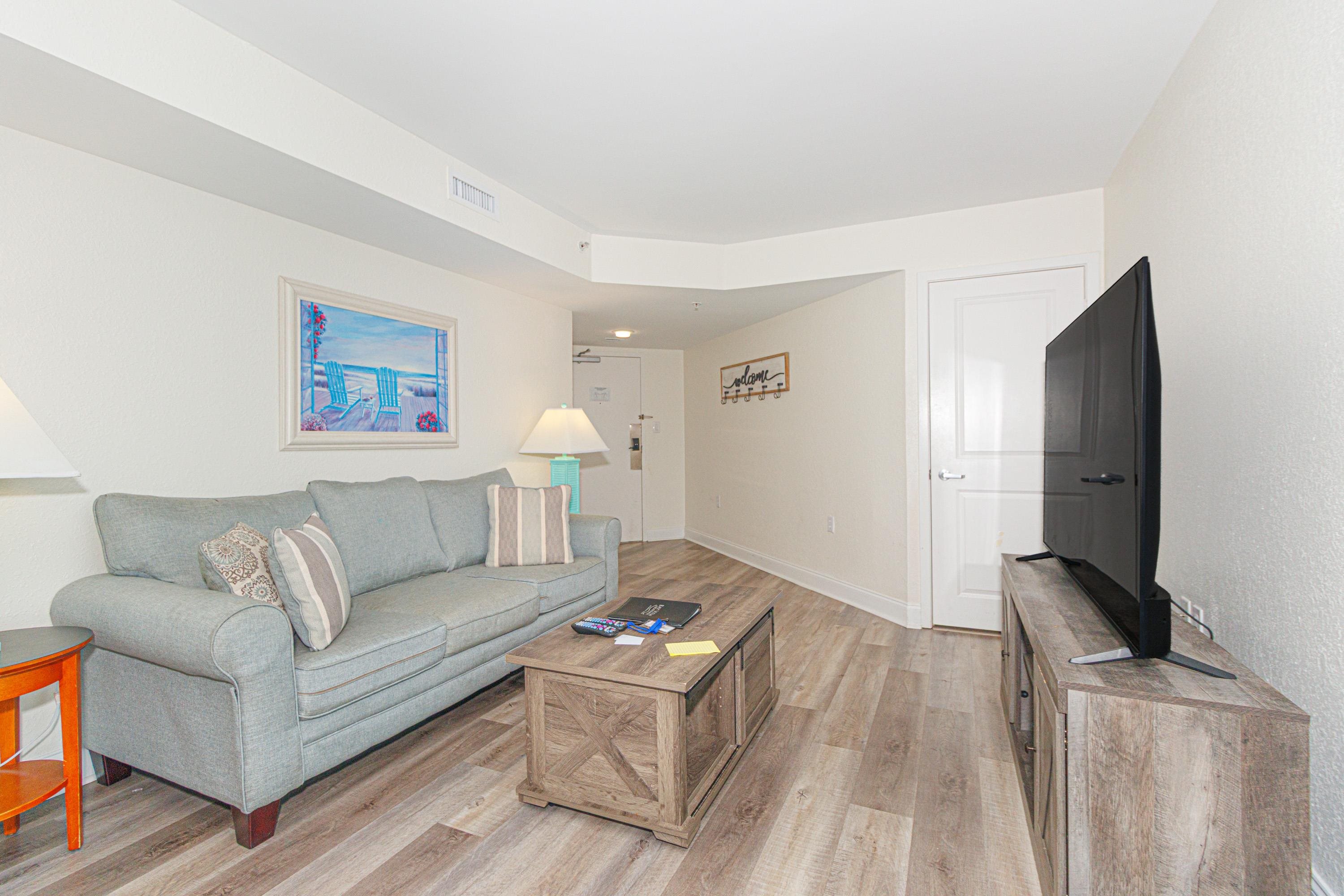 Well-priced and updated true 1-bedroom condo in the highly sought-after Bay View Resort. This inviting layout features a private, separate bedroom along with a spacious kitchen and living area, plus the convenience of a washer and dryer and central HVAC. Luxury vinyl plank flooring, stainless steel appliances, and smooth ceilings give the unit a modern feel, and it is being sold fully furnished and truly turnkey. Ideal as a primary residence in an oceanfront resort setting, a vacation getaway, or an income-producing rental. Bay View is one of the few condominium buildings located directly on the Myrtle Beach Boardwalk—step right from the pool deck onto the Boardwalk and into the heart of the city. Just moments from the 2nd Ave Pier, dining, entertainment, and everything Myrtle Beach has to offer.