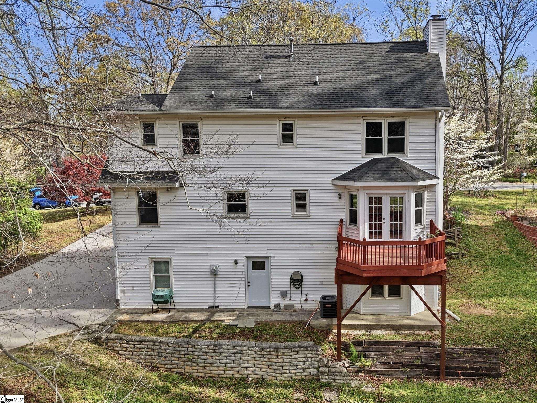 Welcome home to the perfect blend of charm, character, and thoughtful updates in the heart of Simpsonville! From the moment you arrive, you’ll be drawn in by the fabulous rocking chair front porch and eye-catching curb appeal, complete with tulip trees and hydrangeas that promise a stunning seasonal show. A long driveway offers plenty of parking and leads to the side entry 2 car garage. Step inside and feel instantly at home with decorative glass front door, hardwood floors, smooth high ceilings, and updated lighting through out that sets the tone. This home has been lovingly updated while preserving its original charm—giving you the best of both worlds. The bright kitchen features butcher block countertops, a stylish backsplash, white cabinetry, and a huge stainless steel sink overlooking the peaceful backyard. Just off the kitchen, the breakfast area showcases unique stained-glass-look windows for added privacy, and leads to a spacious walk-in laundry room with a utility sink and pantry. The dining room is filled with natural light from wall-length windows, while the living room offers a cozy tiled fireplace with subtle decorative details, expansive windows, and double doors that open to a deck overlooking the serene, park-like backyard. Upstairs, you’ll find all three bedrooms and two full beautifully updated bathrooms. The owner’s suite features an expansive bedroom and en-suite bathroom, a true retreat, featuring a luxury soaking tub, double sinks, separate walk-in shower, and a walk-in closet with custom shelving. One of the secondary bedrooms connects to an additional private large space currently used as an office, but could easily function as a second walk-in closet or flex area. And in the hall landing, don’t miss the updated attic stairs—a unique and functional feature you won’t see every day - check out the pics! The finished basement provides a versatile bonus/rec/flex space complete with its own fireplace—perfect for entertaining, relaxing, or creating a home gym or media room. Situated on 0.61 acres, the outdoor space includes a creek and mature trees set back from the house allowing plenty of green space for activites. You'll enjoy the peaceful soundtrack of birdsong and flowing water. Whether you're taking in the fall foliage or spring blooms, this is a yard you'll appreciate year round. Additional highlights include 2-car garage with pedestrian door, workshop/storage space, as well as an in-ground sprinkler system in the front yard. Tucked away on a cul-de-sac street with a relaxed HOA, this home is just down the road from community amenities including a park, playground, picnic shelter, fire pit, and Book Nook. Enjoy peaceful, country-style living while being less than a mile from Fairview Road’s shopping and dining, and under 3 miles from downtown Simpsonville. This home truly has it all—character, updates, space, and location. Come see it in person and fall in love!