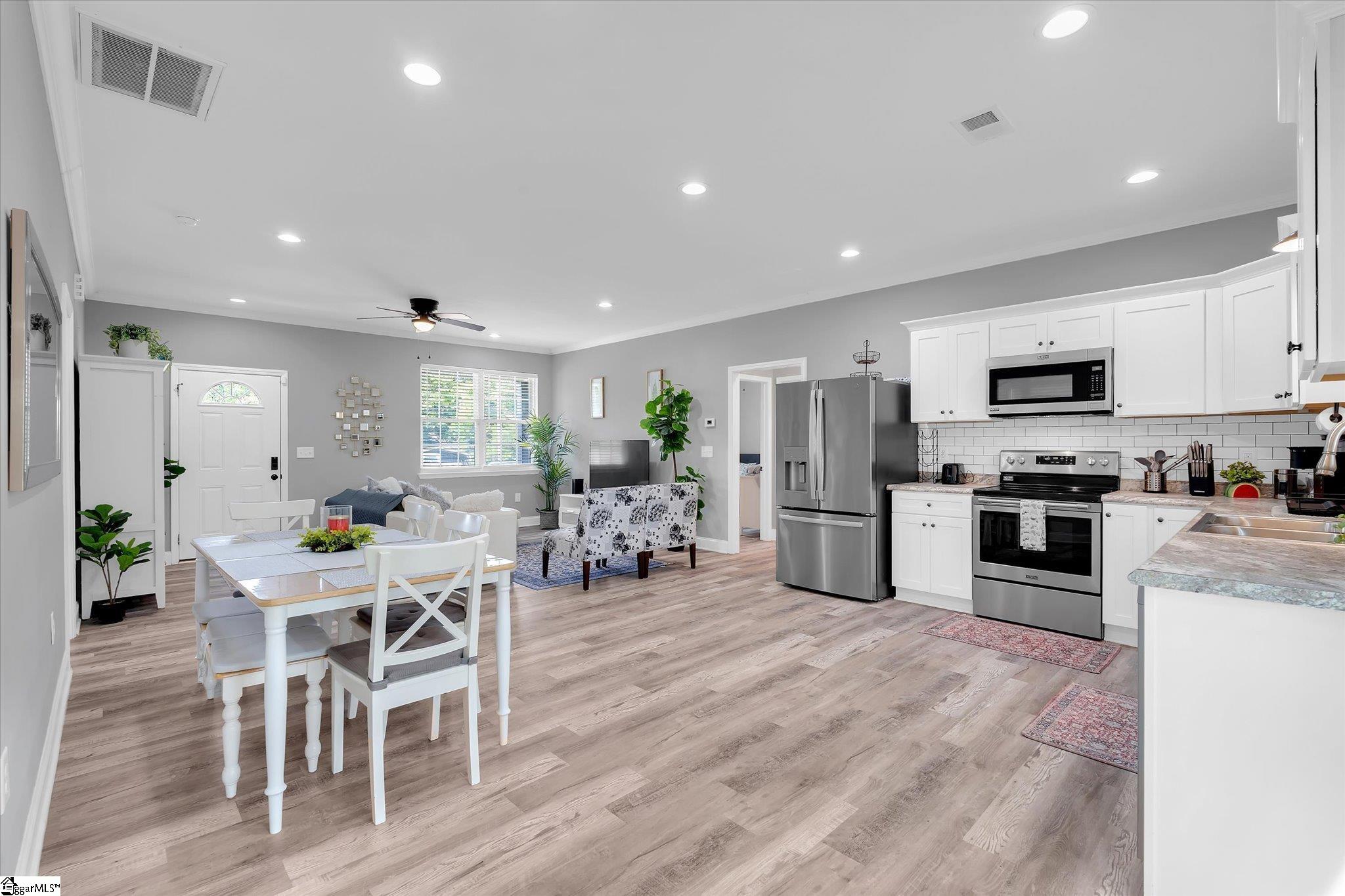 Looking for a Home without HOA or an Investment Home for Airbnb or Short Term Rental?? This modern 3-bedroom, 2-bath home sits on a spacious half-acre lot and is fully optimized for flexibility as a primary residence or income-producing short-term rental. The open-concept layout features luxury vinyl plank flooring throughout and a completely carpet-free design, making the home durable and low-maintenance, ideal for high guest turnover. The primary suite includes a large walk-in closet, dual sinks, and a relaxing private feel. A convenient side entrance leads directly into the laundry room, offering functional access for everyday living or guest use. Exterior finishes include stone veneer and vinyl siding, providing strong curb appeal with minimal upkeep. The fenced backyard enhances privacy and usability, featuring a gazebo, perfect for outdoor entertaining, a key driver for Airbnb guest satisfaction. With no HOA restrictions, this property provides added flexibility for short-term rental use. Its layout, finishes, and outdoor amenities make it a strong candidate for Airbnb or VRBO, while still serving perfectly as a full-time residence.