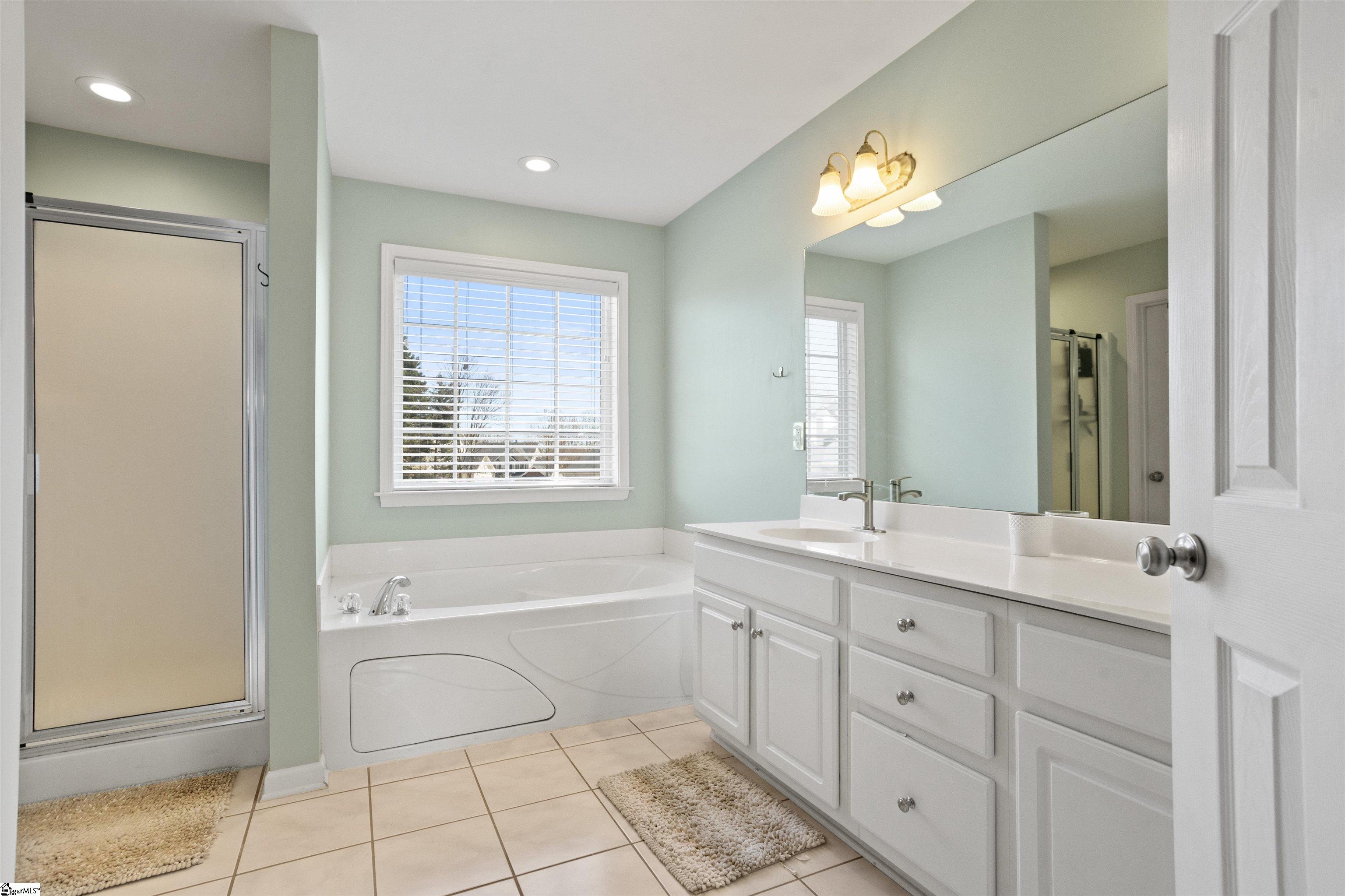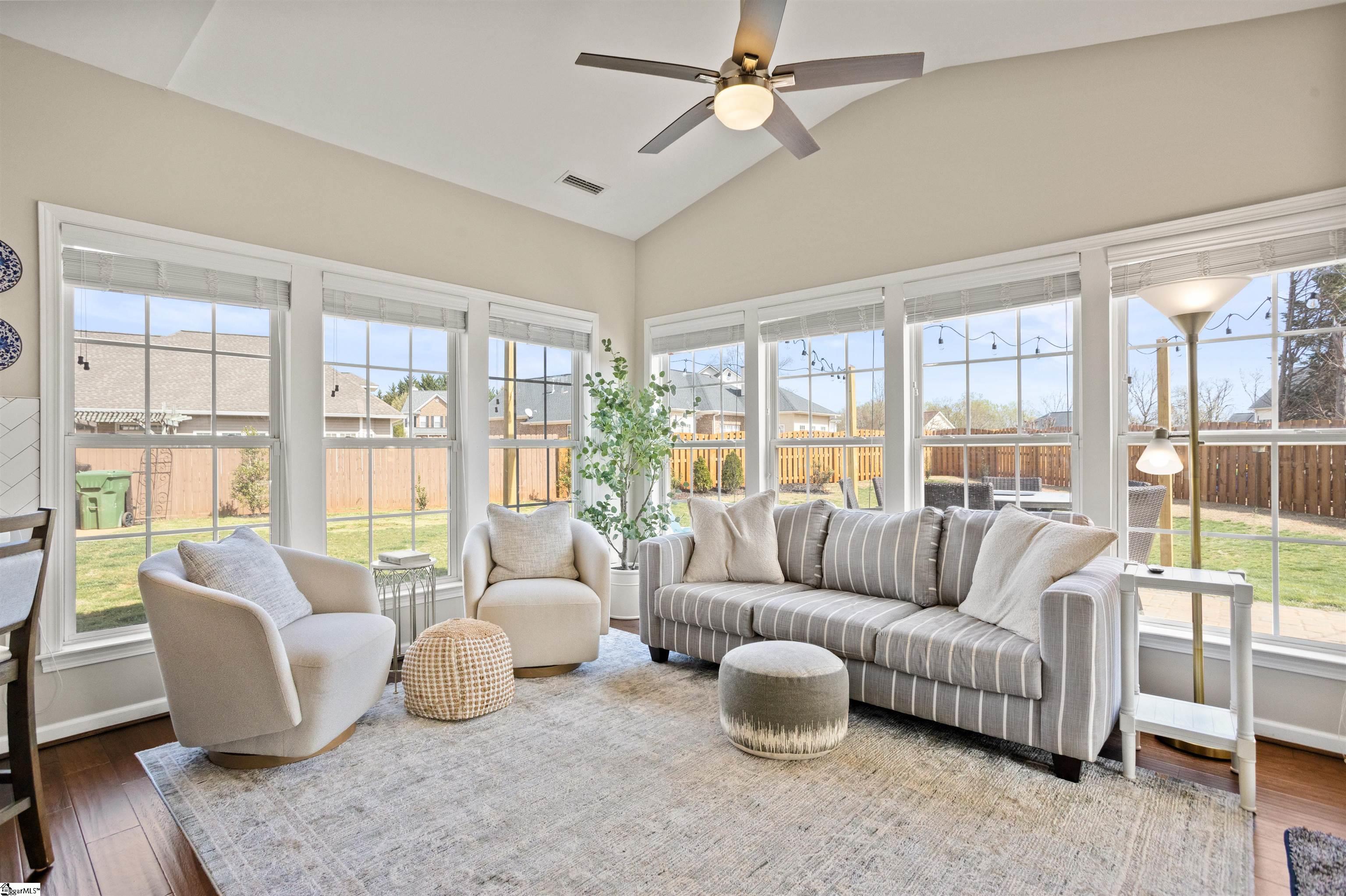 Located just minutes from downtown Greer and in the Riverside school district, this 4 bedroom, 2.5 bath home offers a really strong combination of location, livability, and meaningful updates. It is also in a neighborhood that people genuinely enjoy, with a great community pool, tennis courts, and walking trail that connects to the Greer Memorial Hospital walking path! The floor plan works so well for everyday living and entertaining, with hardwoods throughout the main level and a nice open flow between the kitchen, breakfast area, and living room. The kitchen has been updated with quartz countertops, stainless steel appliances, and a bright sitting area or breakfast nook. The dining room gives you a more defined space for hosting, while the living room gets great natural light and is anchored by a fireplace with a new mantle and surround. Upstairs, there are three bedrooms plus a bonus room that can absolutely function as a fourth bedroom, large office, or flex space depending on what someone needs. The sellers have also added new carpet upstairs, a new runner on the stairs, and Cat 5 wiring upstairs for improved connectivity. The backyard is one of the bigger highlights here. After Helene, several trees were removed, which opened the space up nicely. Since then, the sellers have added a new fence, new rear landscaping, an irrigation system, and a large paver patio with a covered gazebo area that makes the outdoor space far more usable and enjoyable. The primary suite offers plenty of space along with dual vanities, a separate shower, and a large tub. Altogether, this is a home that has been improved in the right places, in a convenient Greer location, and in a neighborhood with amenities that are hard to overlook.