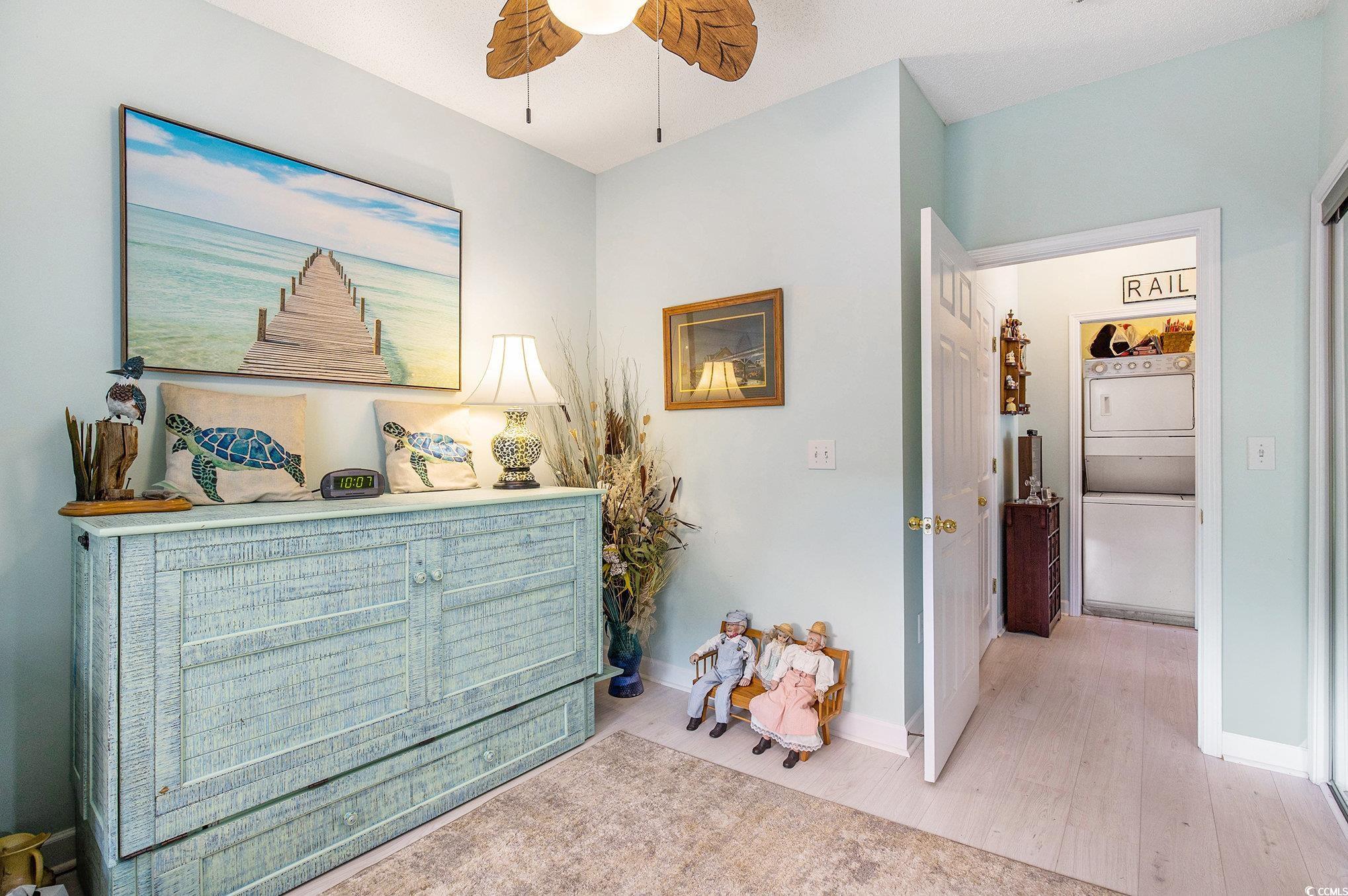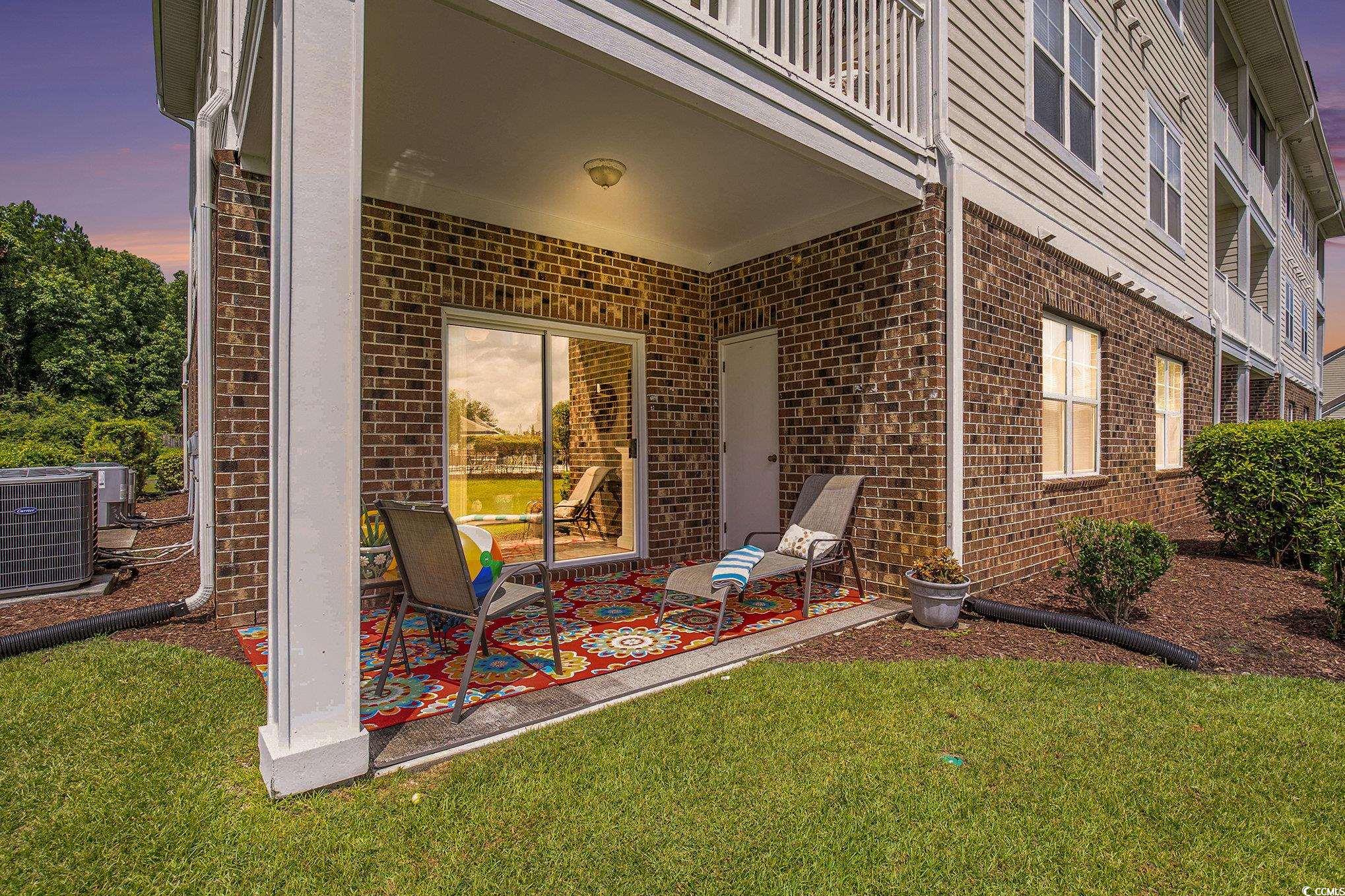 Discover this beautifully maintained 2-bedroom, 2-bathroom first-floor end unit condo located in the desirable Heatherstone community within Berkshire Forest. The unit features a tiled foyer that leads to a spacious kitchen situated at the front of the home, complete with a tiled floor, stainless steel stove and microwave (2020), dishwasher, and a convenient breakfast bar. The open-concept dining and living area showcases elegant crown molding and a ceiling fan (2020), with durable vinyl flooring running throughout the main living spaces. The owner's suite is privately located at the rear of the unit and offers a walk-in closet, an additional closet, a ceiling fan, and a tiled en-suite bathroom with a vanity and tub/shower combo. The guest bedroom and full guest bathroom are positioned at the front of the home for added privacy. Enjoy relaxing on the concrete patio accessed through sliding glass doors in the living room, offering peaceful pond views. Additional upgrades include a new HVAC system (2020), high-profile commodes in both bathrooms (2020), and a storm door added in 2024. A perfect blend of comfort, functionality, and serene surroundings. Enjoy being just minutes from local dining, shopping, parks,the beach is only a short drive away. Don’t miss out on this gem—schedule your showing today and see all it has to offer!
