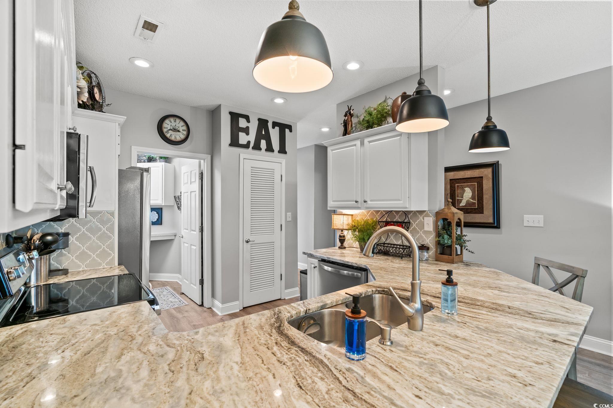 CONDO WITH A GARAGE! Gorgeous condo with a great floor plan that lives like a single family home. Bright and open with plenty of windows and has been updated with HVAC, Granite Countertops, Backsplash, Appliances, LVP Flooring, Lighting, Paint, Plumbing Fixtures, and more. Huge 12x16 screened porch with added EZ Breeze Windows and overlooks tranquil pond with fountain. Corner unit only has one common wall and is on the 2nd floor with no one above. Attached 12'x21' garage plus has an additional assigned parking space and guest parking too. Gated community with plenty of shopping, grocery store, restaurants, outlet mall, and Planet Fitness nearby. Owner is a decorator and it shows with every beautiful detail. This is a great place and a must-see! HOA dues include full homeowners insurance, security gate, cable, wifi, lawn care, monthly pest control, pool and cabana, exterior building maintenance, garbage pickup, powerwashing, gutter cleaning, dryer vents cleaned, and more.