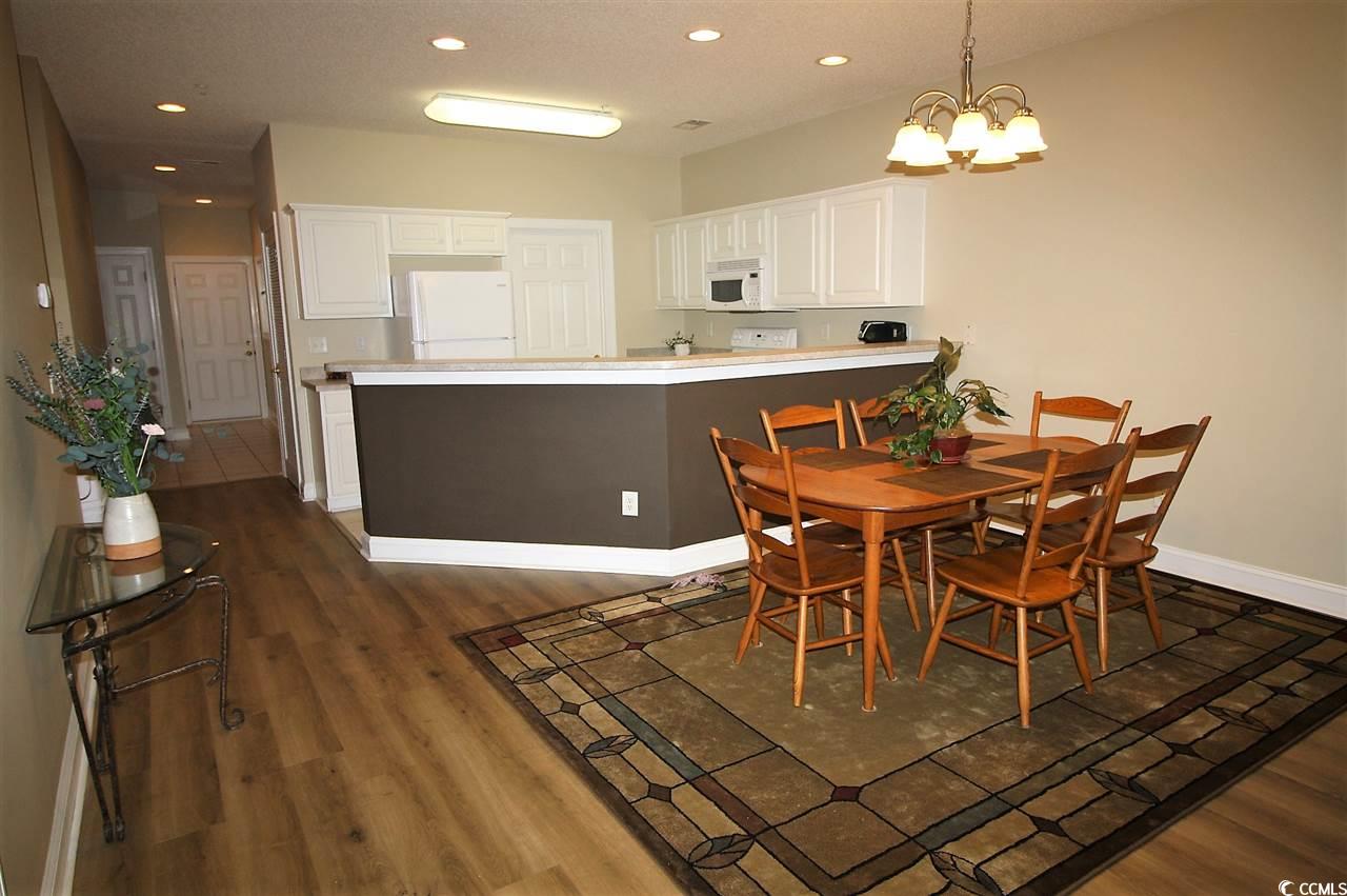Spacious First floor 3 Bedroom, 2.5 Bath w/Carolina Room and 1-Car Garage overlooking golf course in gated community. New vinyl flooring in the great room. Spacious Master bedroom is separate from the other 2 bedrooms. It has a large walk-in closet, private access to the Carolina Room, double vanity sink and shower. The other 2 bedrooms have a Jack and Jill Bath. There is also a half bath. Dining area and kitchen bar, pantry, and spacious laundry room. All appliances convey. You can enjoy the finished Carolina Room with ceramic tile and real glass windows all year long. 1-Car Garage is attached to the unit and also has a storage closet. This is one of THE Most spacious condo floorplans you will find along the Grand Strand. Community is just minutes to restaurants, grocery stores, hospital, fitness center, & more.