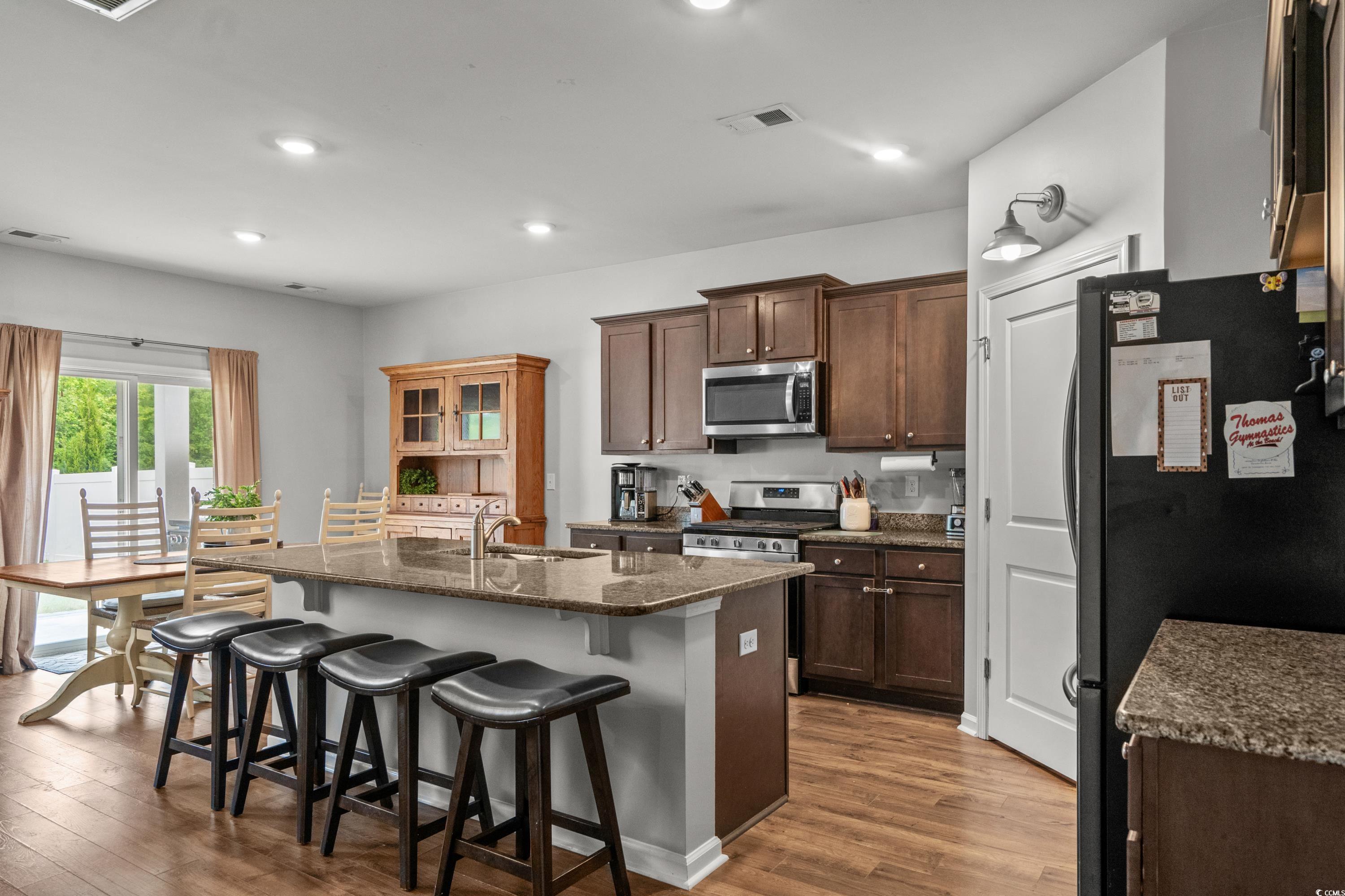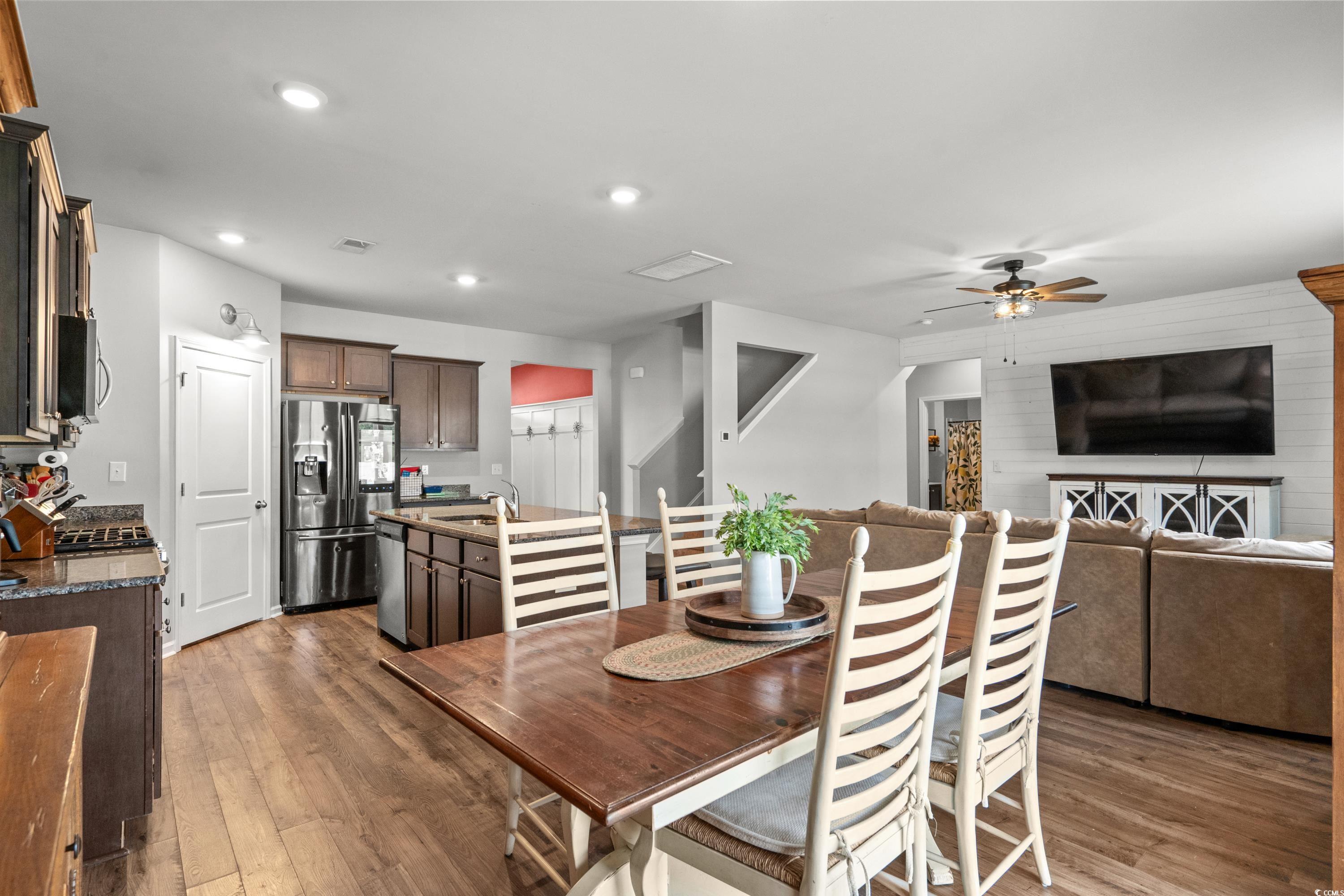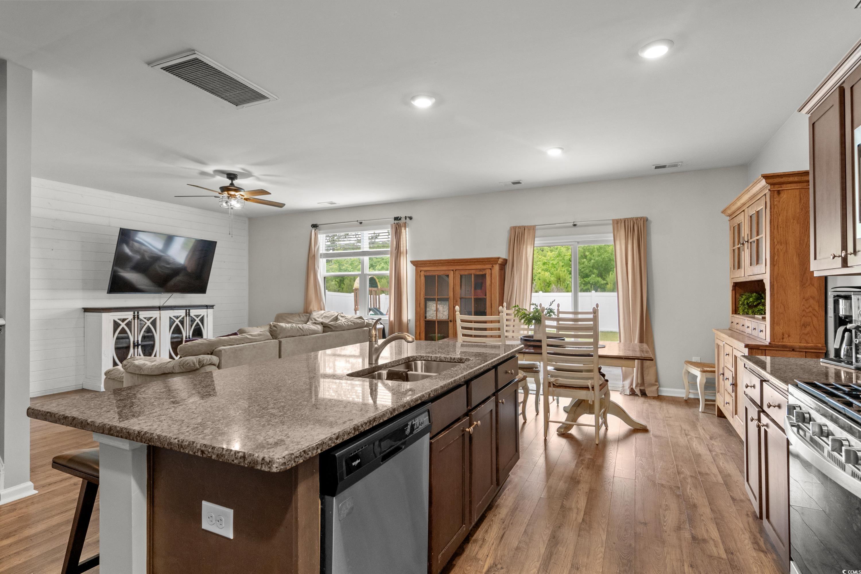 OPEN HOUSE: Sun 11/9 from 1-3PM. This beautiful traditional 2 story home has it all and is conveniently located in The Parks at Carolina Forest! This home contains 5 spacious bedrooms and 3 full bathrooms with a bonus flex room on the second floor. As you enter the home you are greeted with a large, well designed open floor plan that has plenty of space for the whole family to enjoy. The kitchen contains sleek granite countertops and stainless steel appliances and an oversized pantry with plenty of storage space. The kitchen opens elegantly into the dining room/ spacious living room space. In addition, there is a formal dining room / additional flex place on the first floor. Great for entertaining all! The home contains durable LVP floors throughout the first floor main living spaces and comfortable carpeting on the second floor. There is 1 bedroom and a full bathroom on the first floor. The remaining 4 bedrooms and 2 full bathrooms are located on the second floor. The oversized fenced in yard backs up to a private wood line which is an additional bonus. It has plenty of space to add a pool, garden, etc. This home is situated just minutes to the beach, top local restaurants and has easy access to Highway 31 and 17 where you can be in North Myrtle Beach or Murrells Inlet in just a few short minutes. The Parks at Carolina forest has amazing amenities including an exercise fitness center, pool, indoor pickleball court, fire pit and playground. Schedule an appointment today!
