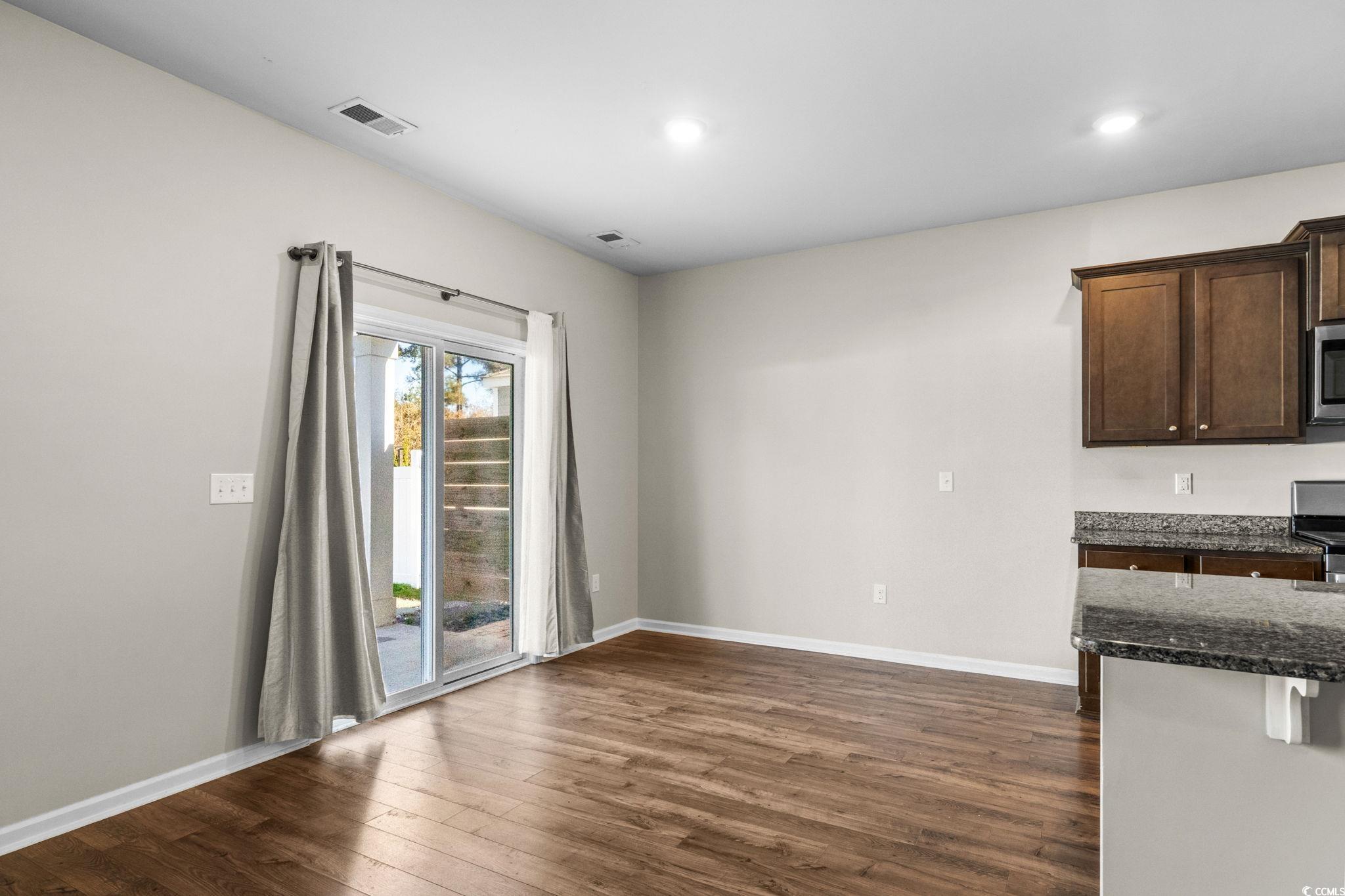 Two-Story Contemporary Home in the Desirable Parks at Carolina Forest Experience refined living in this stunning two-story contemporary home featuring 5 spacious bedrooms, 3 full bathrooms, and a versatile bonus room. The open-concept floor plan is perfect for entertaining, with a chef-inspired kitchen boasting granite countertops, stainless steel appliances, and an oversized pantry flowing seamlessly into the dining and living areas. A formal dining room or first-floor lifestyle space adds flexibility for a home office, lounge, or creative retreat. Enjoy comfort and convenience with luxury vinyl plank flooring on the main level, plush carpeting upstairs, and a first-floor guest suite with a full bathroom. Upstairs, four bedrooms, two full bathrooms, and an inviting bonus area provide the ideal setting for a media room, play space, or home lounge. The oversized, fully fenced backyard backs to a private wooded area and includes an outdoor shower, perfect for rinsing off after beach days or yard activities. Minutes from the beach, premier dining, and shopping, with easy access to Highways 31 and 17, this home offers resort-style amenities including a fitness center, pool, indoor pickleball court, fire pit, and playground. Schedule your private showing today and embrace elevated, resort-inspired living!