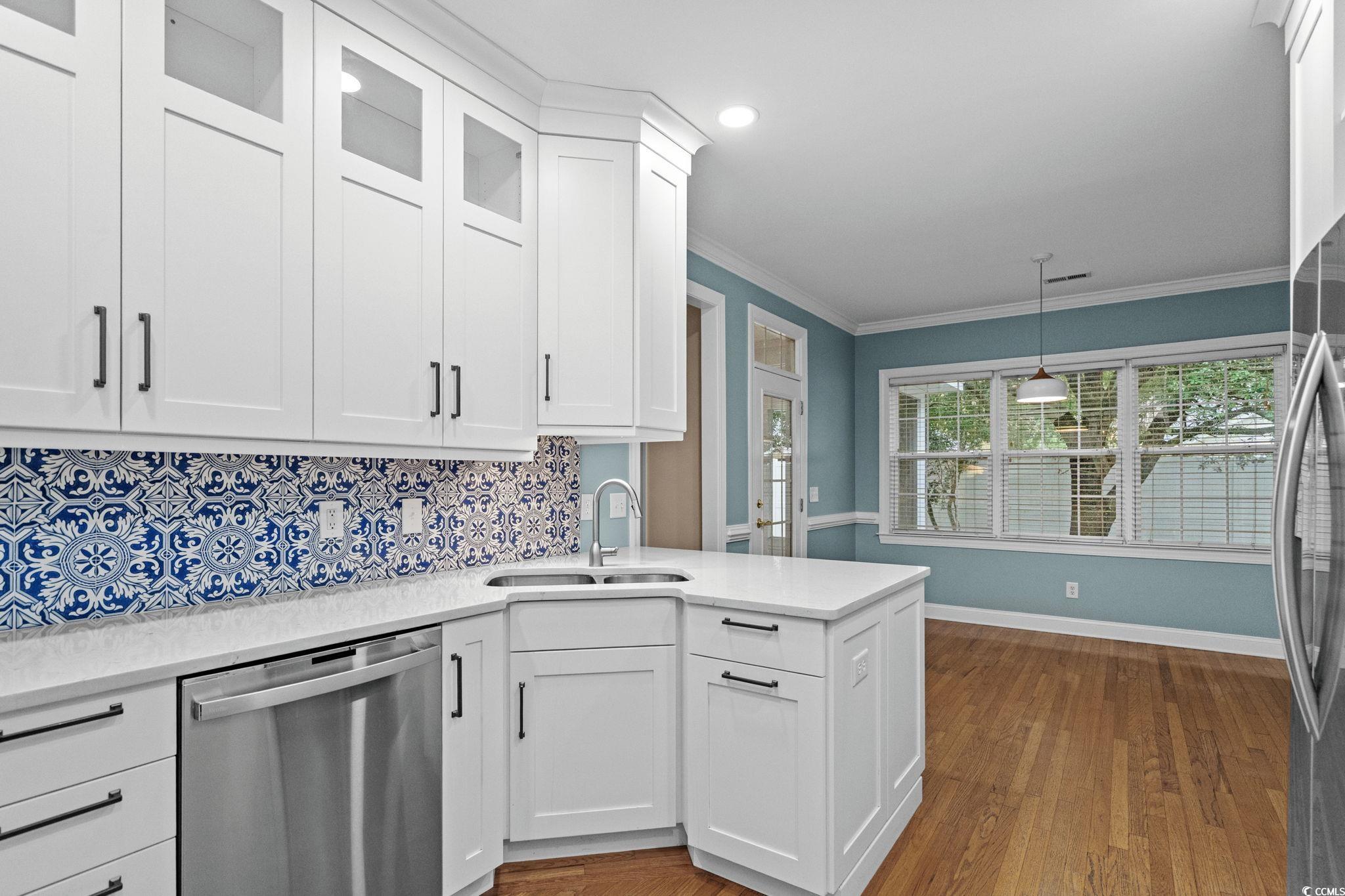 Your Hidden Gem Awaits! Surrounded by towering live oaks, this Plantation Oaks home offers Southern charm, privacy, and plenty of room to relax or entertain. The traditional layout features spacious living areas, dream kitchen with custom cabinets and upgraded appliances a large screened porch with vaulted ceiling, hot tub, and a split bedroom plan for comfort and convenience. The oversized garage includes a workshop, while the extended driveway provides space for a boat, trailer, or RV. Tucked away on a peaceful cul-de-sac, yet just minutes from the Murrells Inlet Marsh Walk, Waccamaw River, Wache Wache Marina, Huntington State Beach Park and local golf courses—this home brings the best of Lowcountry living right to your doorstep. Come make it yours in time for the holidays - arrange a tour today!