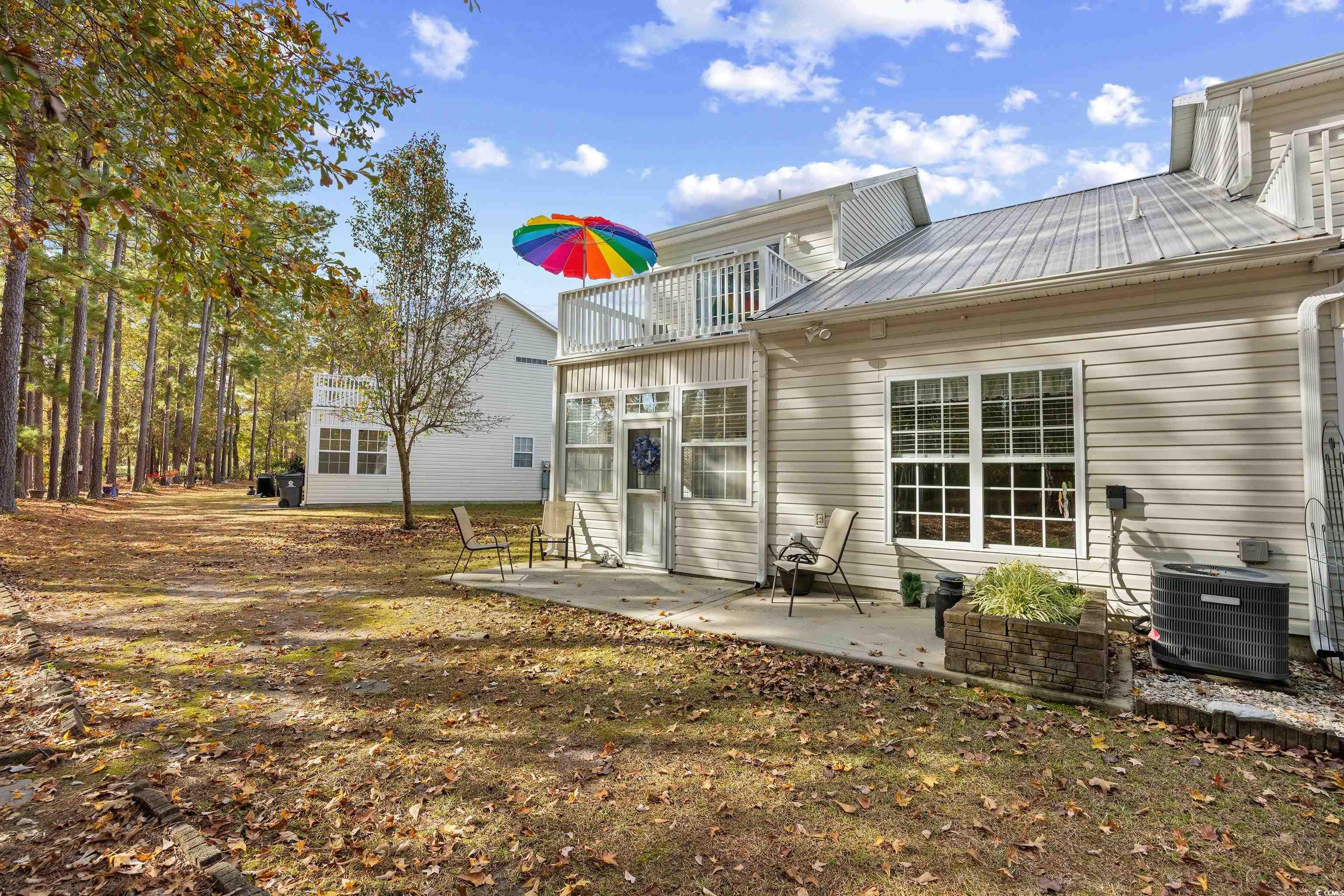 End unit Townhome-Condo in Colonial Trace ready for a new owner; is that you? Park under your carport and enter to a tile foyer looking back to the living room. Primary bedroom and bath are on the left. Bedroom is light and bright and has a nicely appointed bath with a laundry closet. Kitchen is galley style, has a pantry, and opening to dining room letting in more light. The sale conveys all kitchen appliances and the washer and dryer. Wood flooring in living and dining add too the bright open space. Covered enclosed sun porch off dining room overlooks neighborhood pond. Upstairs are 2 bedrooms with a shared bath. One bedroom has a balcony overlooking the pond and golf course. There is great storage with a room off the carport, and a nice size storage room at the top of the stairs.