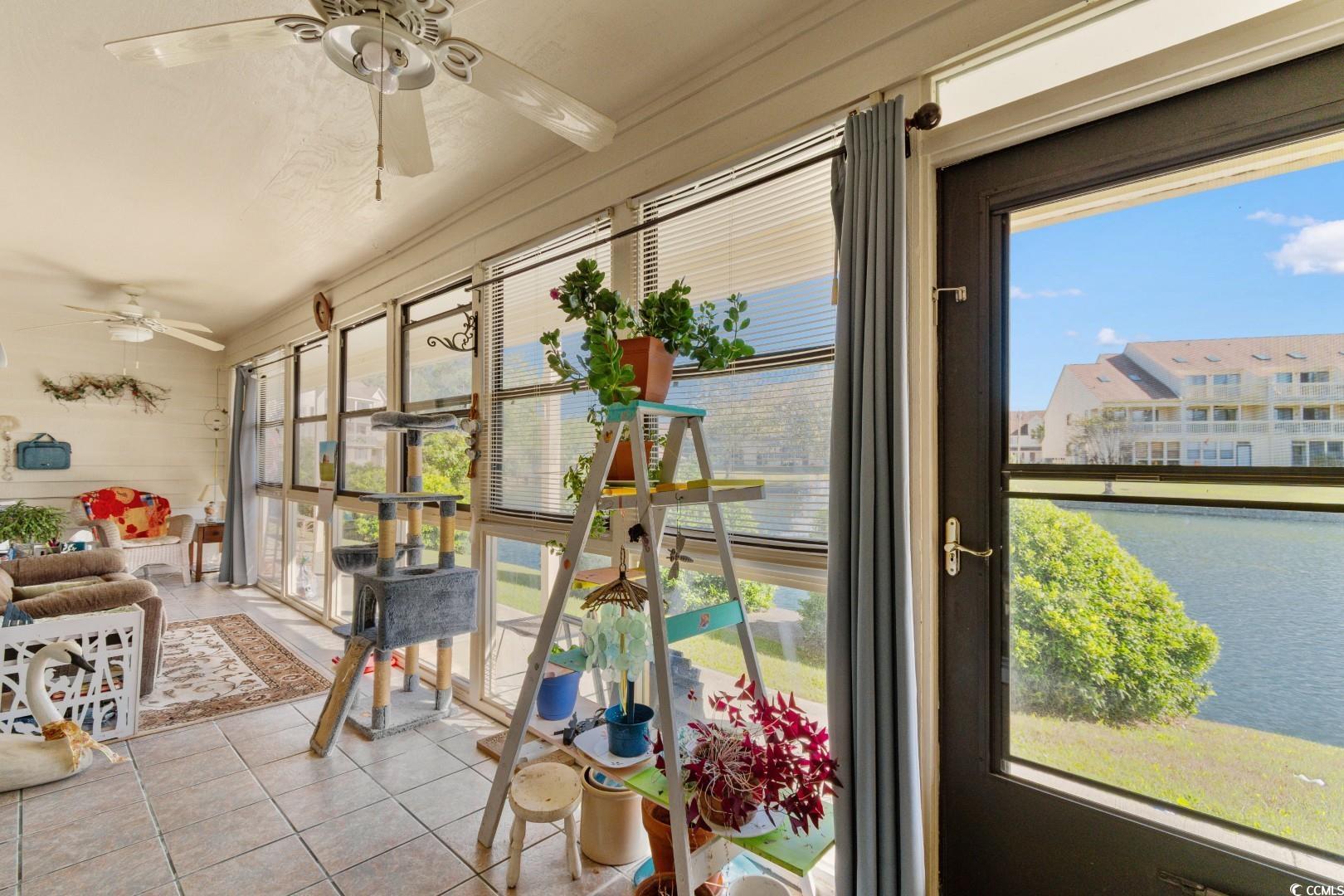 Discover the perfect blend of tranquility and convenience in this 2-bedroom, 2-bath ground-floor condo. Your private oasis begins with breathtaking water views that greet you from the moment you step inside. The highlight is a stunning four-seasons sunroom, enclosed by a wall of easy-clean, tilt-in windows, creating a sun-drenched space you can enjoy year-round. Imagine sipping your morning coffee while watching herons and egrets gracefully descend upon the shimmering lake, with the charming gazebo and fountain as your backdrop. The interior is bright, airy, and designed for effortless living. Peace of mind comes standard with a brand-new HVAC system and a new garbage disposal. The thoughtfully designed kitchen features clever pull-down compartments at the sink for tidy storage. This home offers versatile comfort with two distinct full bathrooms: one featuring a relaxing shower/bath combination, and the other a convenient and accessible sit-down shower. Being sold mostly furnished, this turnkey property is ready for you to start living the dream. The sparkling community pool is located just steps from your front door, and resort-style amenities include a community barbecue area perfect for entertaining. With the community's road resurfacing project nearing completion, your drive into the beautiful Island Green will be as smooth as the lifestyle. Experience coastal living without the crowds, your peaceful retreat is ready for you!