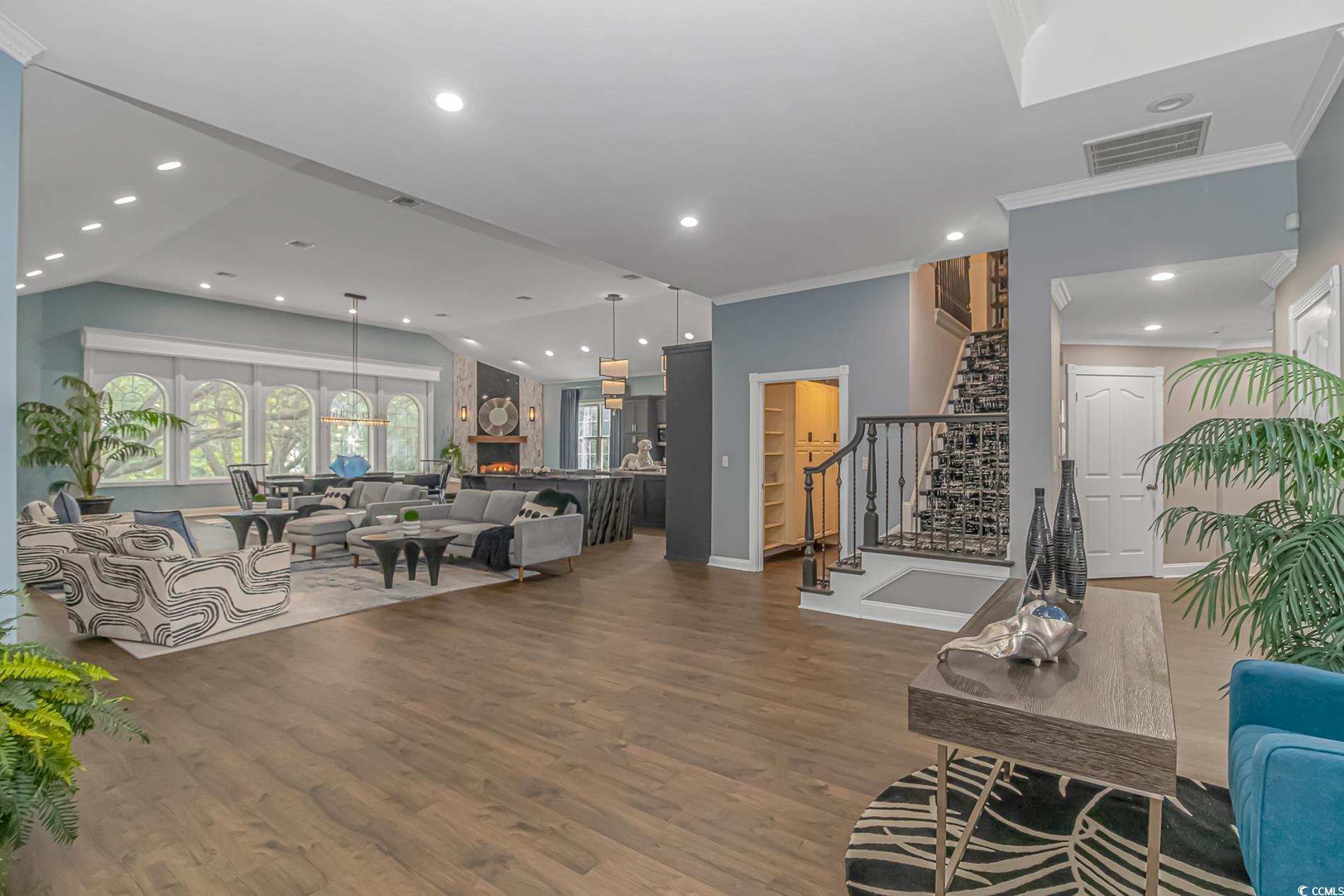 Tucked away in one of Murrells Inlet’s most desirable waterfront communities of Mt. Gilead, this beautifully renovated six-bedroom, five-and-a-half-bath home offers the rare combination of space, sophistication, and direct access to the inlet and ocean beyond. Complete with its own private dock, the property is ideal for boating, kayaking, fishing, or simply enjoying life on the water. Spanning over 10,000 covered square feet across three thoughtfully designed levels, the home balances comfort with elegance. The entry level welcomes you with a formal foyer and opens into an inviting entertainment area, complete with a custom bar and billiards room. A spacious bedroom and full bath on this floor provide a private retreat for guests or in-laws. On the main level, an open-concept layout connects the chef’s kitchen, dining area, and living room, creating an inviting space for both daily living and entertaining. The primary suite features a luxurious en-suite bathroom with spa-like details and dual walk-in closets. Two additional bedrooms on this floor provide flexibility for family or office space. The third level includes two more bedrooms, each with their own private bathrooms, along with a versatile bonus room that can be used as a media room, game space, or additional lounge. Year-round relaxation is made possible with an indoor pool and jacuzzi, while a screened-in porch provides a peaceful escape complete with a koi pond, waterfall, and firepit. Additional highlights include a 4-car garage with an oversized bay for boat storage, a full-home generator, elevator, and a secure panic room for peace of mind. Located in the sought-after St. James School District and close to Murrells Inlet’s best dining and waterfront attractions, this home is a must see!