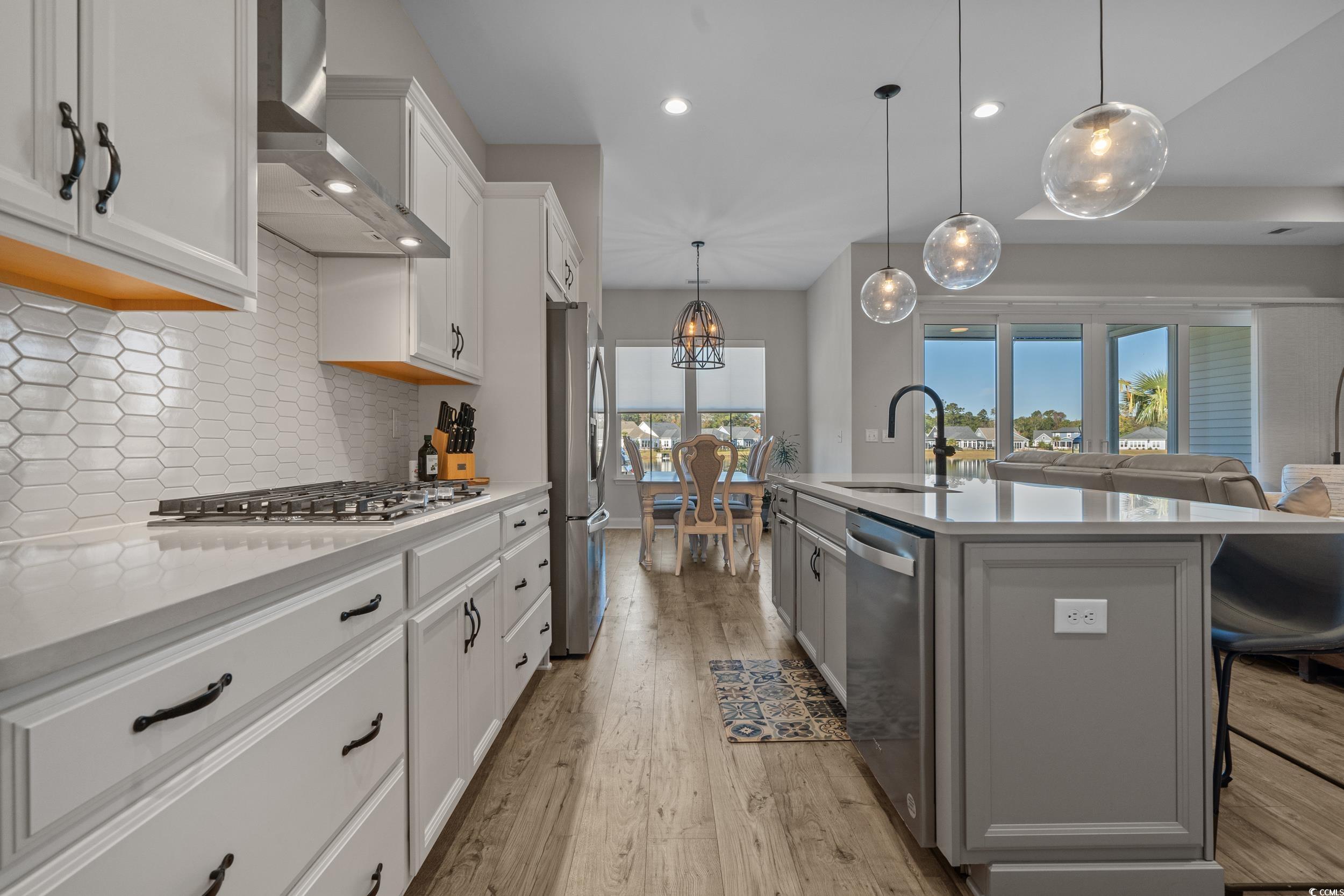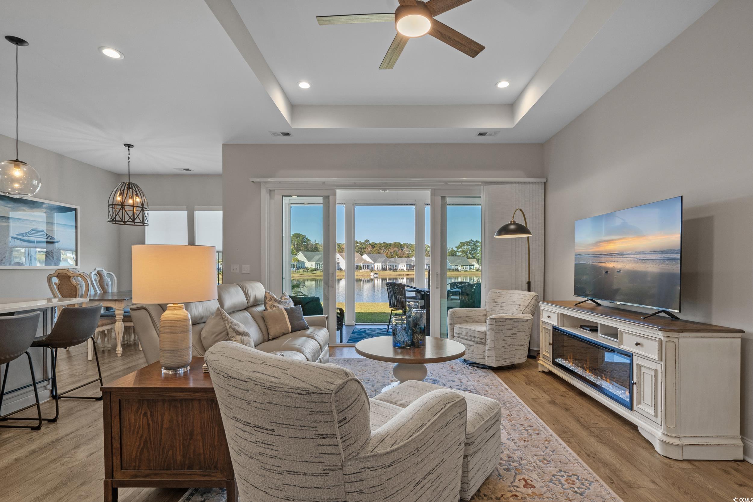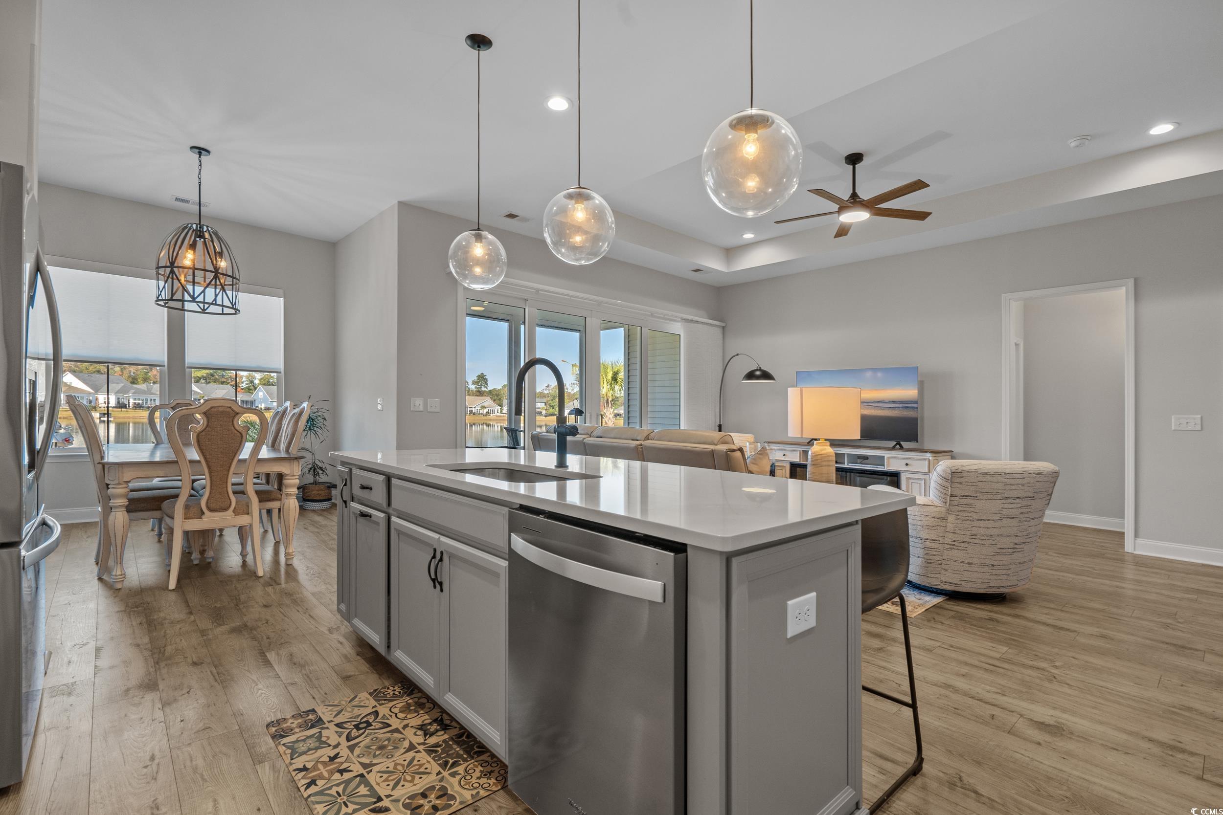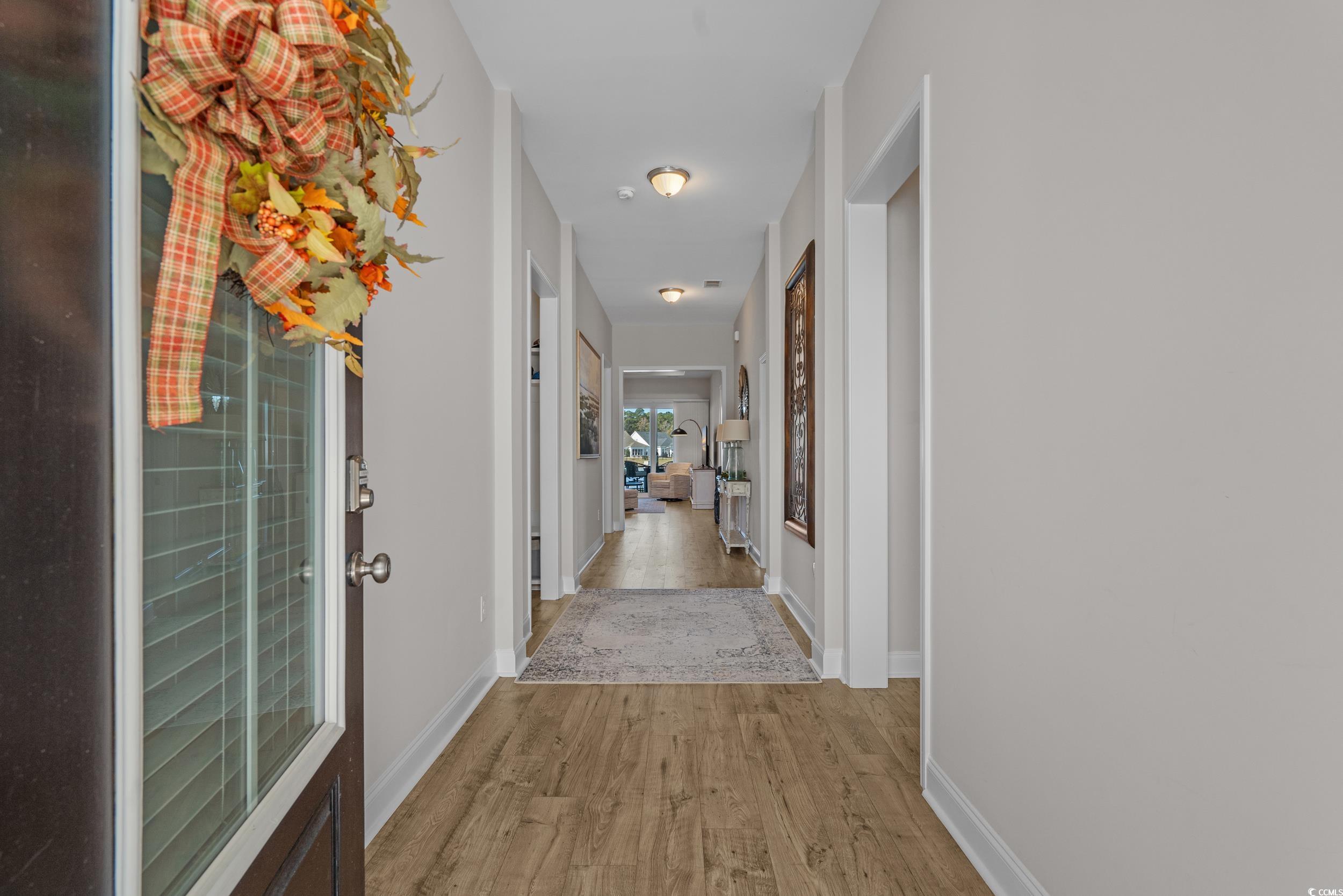 Welcome to this stunning 2023-built, single-story 4-bedroom, 2.5-bath home perfectly positioned on a beautiful lake lot, where serene water views greet you the moment you open the door and look straight down the impressive hallway framed by massive glass sliding doors. This thoughtfully designed home features an open-concept layout with soaring ceilings that seamlessly connect the main living spaces, creating an inviting and airy feel throughout. The chef’s kitchen is a true showstopper, boasting a massive island, natural gas cooking, and the ideal setup for both everyday living and entertaining. The front two bedrooms are connected by a convenient Jack-and-Jill bathroom, while the spacious primary suite offers a retreat of its own with double sinks, a large walk-in closet, and a beautifully tiled shower. Nestled in the heart of Murrells Inlet, this home delivers the laid-back coastal lifestyle you’ve been dreaming of—just minutes from the famous MarshWalk where dining, shopping, and endless boat watching await.