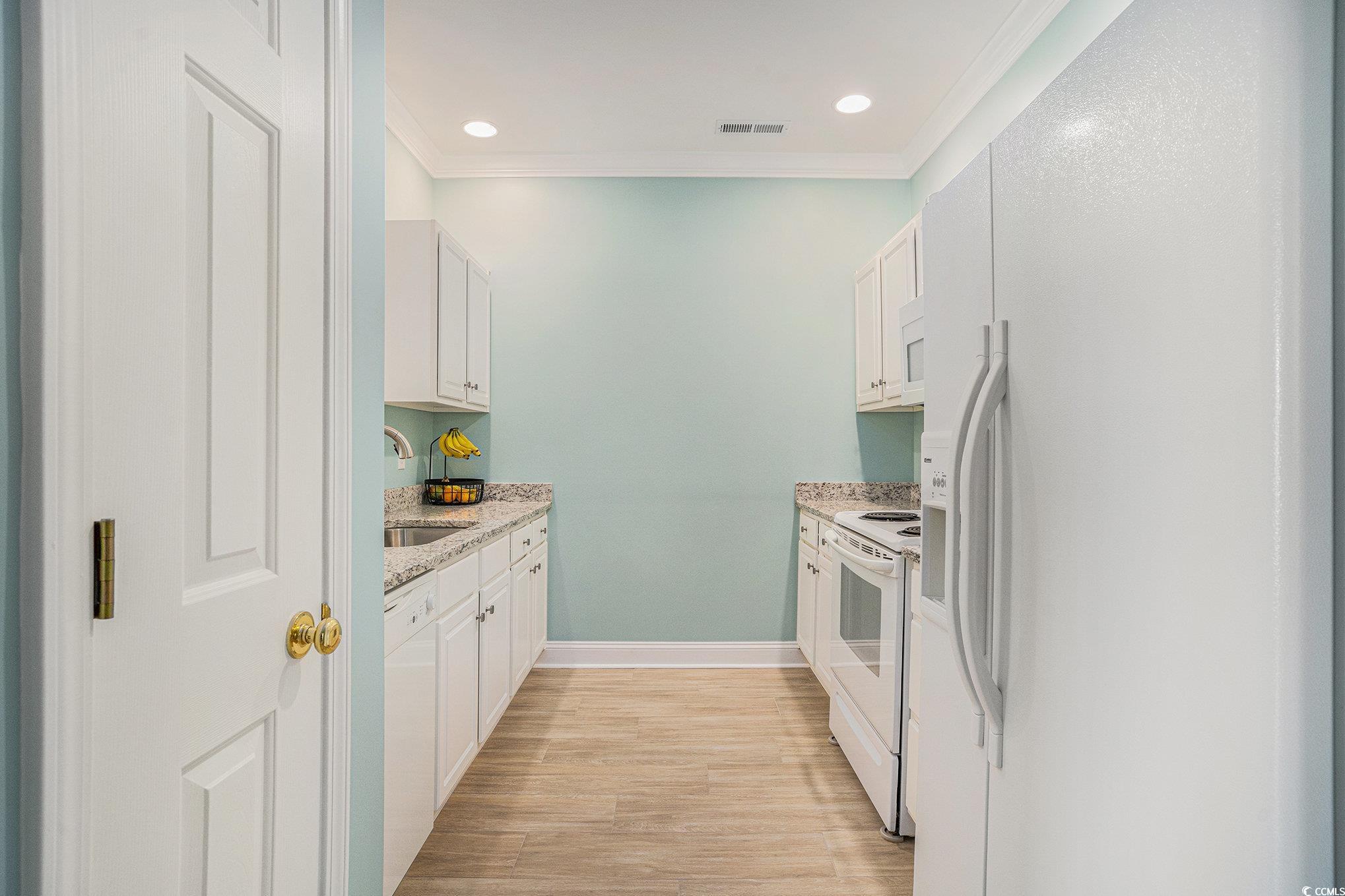 Welcome home! This lovely 3 bedroom, 2 1/2 bath condo is a perfect place to call home. Located less than 8 miles from Cherry Grove Pier and just steps away from Colonial Charter Golf Course, this move-in ready home is spacious, full of light and has been extensively renovated for both beauty and comfort. Park under your large covered carport and enter through the front door to find the entire home is painted in a serene shade of blue with beautiful crown molding and baseboards. New flooring throughout the home features porcelain tile in a neutral shade. To the left is the primary suite with large windows for plenty of light. You will find two large closets and the new washer and dryer. In the master bathroom you will find a double sink vanity with quartz countertops and a large double shower with tile and natural pebble and also a powder room with pocket door for privacy. There are closets and storage everywhere in this home. The kitchen is outfitted with new granite countertops and an extra deep sink. The Carolina room has been completely renovated with cedar shiplap, new tile and beautiful french doors that lead you outside to a wonderful golf course view. The living room provides comfortable furnishings, and a new 65in television. Going upstairs features new carpet for the stairway and updated light fixture. The upstairs bathroom is updated with new vanity and flooring. The two bedrooms upstairs have lots of storage space, new flooring and a balcony that has been totally renovated with a golf course view. There is an additional storage closet on the carport. You do not want to miss this impeccable home.
