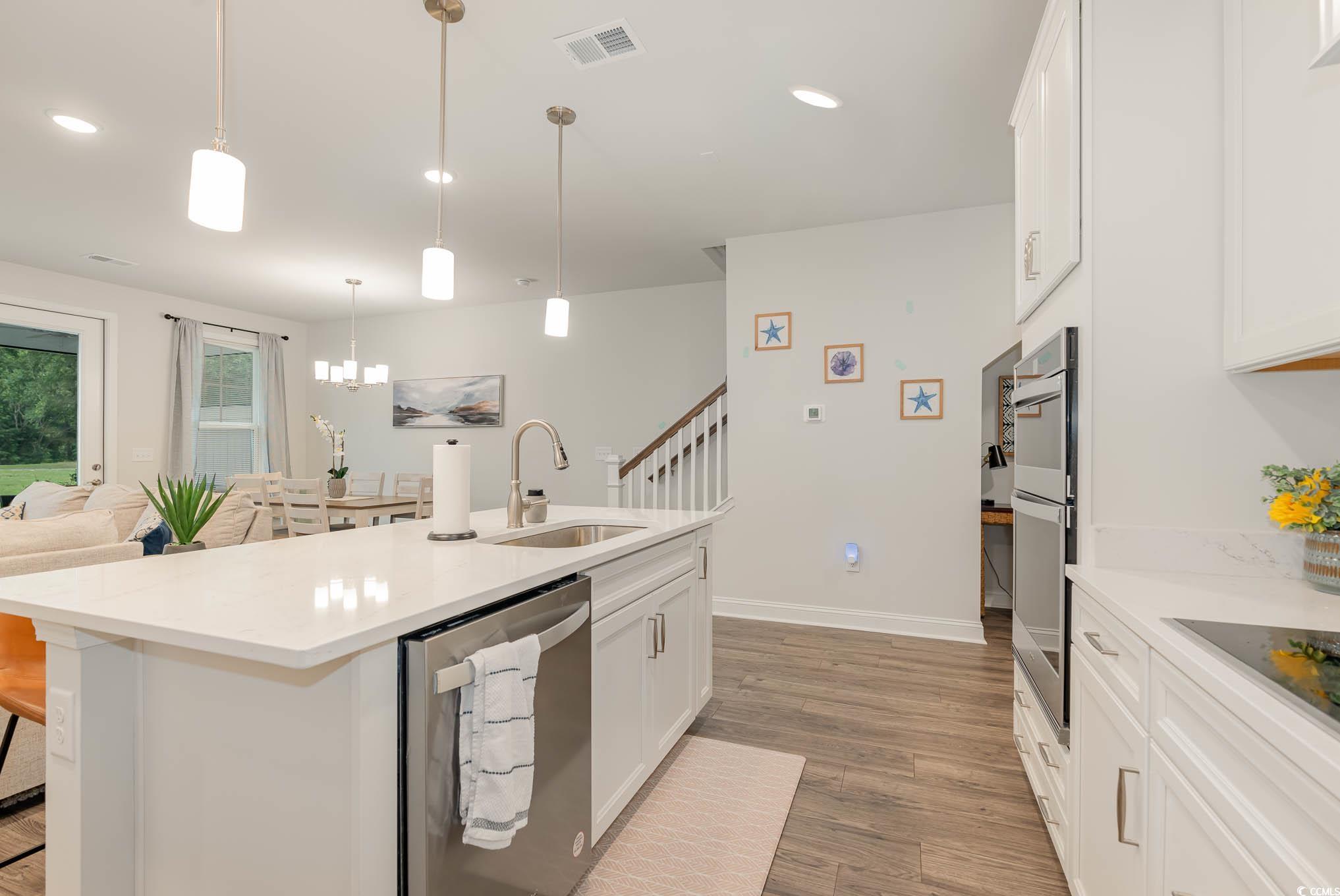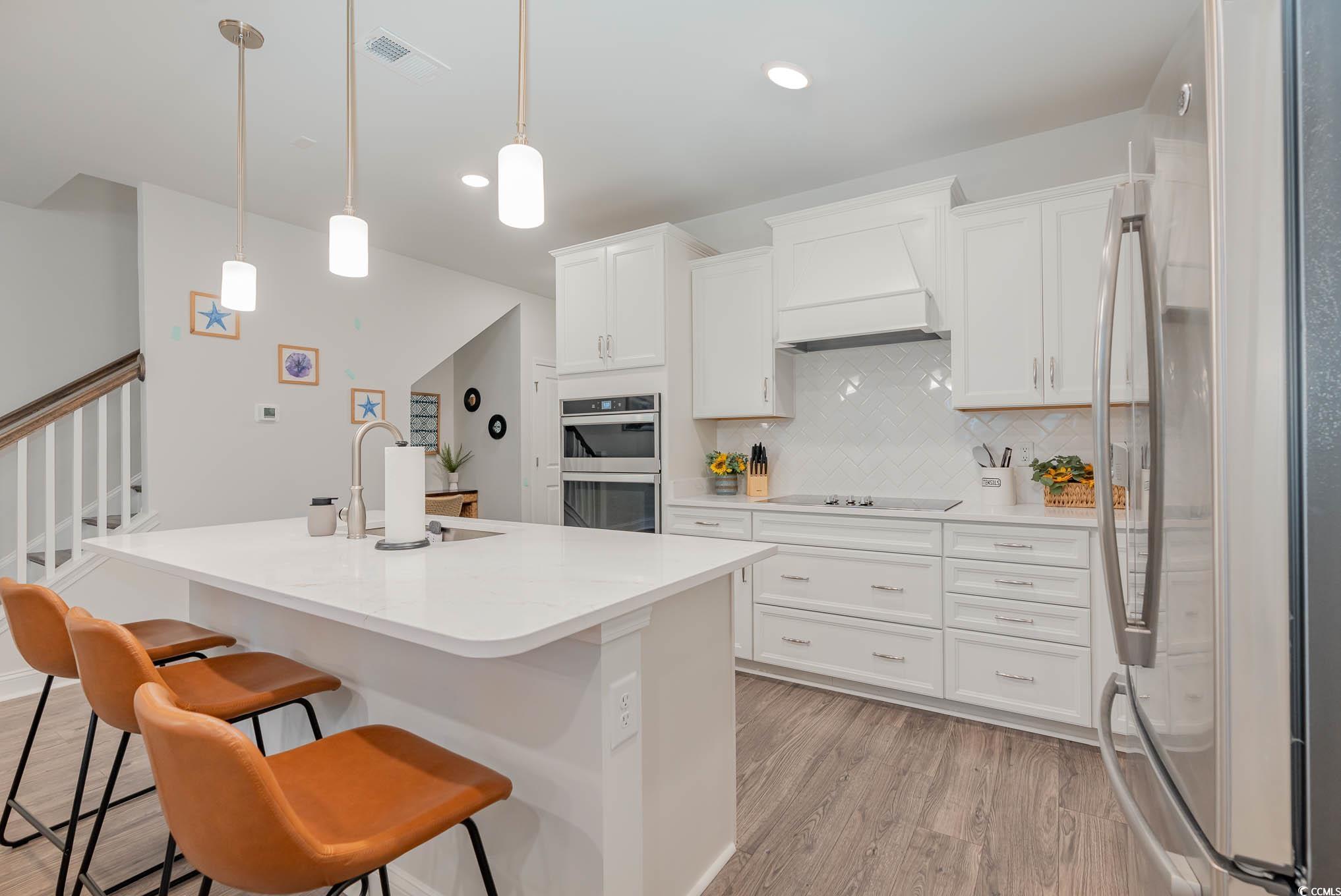Fully furnished and move-in ready 4-bedroom, 3.5-bathroom townhome in The Townes at Barefoot offers the perfect blend of luxury, convenience, and income potential. With over 2,100 heated square feet across three stories, this spacious home includes an attached 1-car garage, screened porch, and private back patio—perfect for grilling and outdoor relaxation. Ideal as a short-term rental or Airbnb investment, a second home, or a primary residence, the property is located just in front of Barefoot Resort’s Putter’s Pub and Driving Range. Inside, you'll find an open-concept main level with 9’ ceilings, upgraded KitchenAid stainless steel appliances, modern cabinetry, Shaw Restoration Laminate flooring, and a half bath. The second floor includes the owner’s suite with a walk-in closet and tiled walk-in shower, two additional bedrooms, a full bath, and laundry room. The third floor features a private fourth bedroom with its own full bath, perfect for guests or additional privacy. Ownership at Barefoot Resort includes access to world-class amenities such as four championship golf courses, a golf membership opportunity, and two clubhouses. Residents enjoy the 15,000 sq ft saltwater pool at the marina, hot tubs, walking trails, and private community pools. There is even a private beach cabana with seasonal shuttle service and secure parking, approximately 1.5 miles from the property. For boating enthusiasts, the marina offers boat slip leasing or purchase opportunities. Walkable to restaurants and shops, this location is adjacent to Barefoot Landing, one of the Grand Strand’s most popular destinations with waterfront dining, boutique shopping, the Alabama Theatre, House of Blues, and year-round events. Whether you're looking to invest, escape, or settle in, this fully furnished townhome places you right in the heart of everything—live the Barefoot lifestyle today!