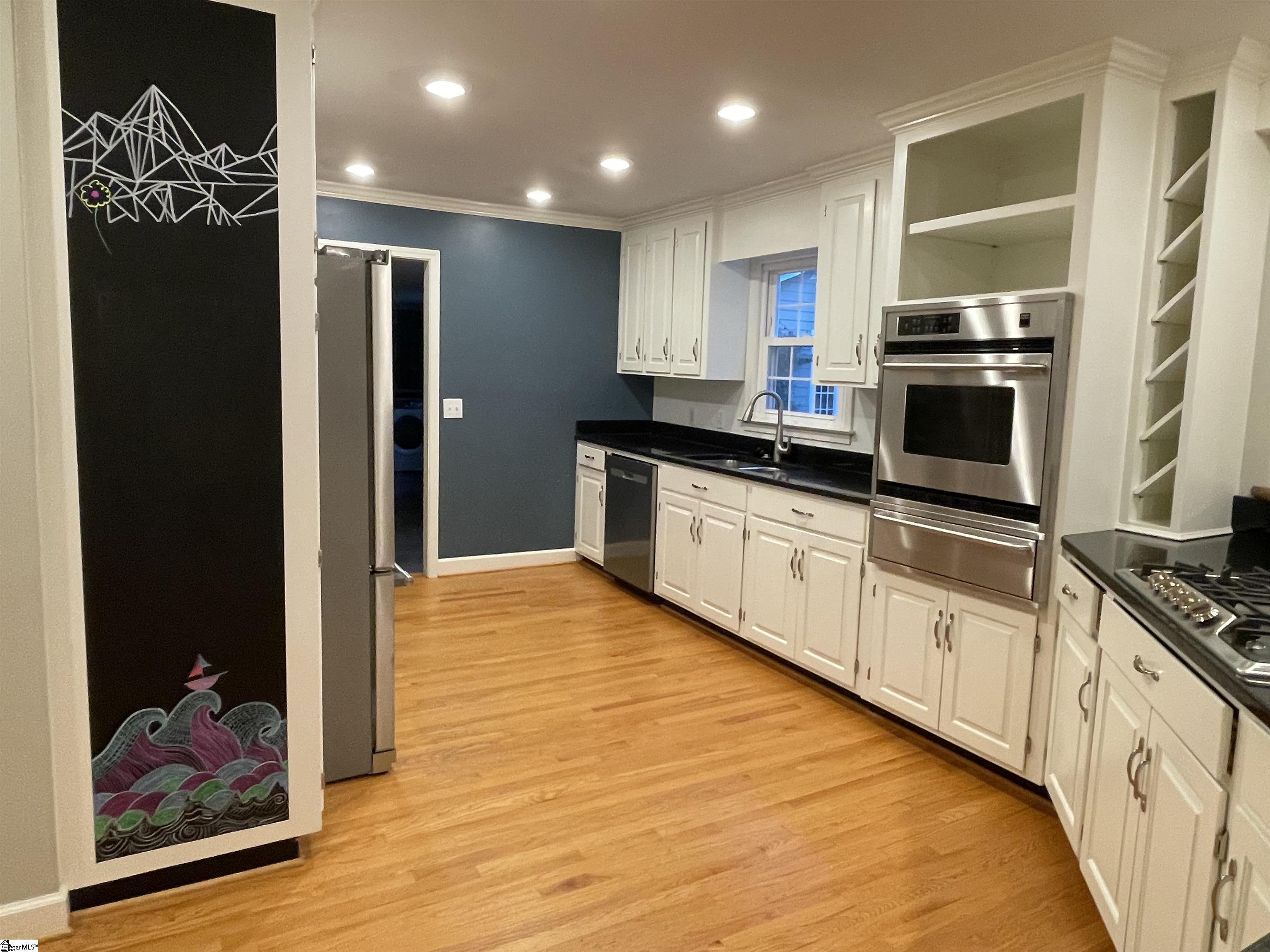 Established Poinsettia Neighborhood in Simpsonville... Day or Night, this stunning 4-bedroom, 3.5-bath Craftsman-style home perfectly captures the essence of modern luxury without the restrictions of an HOA!! From the moment you step onto the wrap-around porch with its classic stone posts and porch swing, you'll feel right at HOME. The interior boasts an open-concept 27'x14' living room with rich hardwood floors and a cozy gas fireplace that flows seamlessly into a custom kitchen. The kitchen features granite countertops, a beautiful bar, a built-in wine rack, and appliances, including a gas cooktop, wall oven, and warming drawer. A unique stained-glass pocket door leads to a spacious pantry, and there's a half bath nearby for guests. The formal dining room has French doors, a custom mirrored wall, and a unique chandelier. Perfect for entertaining, the living room and kitchen extend into a bright four-season sunroom with built-in cabinets, a window seat, a NEW bay window, and NEW sliding doors that open to a true backyard oasis. Here, you’ll find a self-cleaning Saltwater Pool (pool deck was resurfaced in 2025), an expansive 16x19 deck, and a large patio surrounded by mature landscaping, flagstone walkways, and a 6' privacy fence. Upstairs, the Primary Suite serves as a private retreat, featuring a Juliet balcony overlooking the pool, cathedral ceilings, a custom walk-in closet with a built-in window seat, and a spa-like ensuite bath with a soaking tub and oversized walk-in shower. Three additional spacious bedrooms, two additional full bathrooms, and a dedicated home office provide ample space for family and work. Beyond its beauty, the home is packed with practical upgrades and storage solutions, including a NEW roof (2025), RESURFACED concrete patio surrounding the amazing pool (2025), UPDATED electrical (2025), plantation shutters throughout, a sprinkler system, yard and pool lighting, built-in cabinets in the mud and laundry room, and OWNED solar panels that offer significant monthly savings. For those with hobbies or extra vehicles, the property includes an attached 2-car garage, a detached workshop/garage, and room for RV parking. Located just a short golf cart ride from the vibrant shops, dining, and NEW parks and amenities of downtown Simpsonville, this home offers the perfect balance of peaceful retreat and community connection. Easy access off 385, in addition to the Fairview Road shopping and restaurants!!