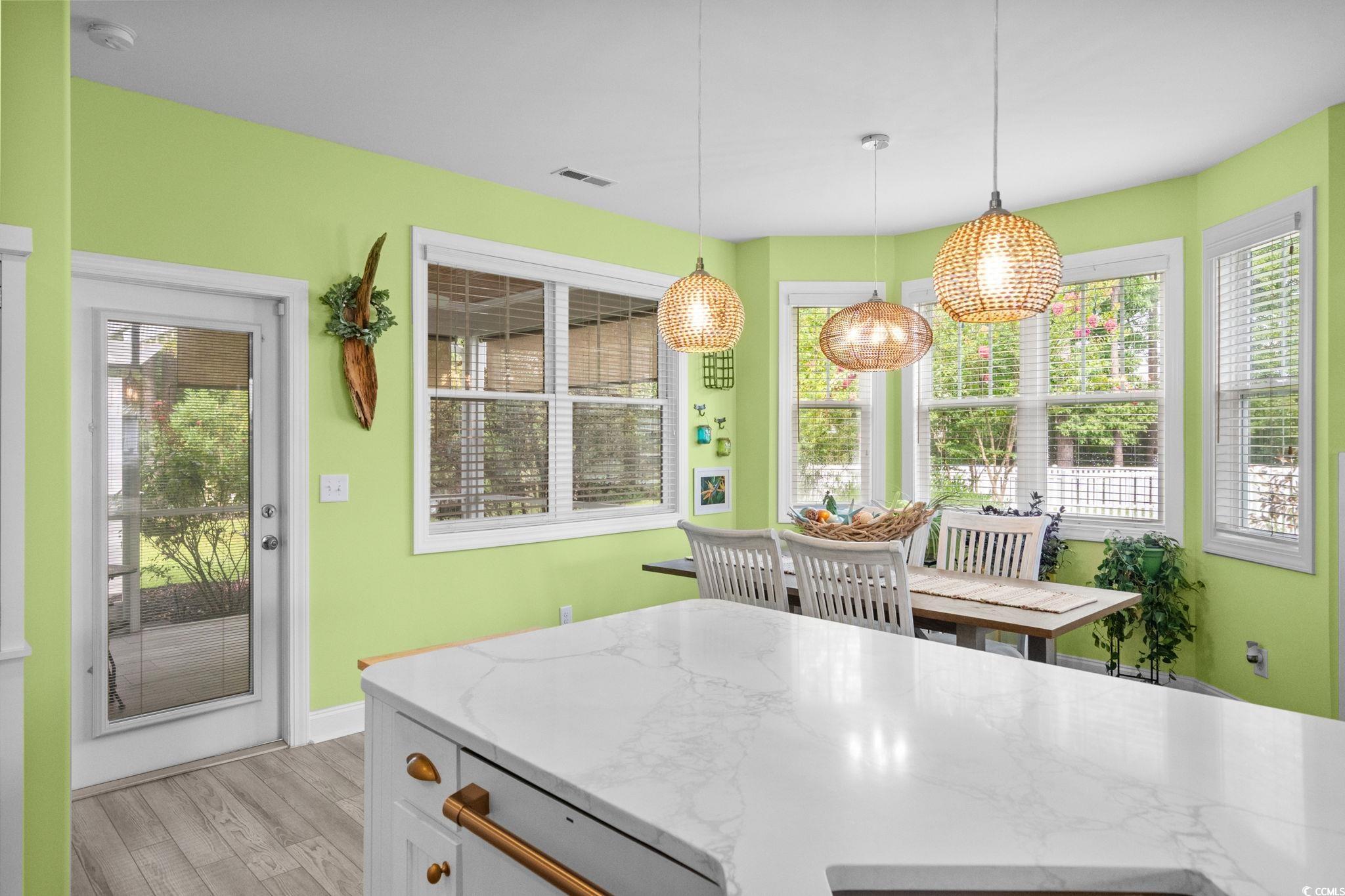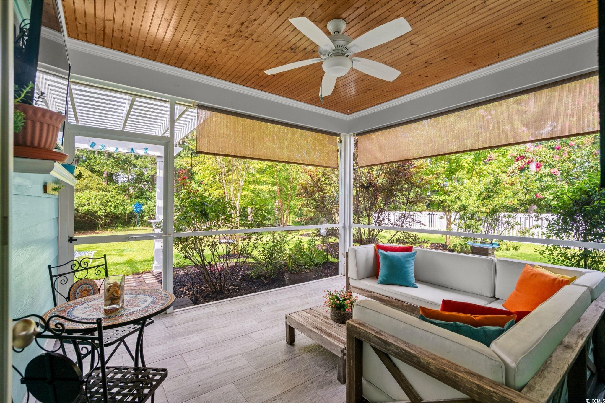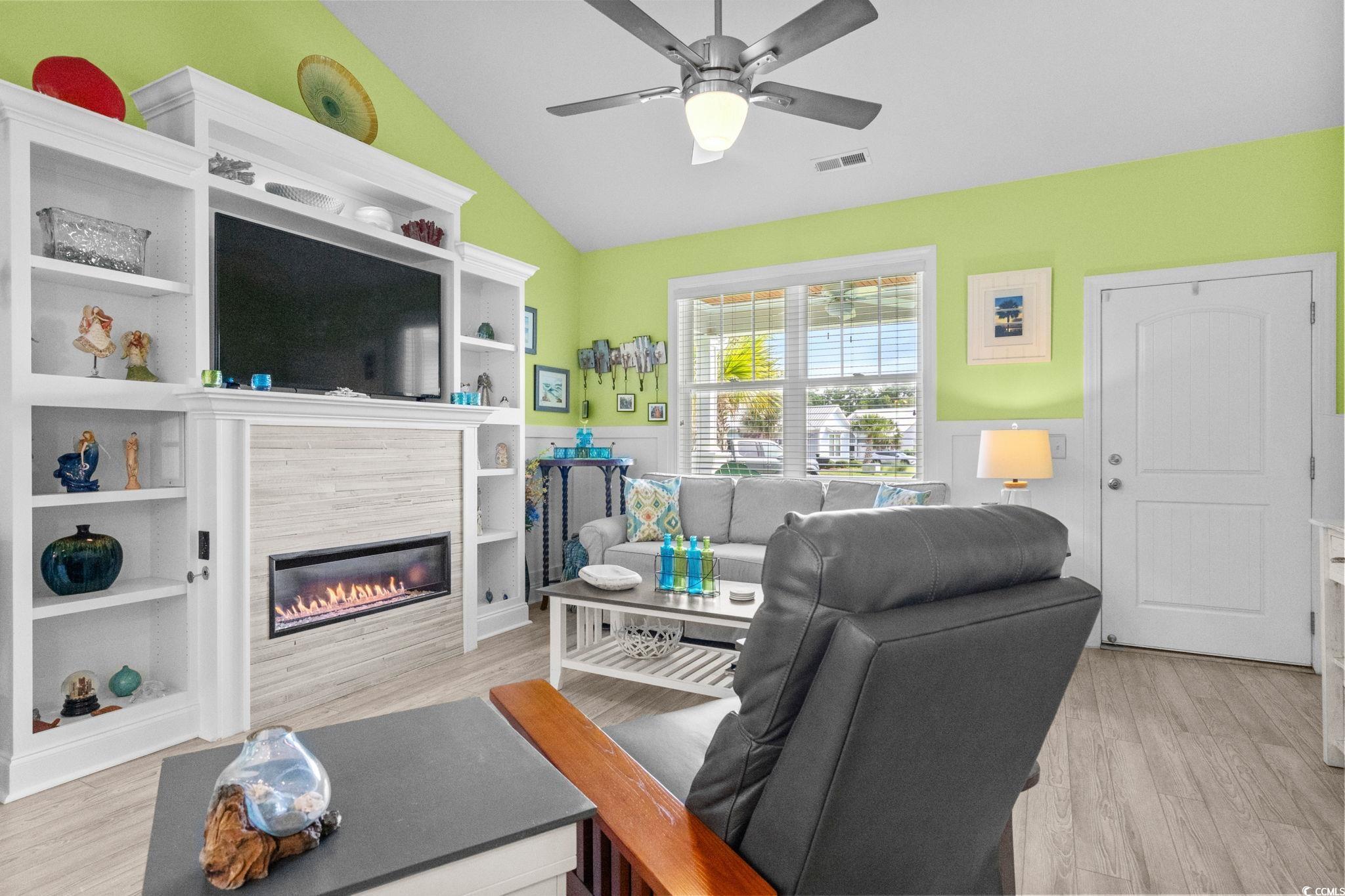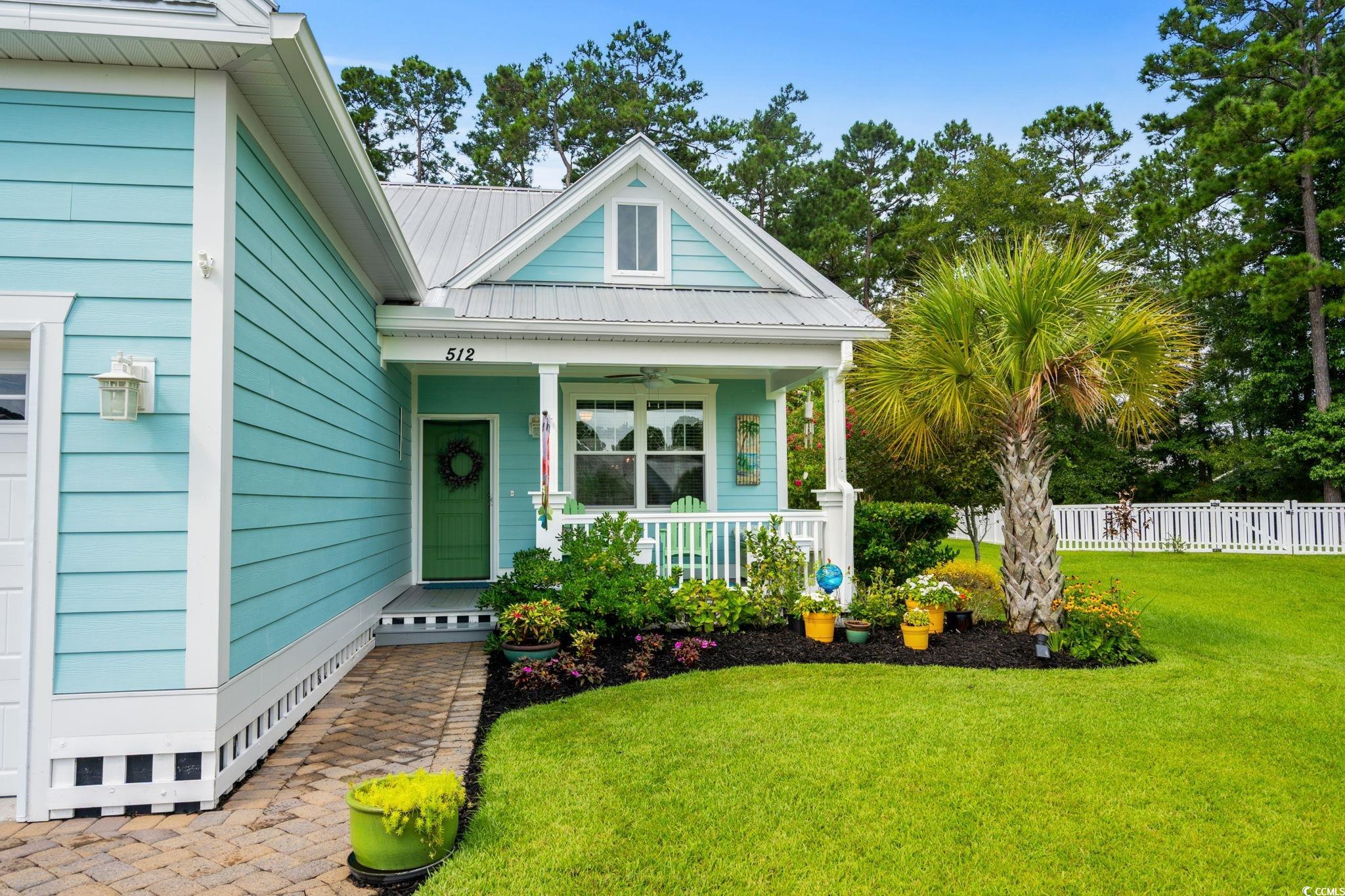 Welcome to Oak Hampton – a charming cottage community in the heart of the Prince Creek area of Murrells Inlet. This custom-built 3BR/2BA home with a large bonus room (optional 4th bedroom) is tucked away on a quiet cul-de-sac with an oversized private lot. Built by a popular local builder, it features Hardi Plank siding, a metal roof, and a paver driveway for timeless curb appeal. Inside, enjoy an open floor plan with vaulted ceilings, rounded corners, LVP flooring, and a cozy gas fireplace. The kitchen includes quartz countertops, tile backsplash, under-cabinet lighting, and upgraded appliances. The primary suite offers a tiled shower with frameless glass door, framed mirrors, and thoughtful finishes. Outdoor living spaces include a welcoming front porch, screened-in back porch with pull-down shades, multiple patios, and a covered pergola overlooking the spacious backyard. Additional features: whole-house generator, painted garage, walk-in attic storage, tankless water heater, irrigation system, and a gas stub-out on the patio for grilling. Golf cart accessible to nearby restaurants, golf, grocery, and more—only 4.5 miles to the beach. A perfect blend of quality, charm, and location!