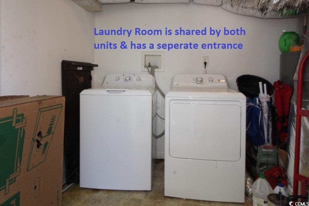This two-story duplex has 2BRs in the upstairs unit and 1BR in the downstairs unit. The upstairs unit has vaulted ceilings and a spacious living room. Kitchen amenities include stove, refrigerator, built-in microwave, dishwasher and solid surface countertops. The bedrooms share a jack & jill style bathroom. There is a large, deck style porch for the upstairs unit. Each unit has a separate HVAC system. There is a shared laundry room with a full-size washer/dryer which will convey. The property is part of a HPR which provides lawncare, trash pick up & common area maintenance. The building exteriors are the owner’s responsibility to maintain. The downstairs unit is generating rental income with a tenant on lease through October 2026. The buyer is required to honor the lease terms after closing. The downstairs unit has a kitchen with all appliances to convey. The downstairs bathroom is extremely spacious. Island Green is conveniently close to all the Myrtle Beach area has to offer, without being in the middle of all the traffic and crowds.