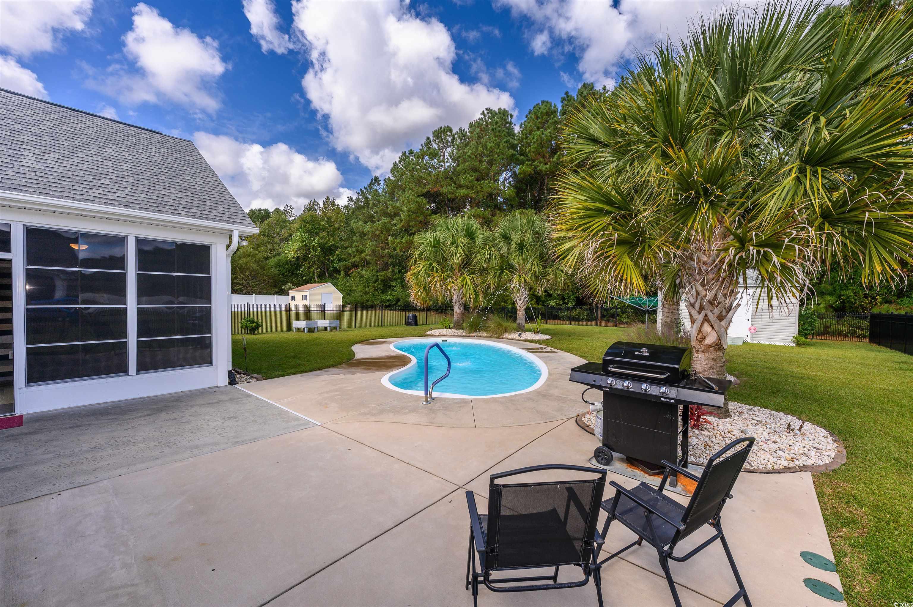 Home is where the heart is - and this home will have your heart. This property sits on just over a quarter of an acre lot and is in the lovely Huston Place community and NO HOA fees! There is so much space in this freshly painted home - including a huge primary bedroom / owners suite located on the first floor with double tray ceiling, a walk-in closet, its own bay window and sitting area. The ensuite bathroom includes double sinks and walk-in shower. The split bedroom floorplan includes 2 additional bedrooms and shared bathroom also located on the first level with an extra bonus room on the 2nd level over the 2-car garage. This bonus area can be used for an at home gym, crafting room, media room, home office or a game room - it will fit your needs. The open concept floor plan and upgrades throughout the home will make this your dream home. The formal dining room includes a tray ceiling and is the perfect space to gather your friends and family for sit down dinners. The vaulted ceiling and gas fireplace in the living room are just the tip of the iceberg of the "extras" this home offers. The kitchen will become one of your favorite spots in the home with the custom-built cabinets, granite countertops, crown molding, breakfast nook, work island, pantry and stainless-steel appliances. You will definitely be ready to sharpen your culinary skills and want to host all of the holiday parties, family gatherings and game nights. Just off of the kitchen, is the all-weather Sunroom so you can enjoy all 4 seasons with a view of your fenced in backyard bordered by woods and not to mention a saltwater pool. After a day at the beach, shopping or golfing, take a dip in your own private pool and let the day just melt away. Imagine sipping your morning coffee taking in the serenity of your surroundings from this very spot. The backyard also has an extended open-air patio space which is great for grilling and catching rays by the pool. Store all of your yard tools in the 12'x16' shed. This upgraded home includes a tankless hot water heater (natural gas), an irrigation system with two water meters one for irrigation and pool, gutters, gas heat along with energy efficient "Low E" glass windows throughout. There is also a laundry room and a whole house generator. The location of this property is outside of city limits and hustle and bustle but just a quick drive takes you to the quaint town of Conway or to the sandy beaches of the Grand Strand. Enjoy all of the charm and small-town feel of Conway for Halloween, Christmas and even Valentines - you will not be disappointed. Or head North to Little River for the Shrimp Festival in the Fall and the Blue Crab festival in the Spring. You are surrounded by golf courses along with unparalleled shopping opportunities at the Outlet Malls. You can spend your days floating in the ocean, building sandcastles, hunting for shells and treasures or hit the ICW for jet skiing, fishing or enjoying a boat ride.