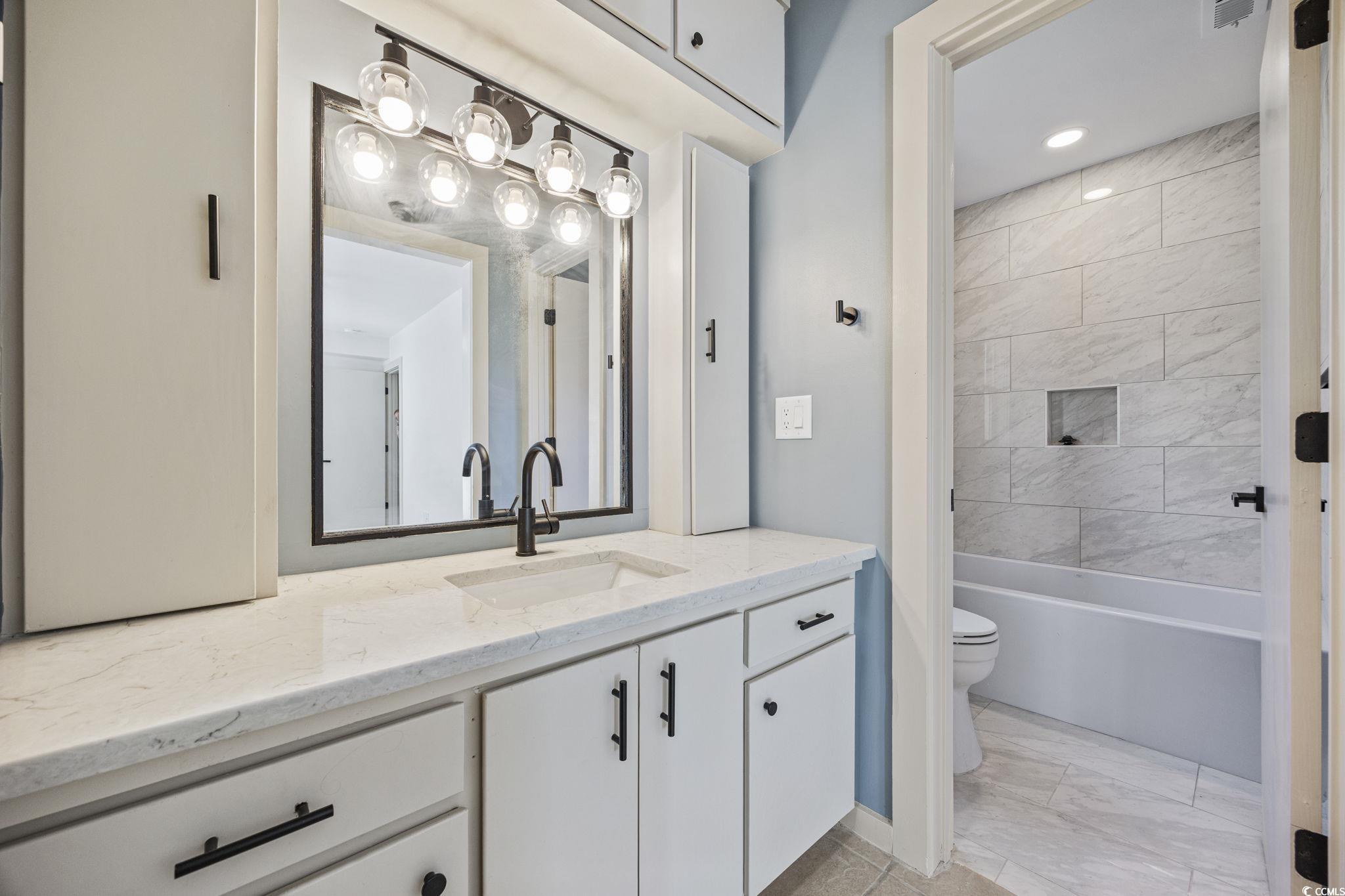 Welcome to this beautifully remodeled coastal retreat that perfectly blends comfort, flexibility, and opportunity. Whether you’re looking for a full-time residence, a second home, or an investment property with multiple income streams, this home offers endless potential just minutes from the beach. As a primary residence, this home functions as a spacious 4-bedroom, 4-bath property featuring a bright, open layout and modern finishes throughout. The kitchen shines with cream cabinetry, quartz countertops, stainless-steel appliances, and polished brass fixtures. The living area offers wood-finished flooring, vaulted ceilings, a glass-covered gas fireplace, and views of the pool deck—perfect for cozy beach nights or gatherings with friends and family. The primary suite provides a serene retreat with new light wood LVP floors, a walk-in closet, and a remodeled ensuite bath with custom tile work and elegant matte black hardware. A spiral staircase leads to a versatile upstairs suite complete with its own bedroom, full bath, and additional room ideal for a home office, studio, or walk-in closet. This area can easily be converted into a private guest suite or rental by enclosing the staircase and adding an exterior entrance. The garage is already partially converted and includes a kitchenette for conversion into a 1-bedroom, 1-bath apartment, space for a living area, and the potential for a private entrance. Whether used as a guest house, in-law suite, or rental unit, it’s ready for the next owner’s vision. Outside, enjoy your private fenced backyard oasis with a large swimming pool, patio area, and gated access. The pool area includes a pad and stub-out for an ADU or guest house, allowing for the addition of another income-producing space or a personal retreat. With the current layout, this property can support up to three separate rental opportunities—the upstairs suite, garage apartment, and future ADU—while still leaving the main home with 2 bedrooms and 2 baths. Recent upgrades include a brand-new roof, new HVAC system, new gas tankless water heater, new pool pump, and new appliances—making this home as efficient and worry-free as it is beautiful. Located in a highly desirable coastal neighborhood, you can walk to nearby restaurants or hop on a golf cart to Surfside Beach in minutes. Short-term rentals are permitted, providing the flexibility to live, invest, or do both. The choice is yours—create your own paradise, enjoy house-hacking benefits to offset your mortgage, or transform this residence into a smart, income-producing investment. Some photos in this listing have been digitally enhanced or virtually staged.