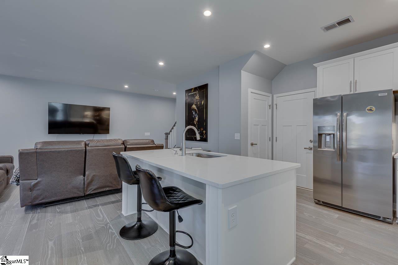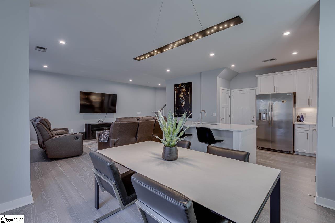 Welcome to 514 Martin Creek Dr., Simpsonville SC 29680. This is a stunning townhome in the highly sought-after Merrydale Village community! This beautifully upgraded 3-bedroom, 2.5-bath home showcases luxury, comfort, and style throughout. The open-concept great room flows seamlessly into the kitchen and dining area—perfect for entertaining. The kitchen features quartz countertops, upgraded stainless steel appliances, a gas oven, and elegant custom finishes. Designer details include custom high-end paint, upgraded faucets, fixtures, and bathroom mirrors, along with luxury carpeting with added padding and premium manufactured hardwood flooring. The finished garage offers professional epoxy flooring and fresh paint. Step outside to a private patio with a dedicated gas line and new grill—ideal for relaxing or hosting gatherings. Upstairs, you’ll find a spacious loft perfect for a small office, plus three generous bedrooms. The primary en suite offers a spa-like retreat with a large luxury shower featuring dual shower heads and a built-in bench. Residents of Merrydale Village enjoy exceptional community amenities including a large fenced-in dog park, a covered gazebo with a brick fireplace, lounge chairs, picnic tables, and beautifully maintained green space. Sidewalks are paved throughout the neighborhood, perfect for evening walks or morning jogs. This home stands out from others in the neighborhood with its thoughtful upgrades and unique design—move-in ready and designed for modern living!