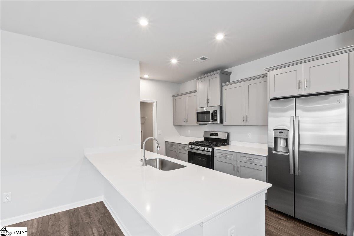 Parkland Villas offers duplex-style townhomes which provide a unique blend of low-maintenance living and single-family community feel in a prime Mauldin location. The Burke plan is a thoughtfully designed two-story townhome featuring the primary bedroom and ensuite on the main level, providing convenience and privacy. Upstairs, three generously sized bedrooms each include walk-in closets, and a spacious loft adds flexibility for work, play, or relaxation. Inside, the great room showcases stylish laminate plank flooring, while high-moisture areas are finished with durable 12x12 tile. The kitchen and baths feature quartz countertops and soft-close cabinetry with brushed nickel hardware, complemented by a full suite of GE appliances, including a five-burner gas range. A dedicated laundry room connects the home to a two-car garage, and a covered back patio offers a comfortable outdoor retreat. Located near I-85, Parkland Villas provides easy access to downtown Greenville, Simpsonville, and local shopping and dining. Community amenities include a pool, playground, dog park, and HOA-maintained landscaping. Future access to the Swamp Rabbit Trail adds even more appeal for outdoor enthusiasts. Come visit to find out about additional perks that go along with this move-in ready home. We look forward to welcoming you!
