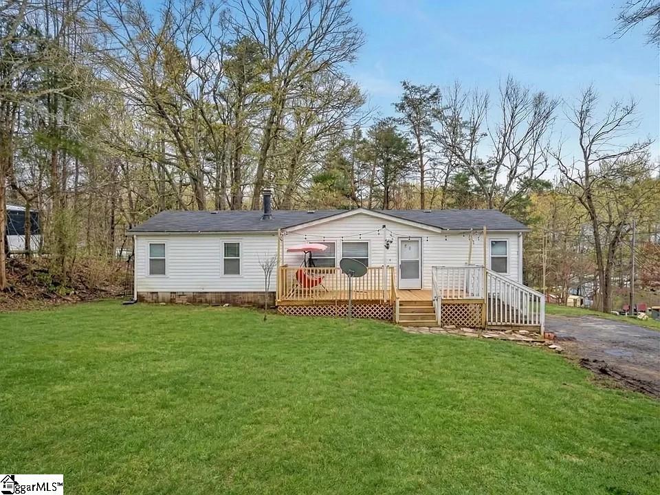 This home combines spacious living and acreage with affordability. Step inside to find an open floor plan that easily connects the large living room, eat-in kitchen, and formal dining room, making it practical for daily use and casual entertaining. The living room features built-in bookshelves and a wood-burning fireplace. BUT, with the brand-new 2.5-ton HVAC unit recently installed, you will be plenty warm! The primary bedroom includes its own private bathroom, while the two additional bedrooms are well-sized and share a second full bath. The layout keeps bedrooms separated from the main living areas for added privacy. Outside, the property sits on a level lot with a paved driveway, a new oversized deck, fenced in back yard, and a full acre of land to enjoy. Located in Inman, South Carolina, the home provides convenient access to local shopping, schools, and major roadways while maintaining a residential setting. This home is permanently attached to a foundation, meets HUD requirements, and is de-titled with the DMV